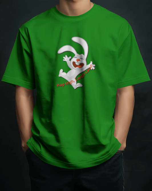 Earth & Thread | Hop High! 100% Cotton Regular Fit T-Shirt - Premium 180 GSM Energetic Rabbit Graphic Tee