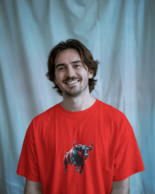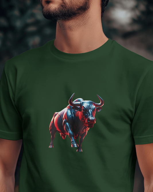Earth & Thread | Dynamic Bull 100% Cotton Regular Fit T-Shirt - Premium 180 GSM Abstract Animal Graphic