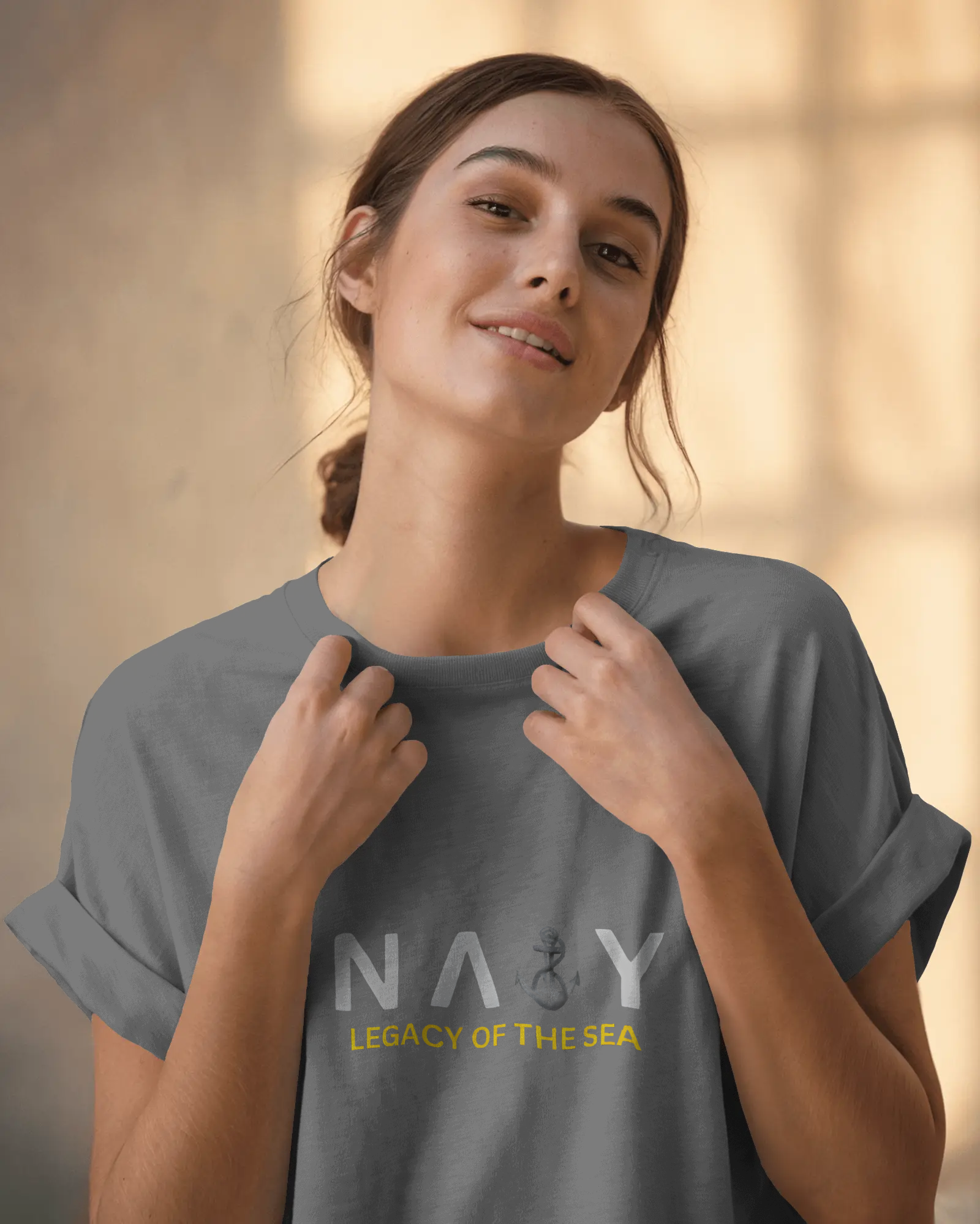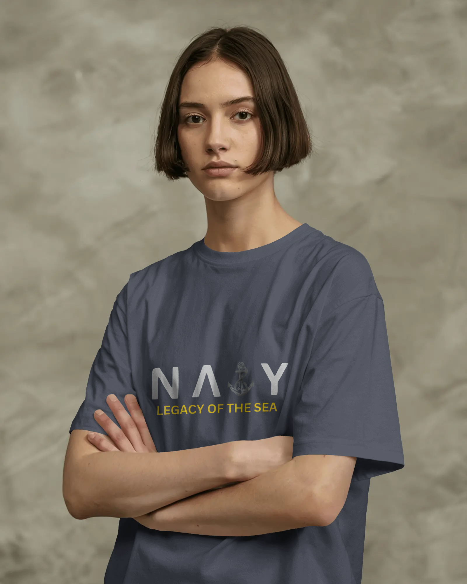 - Iconic 'Navy: Legacy of the Sea' Graphic: A unique and expressive design that embodies maritime pride and your distinct style.