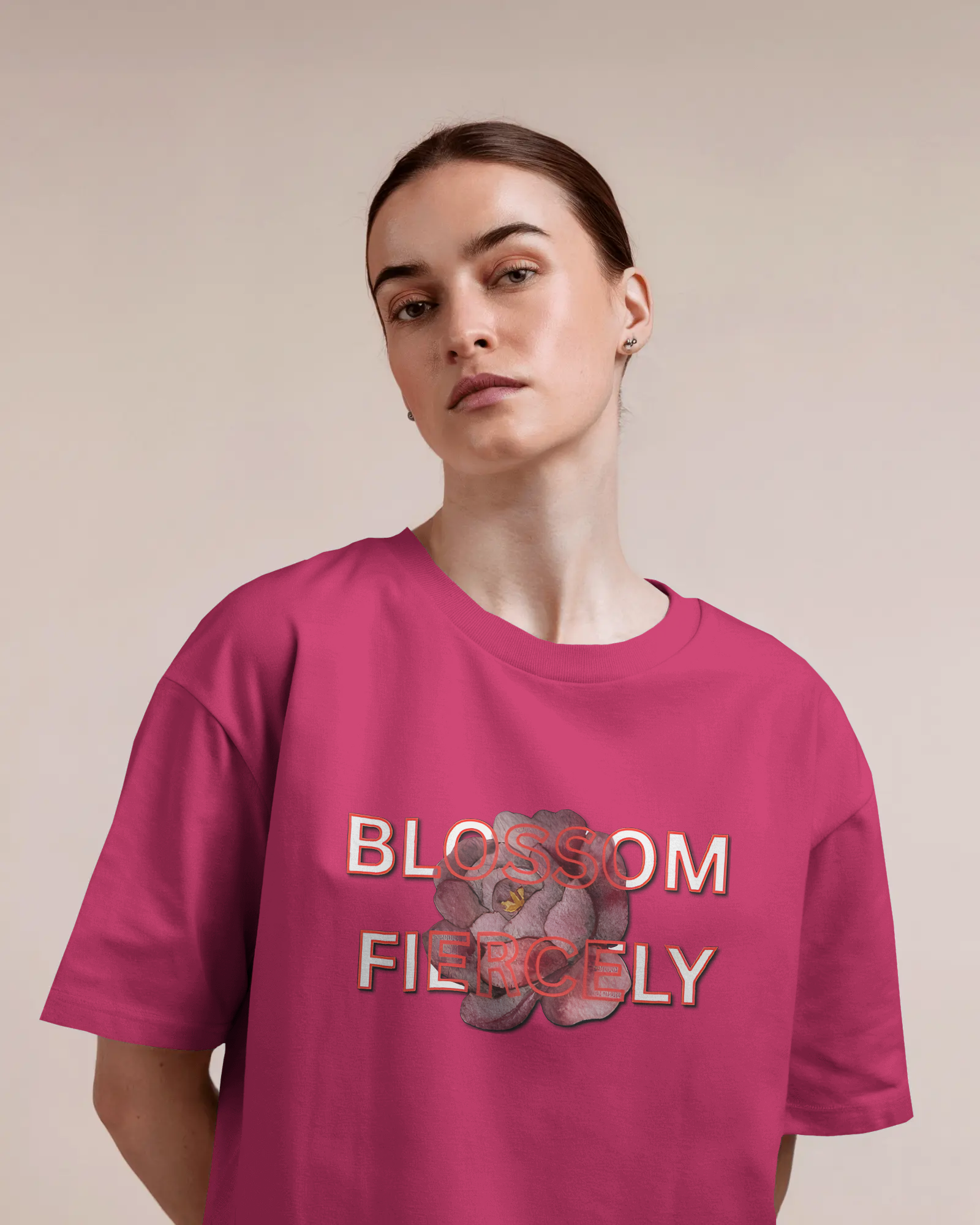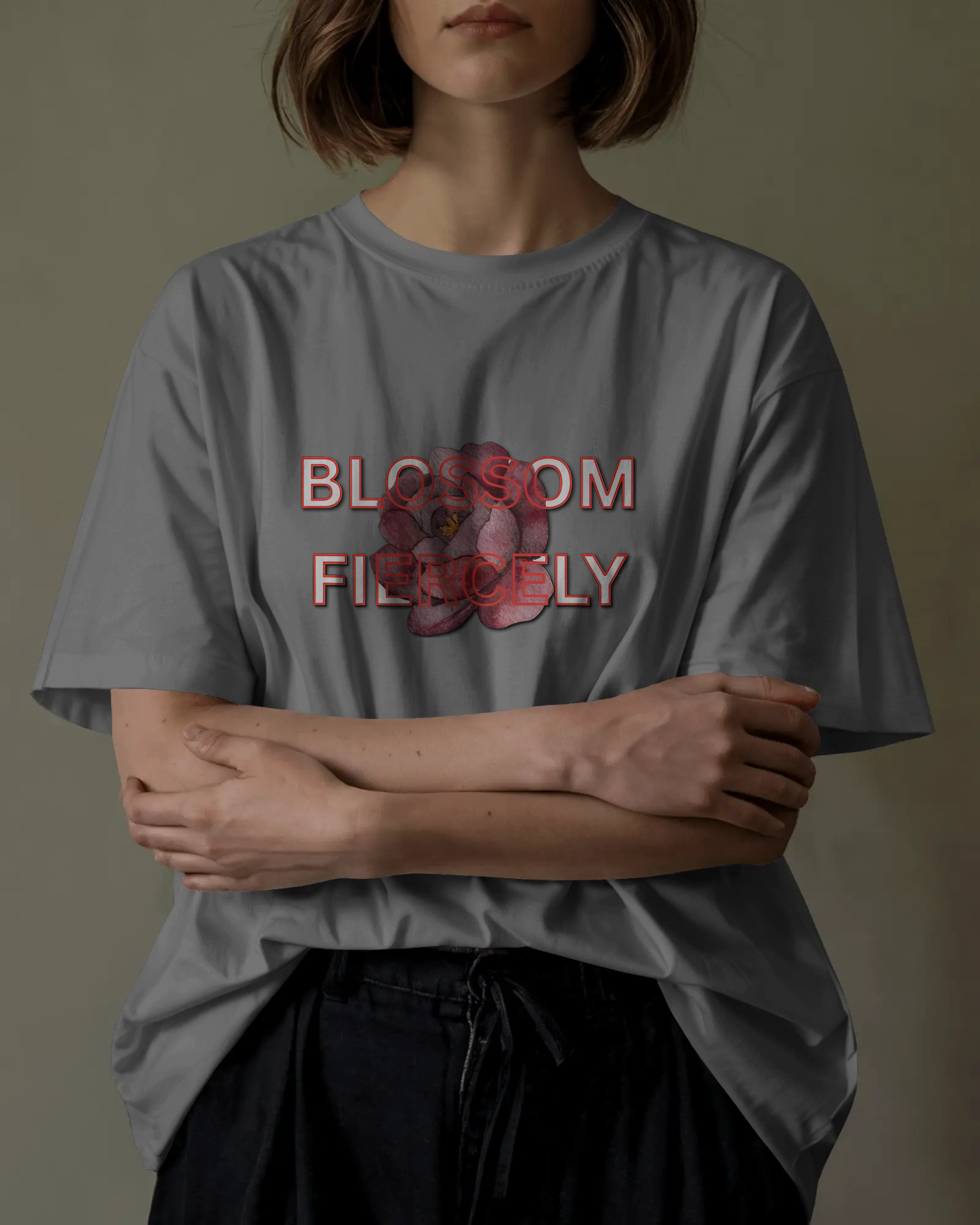 - Empowering 'Blossom Fiercely' Graphic: A unique and expressive design that embodies strength, growth, and your distinct style.
