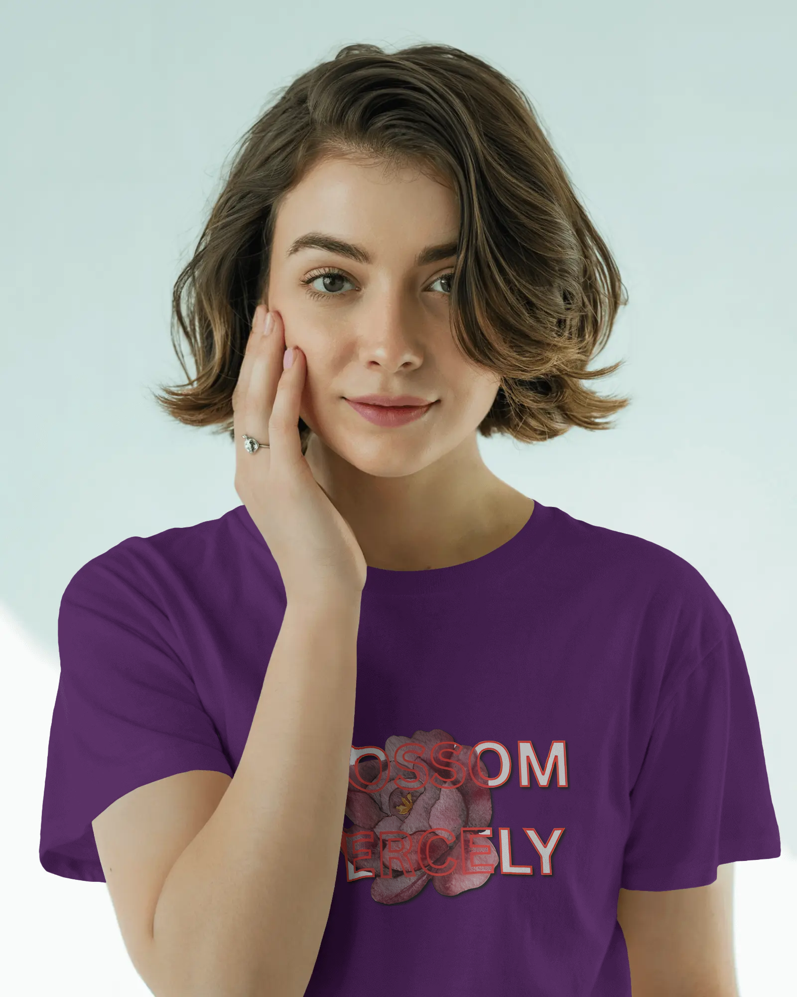 Earth & Thread | Blossom Fiercely 100% Cotton Regular Fit T-Shirt - Premium 180 GSM Empowering Floral Graphic Tee