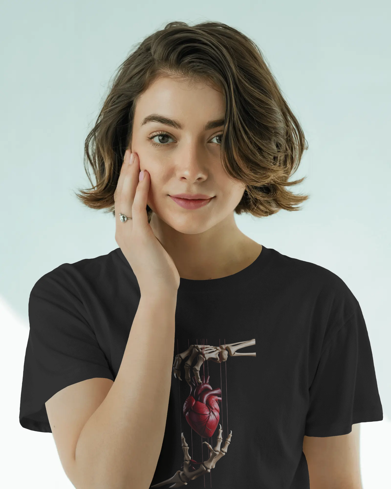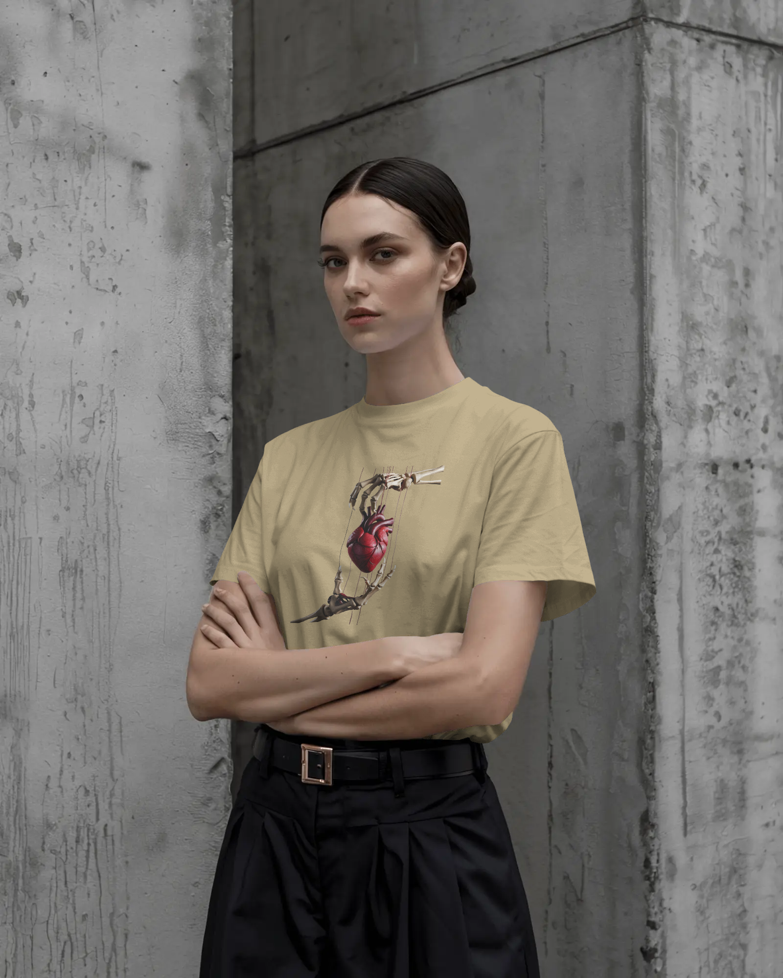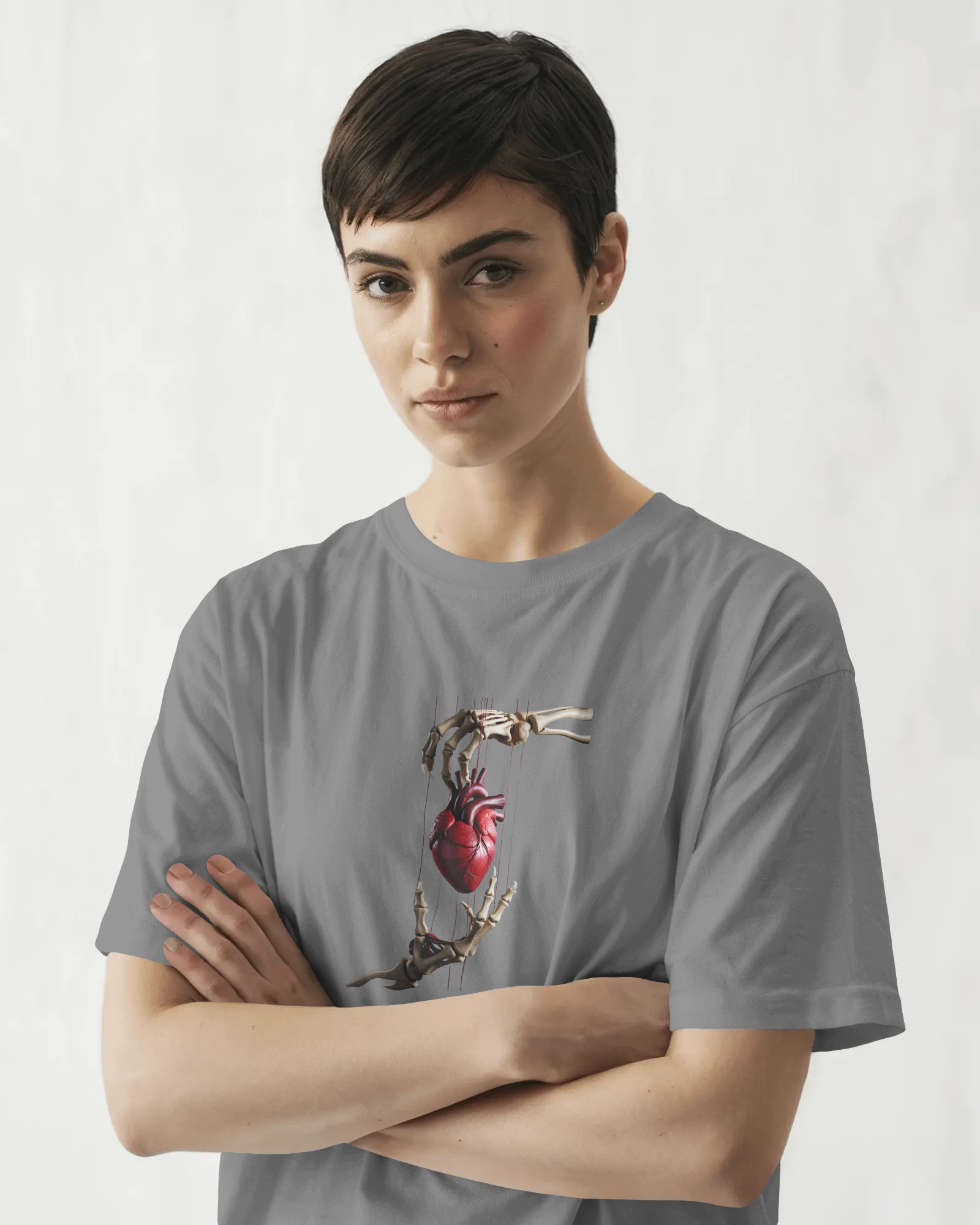 Earth & Thread | Skeleton Hands Holding Heart 100% Cotton Regular Fit T-Shirt - Premium 180 GSM Gothic Romance Graphic