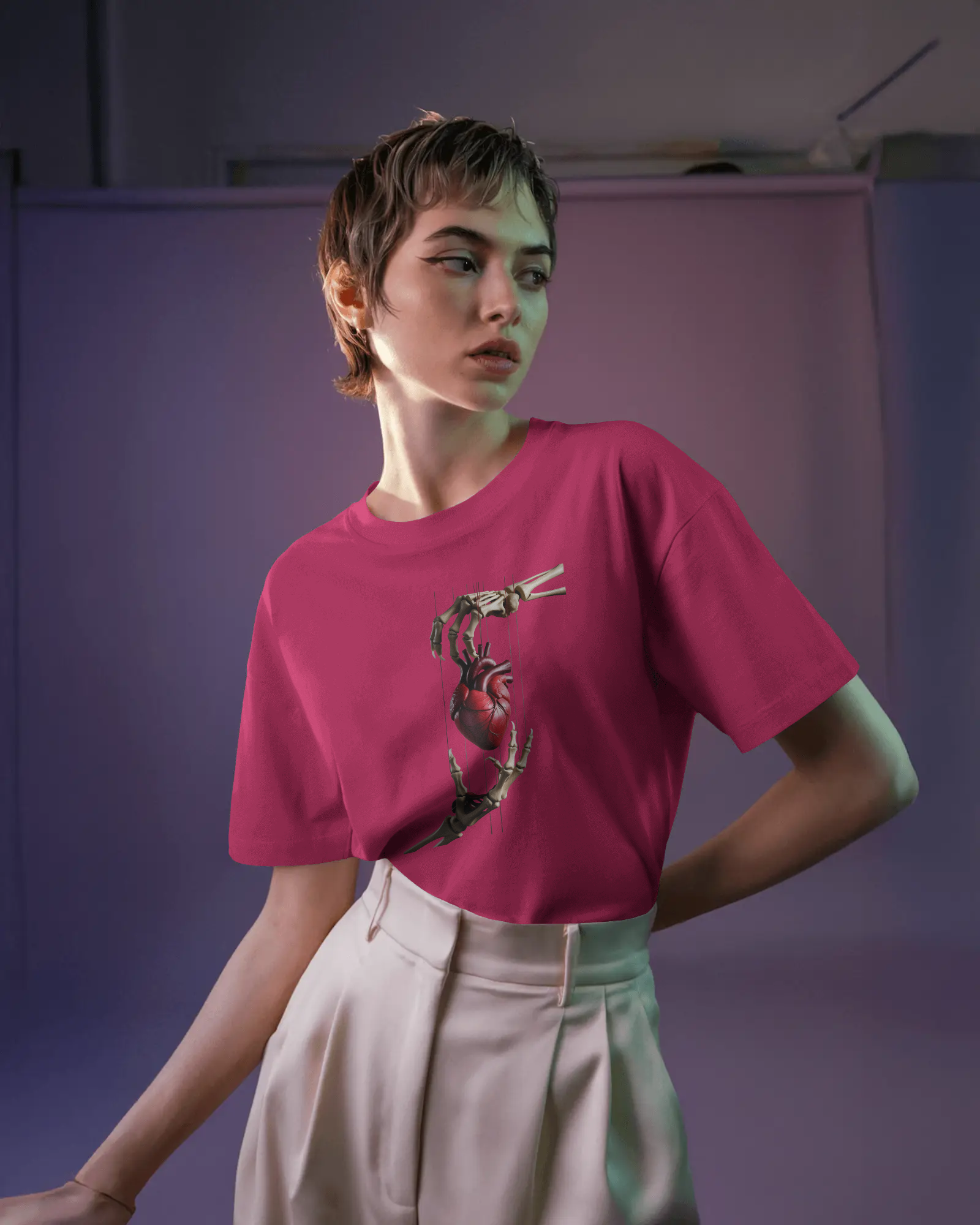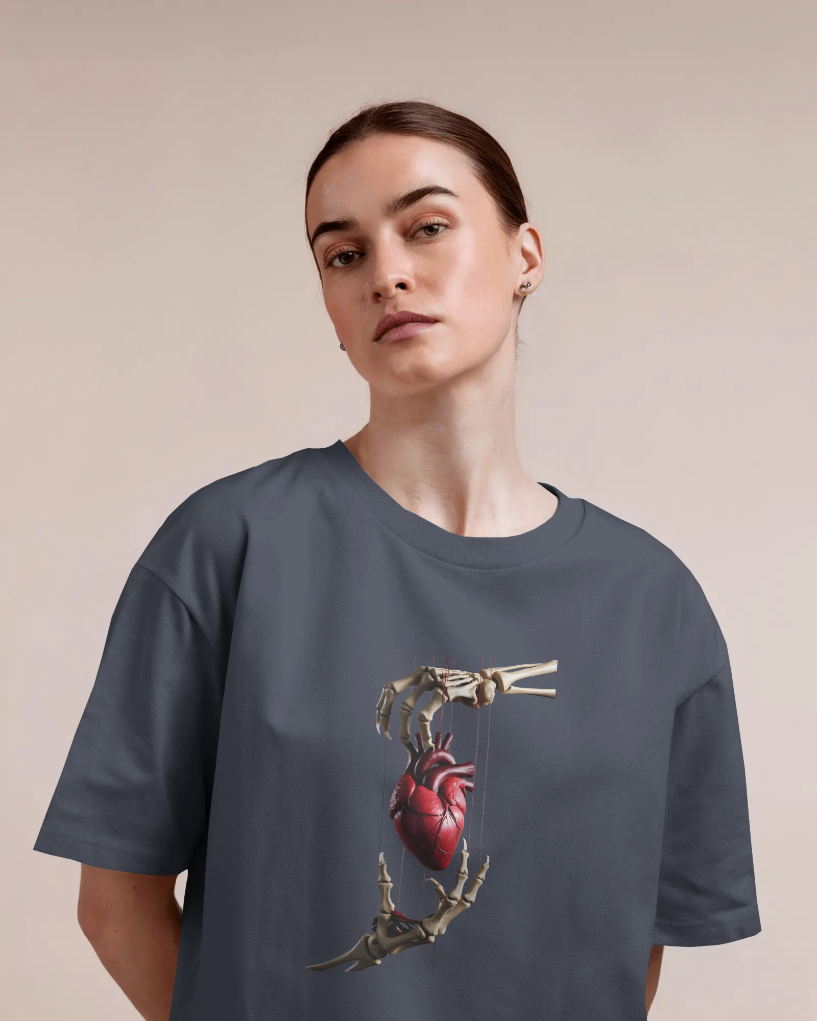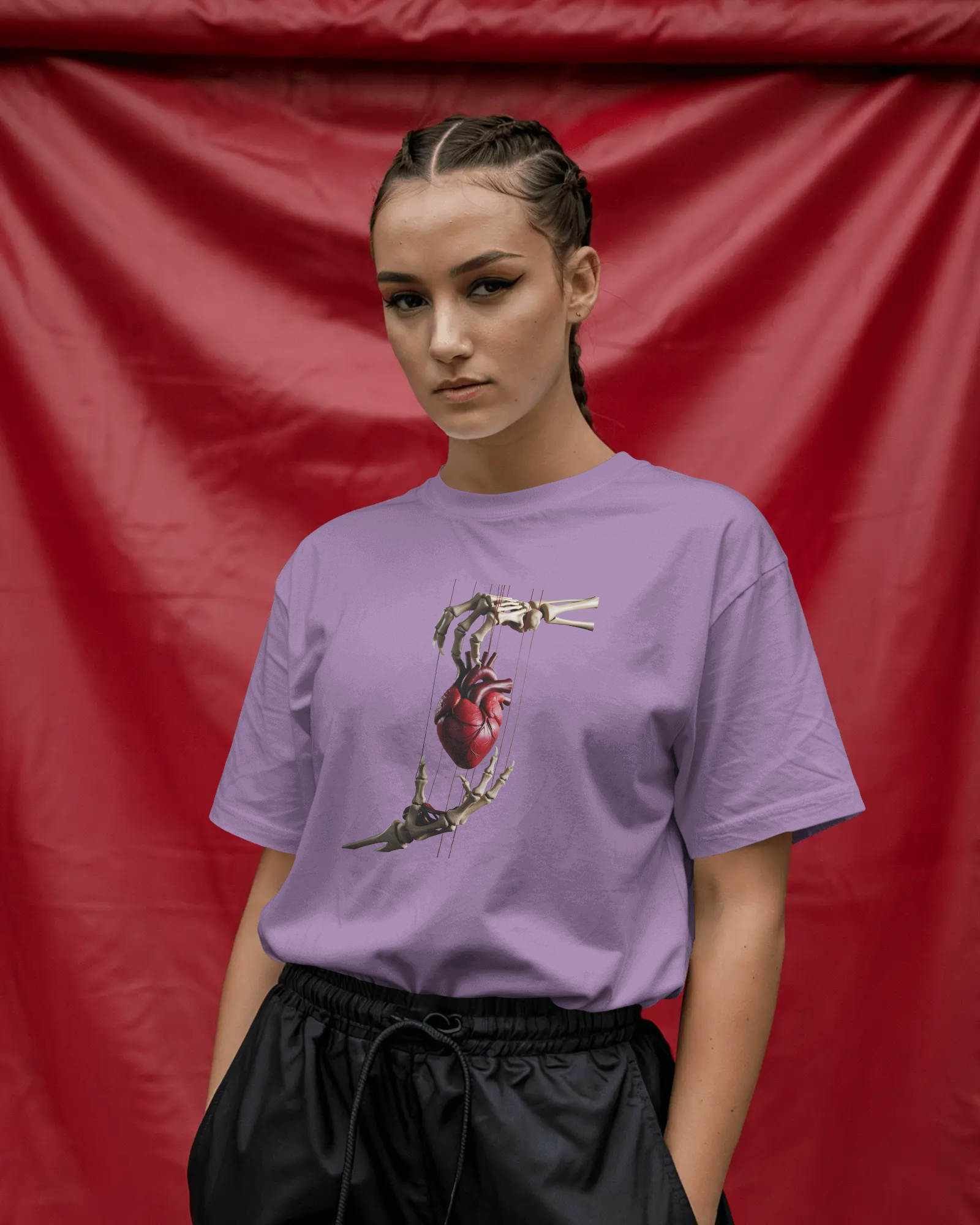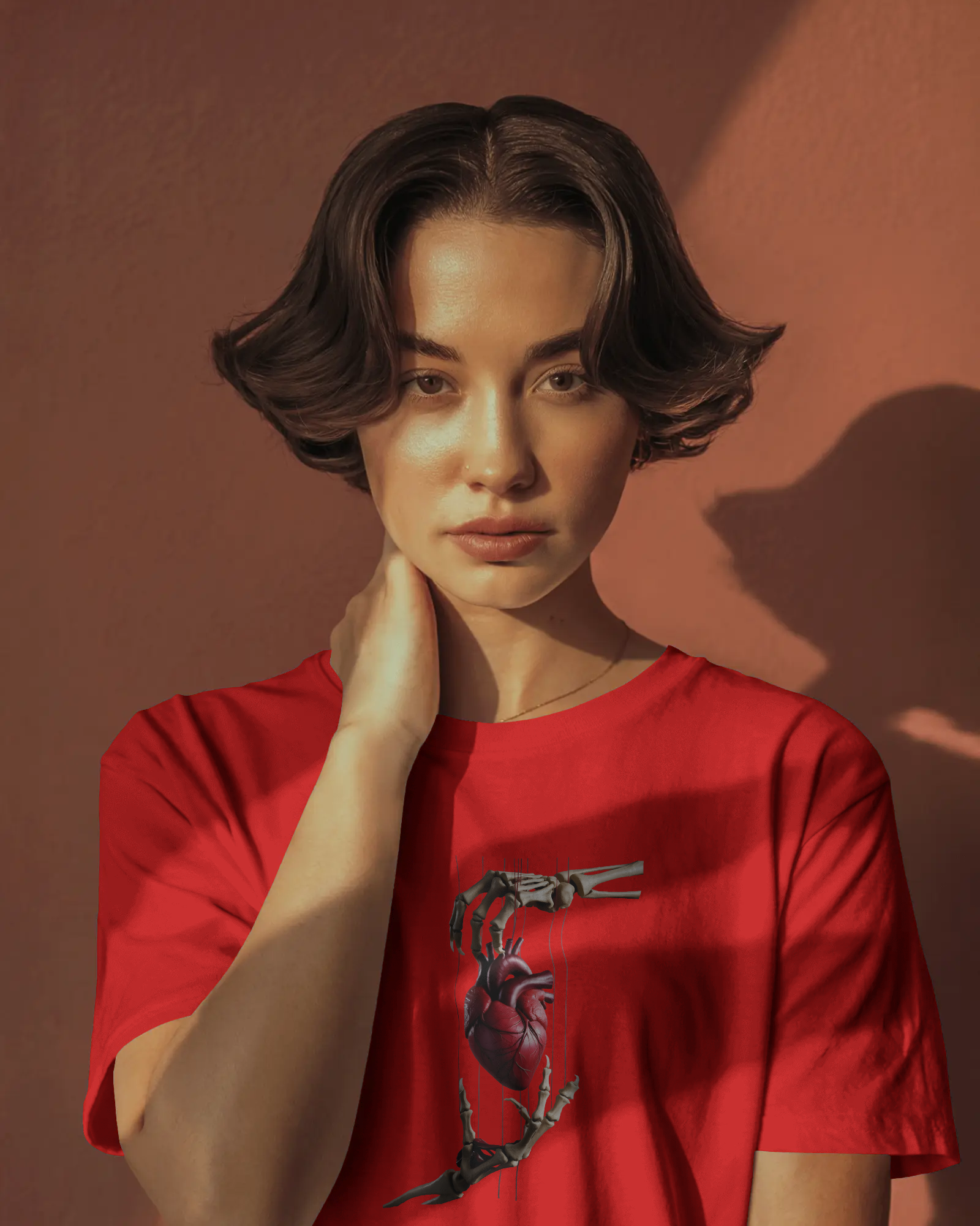 Earth & Thread | Skeleton Hands Holding Heart 100% Cotton Regular Fit T-Shirt - Premium 180 GSM Gothic Romance Graphic