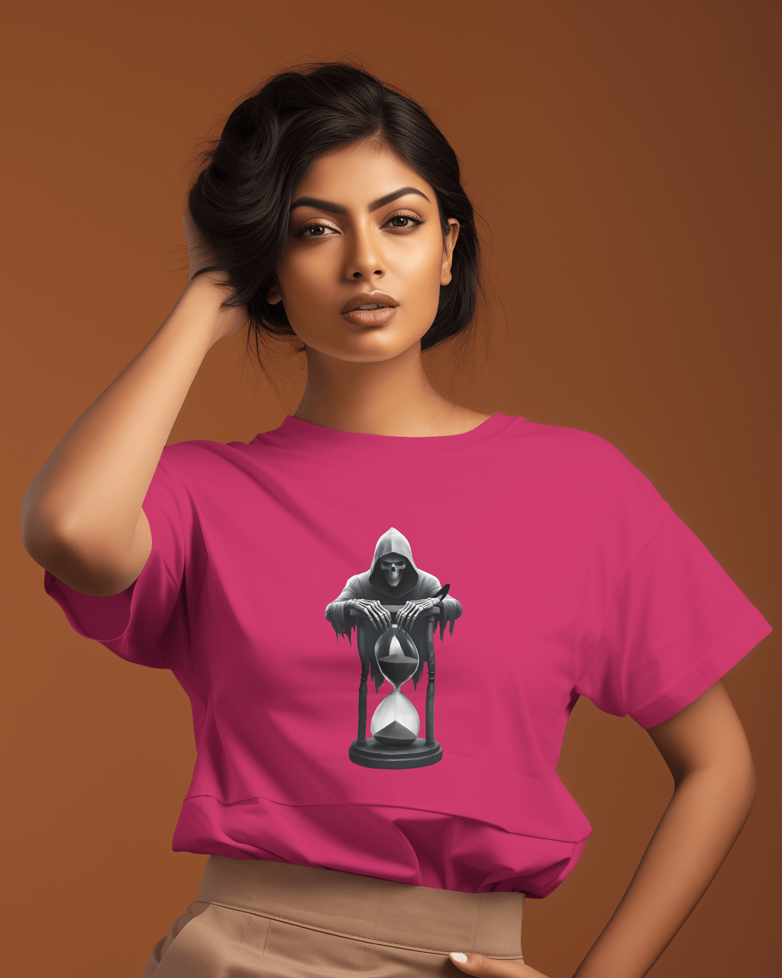 Don't just wear a t-shirt, wear a moment in time. The Earth & Thread 'Reaper Hourglass' Tee is your emblem of enigmatic style and premium comfort. Add this exclusive 100% cotton masterpiece to your collection now and let your wardrobe tick with personality. Limited production – secure yours today!