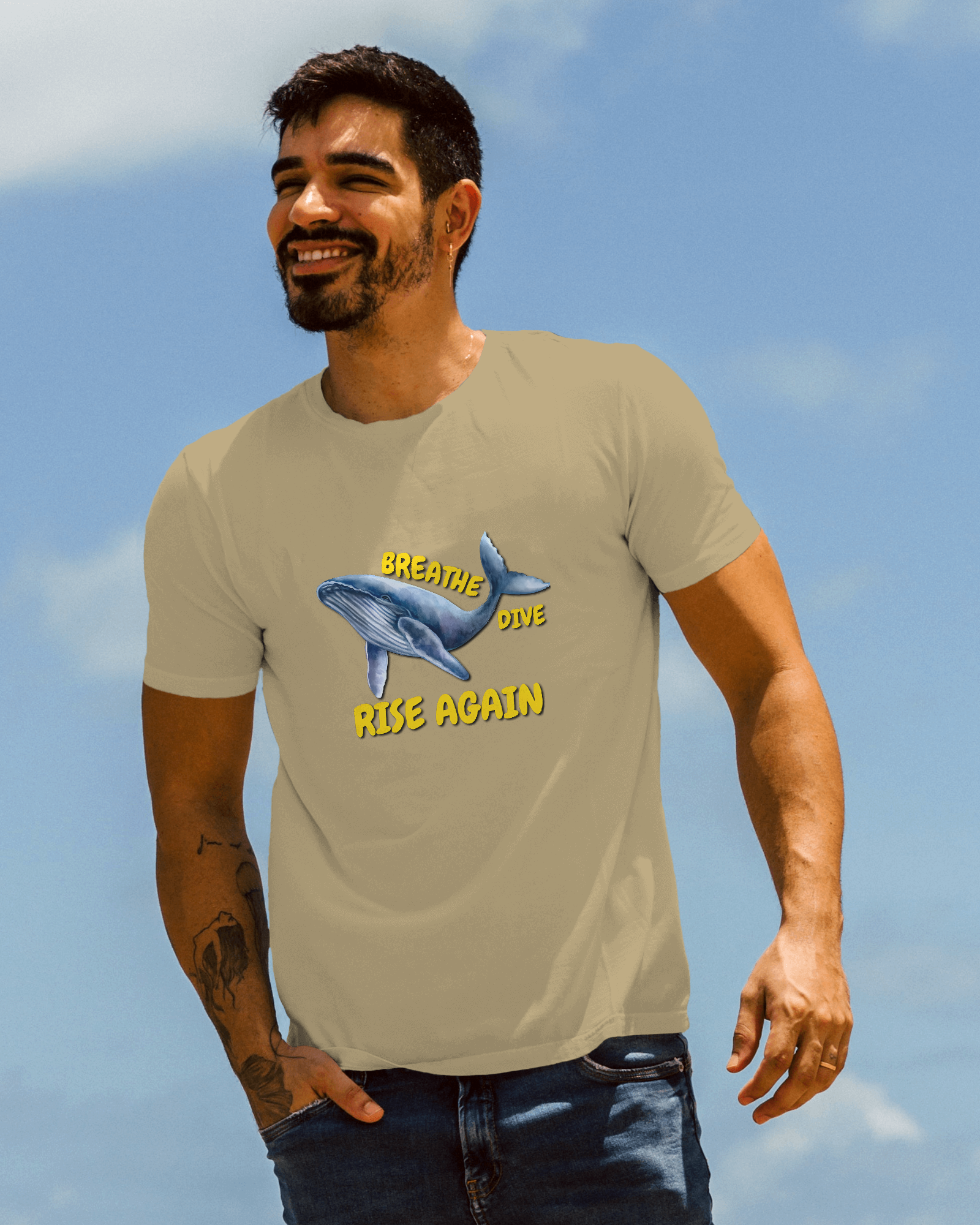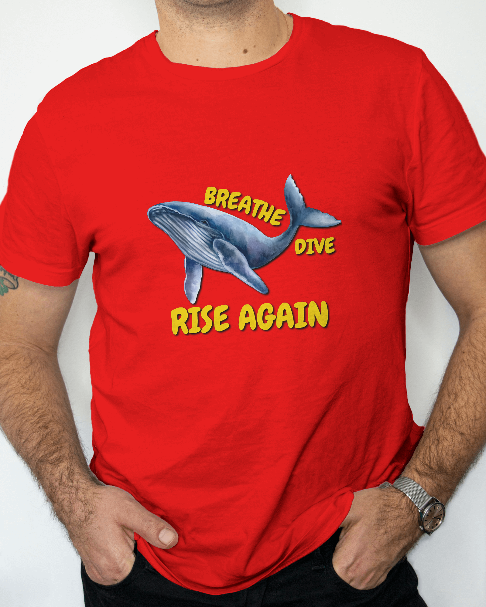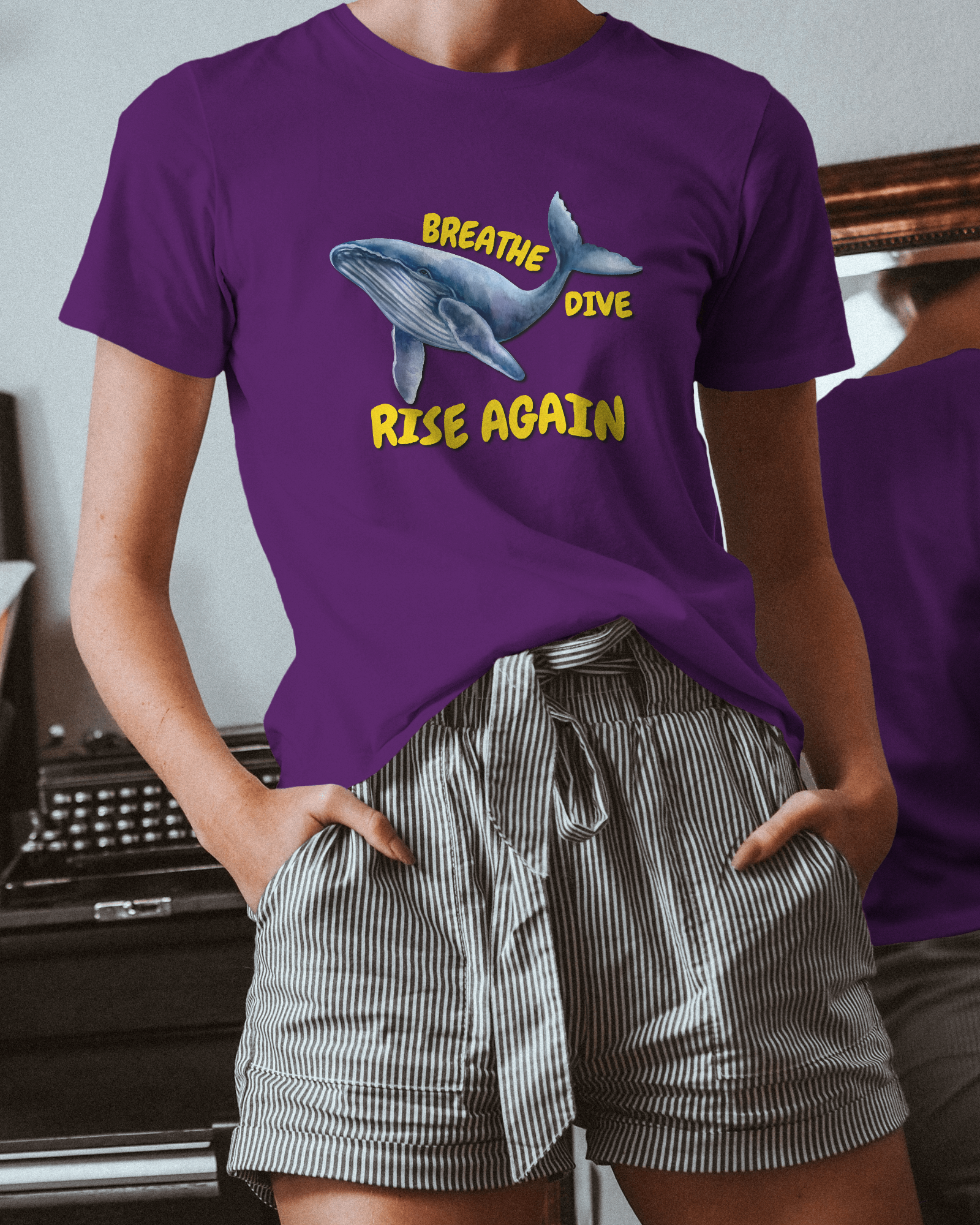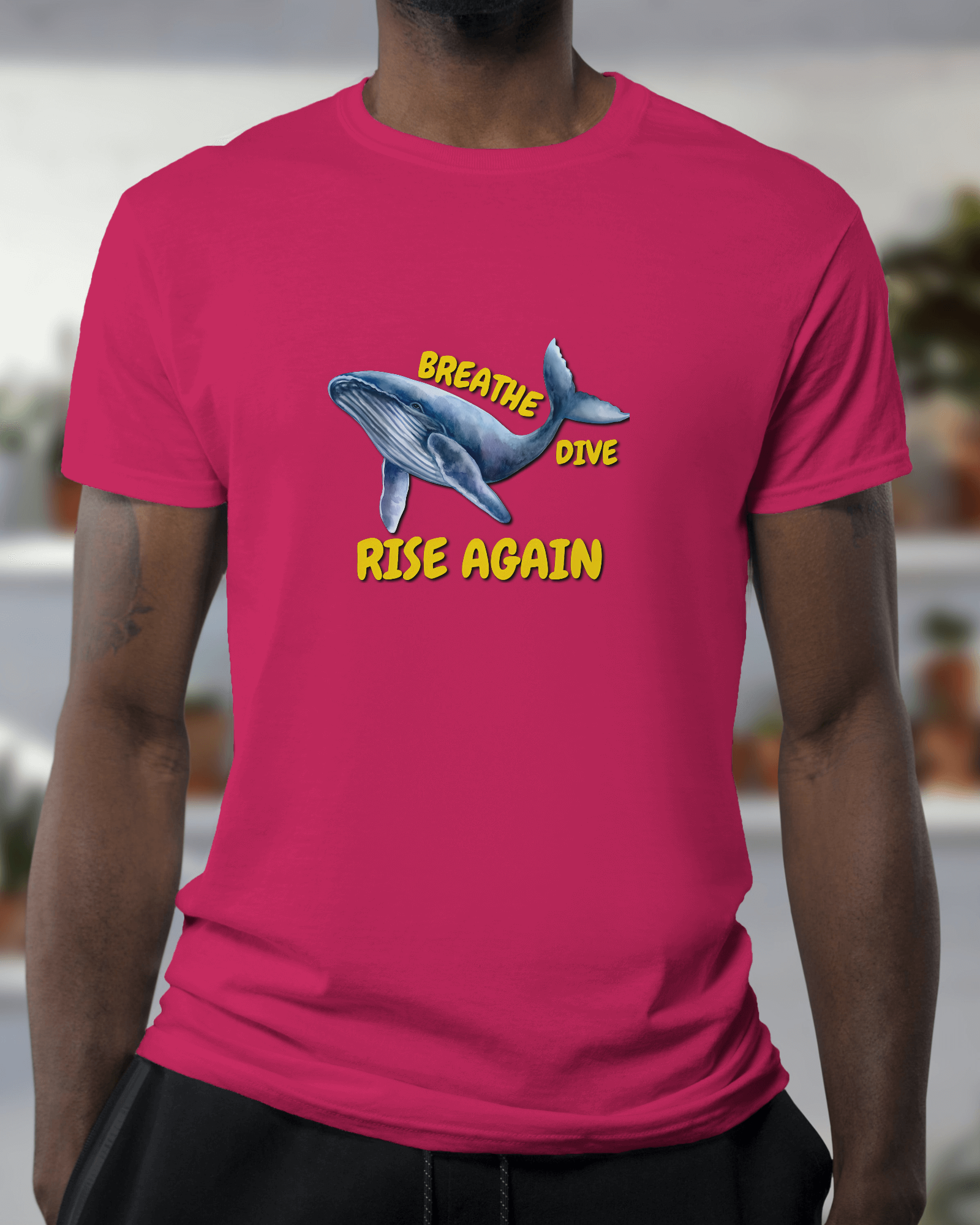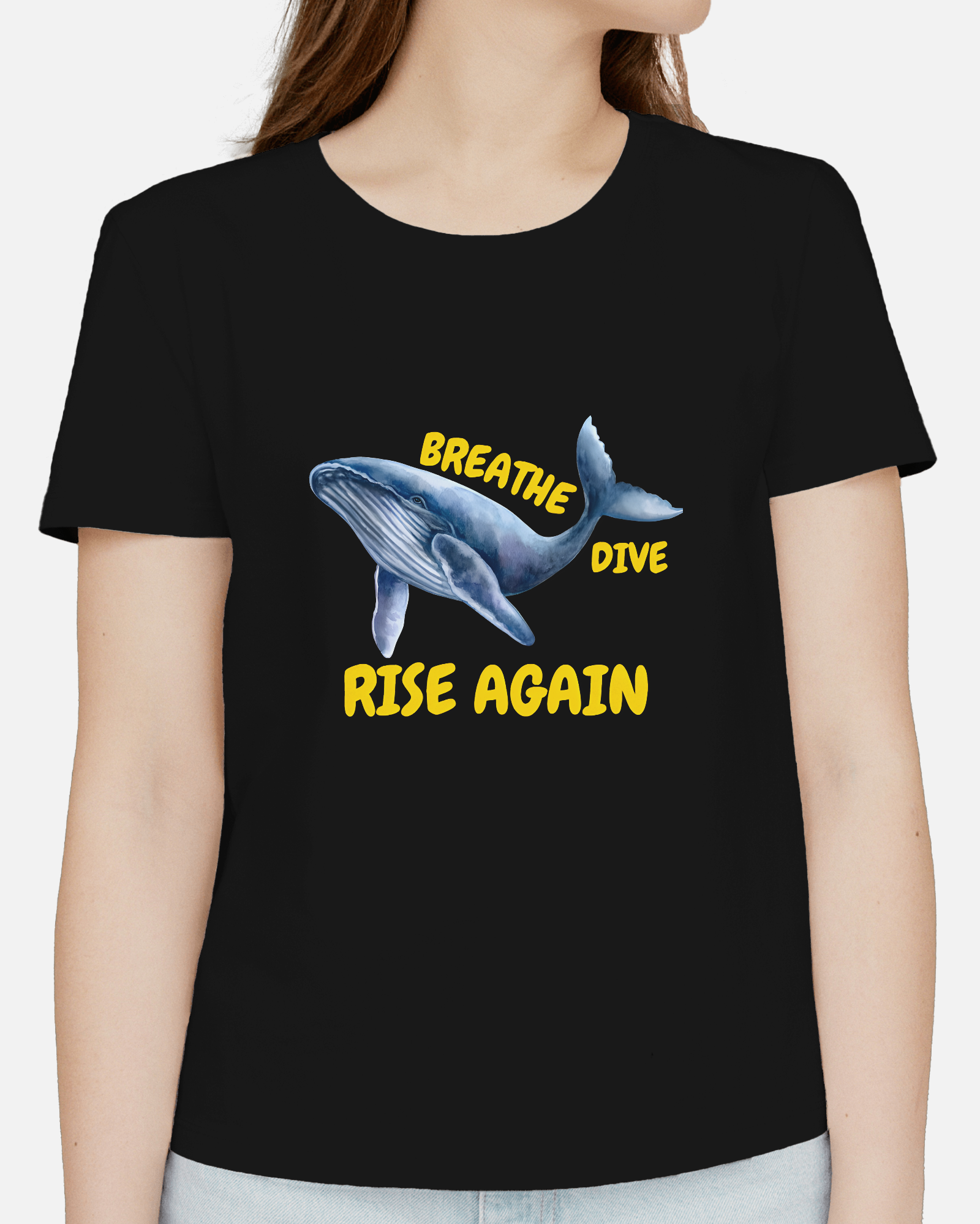 ✅ Inspirational Whale Design – A majestic blue whale alongside the powerful message: BREATHE • DIVE • RISE AGAIN 🐋💙