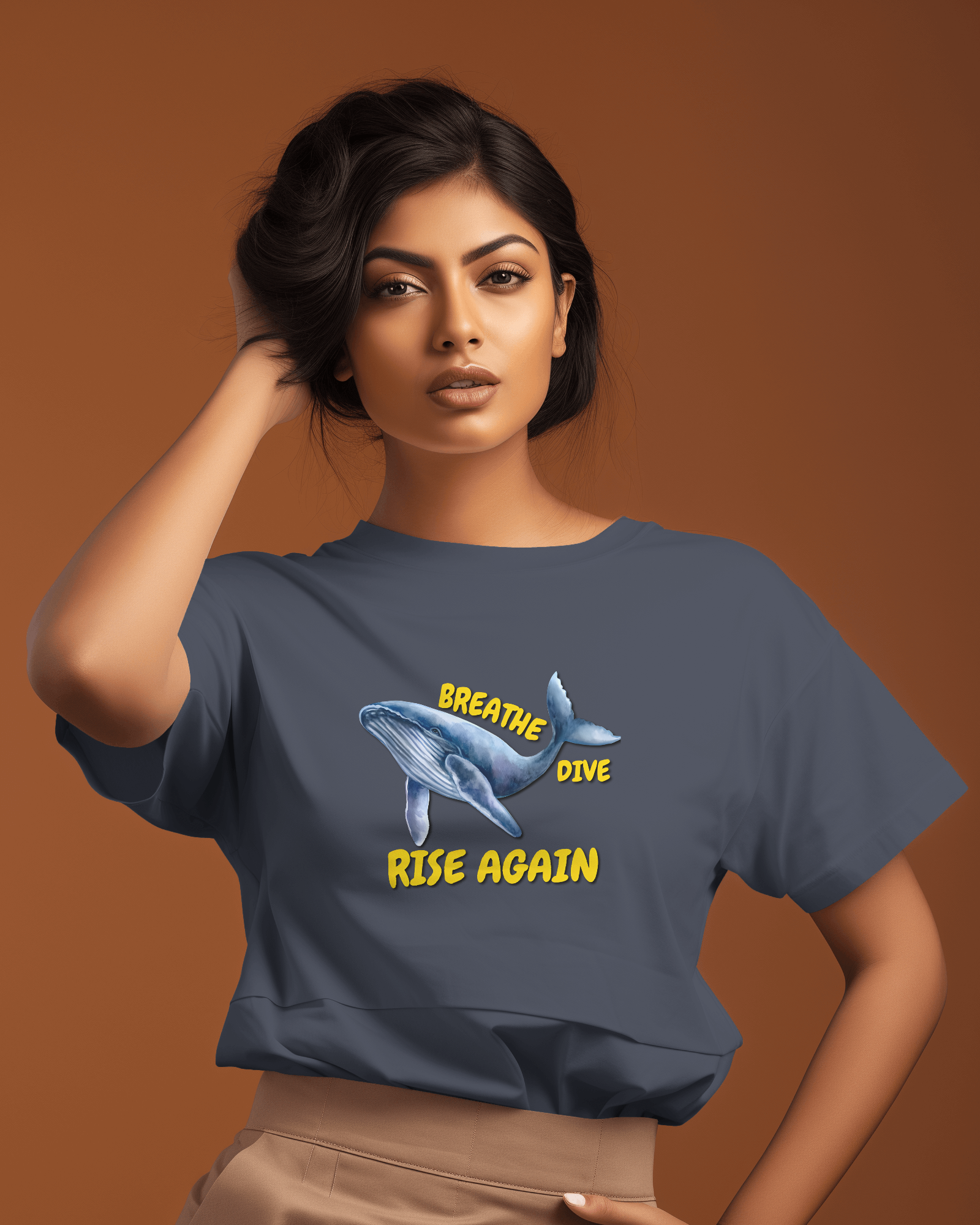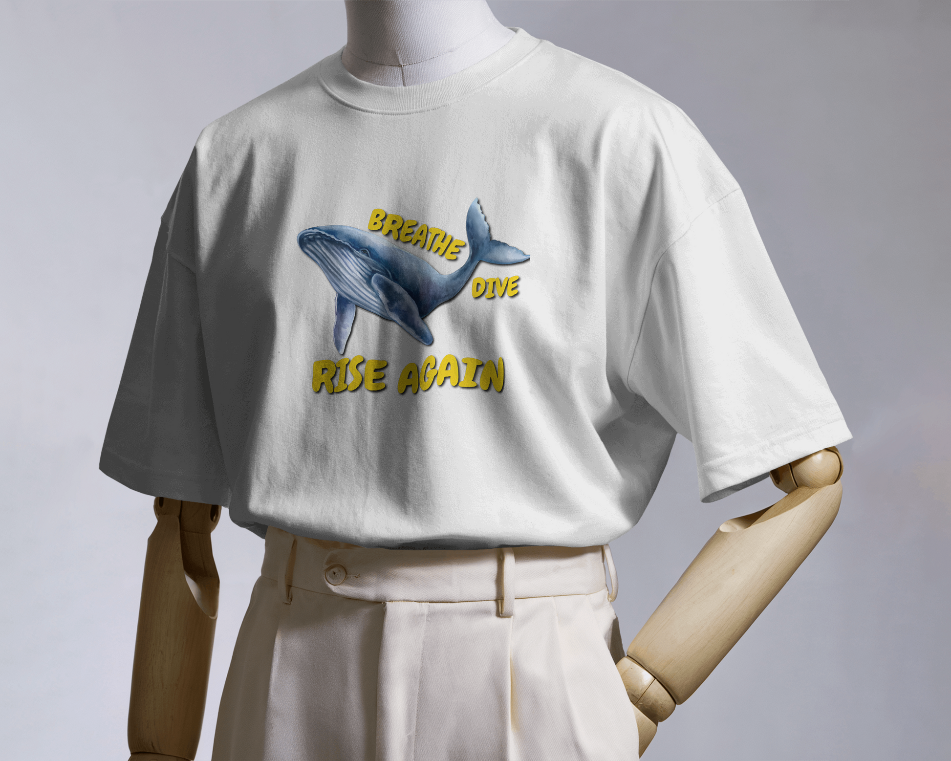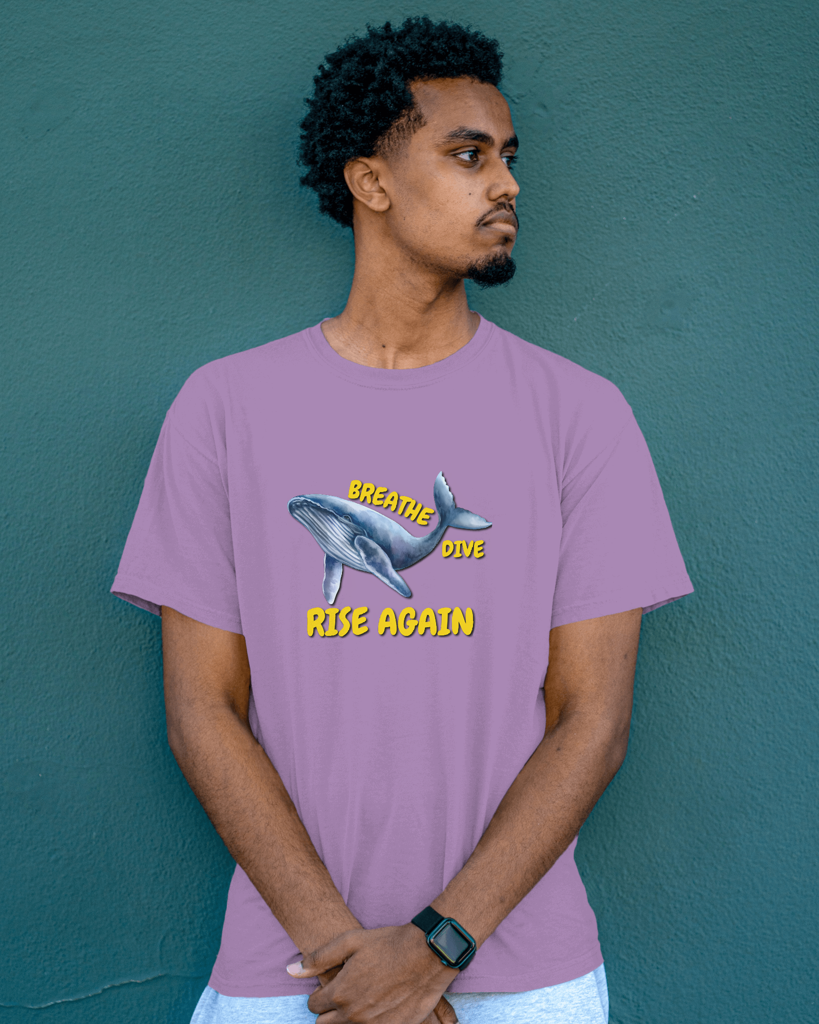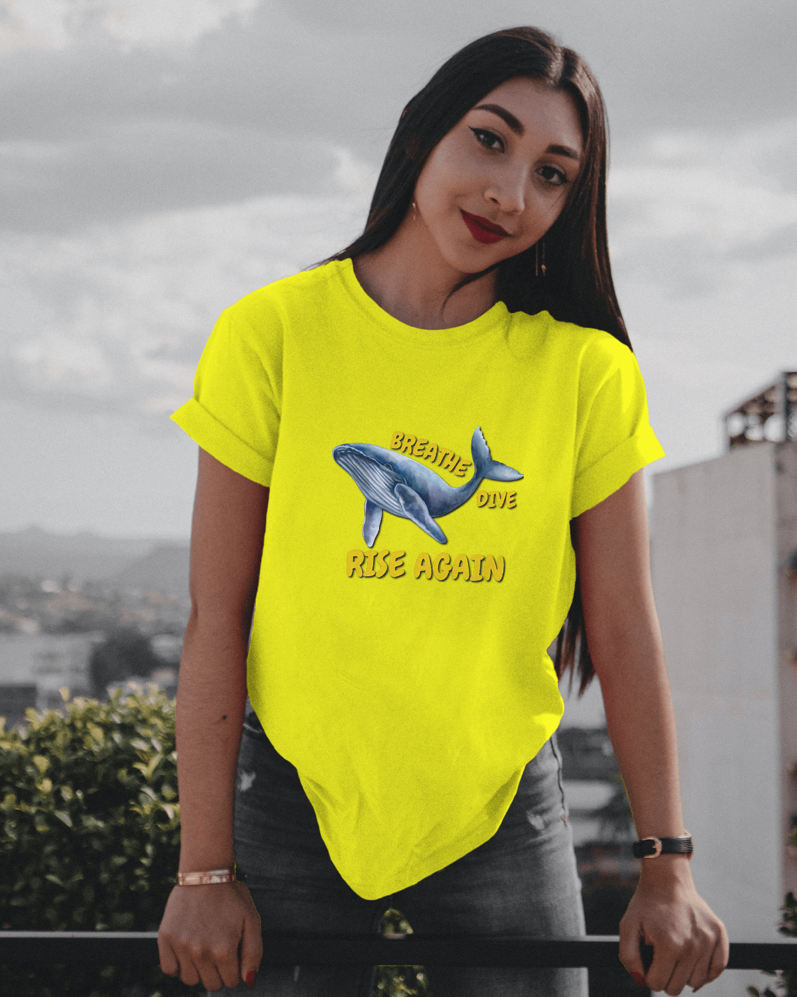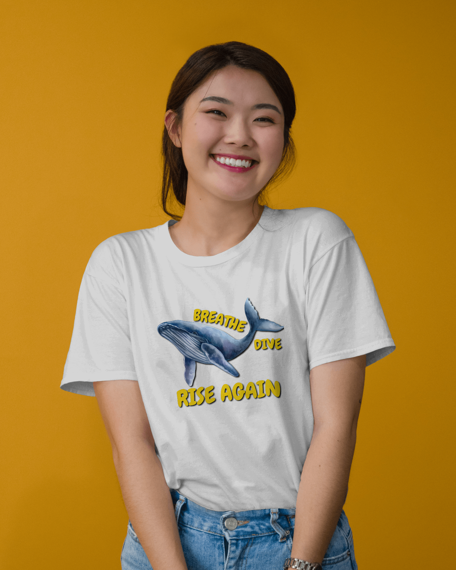 ✅ Inspirational Whale Design – A majestic blue whale alongside the powerful message: BREATHE • DIVE • RISE AGAIN 🐋💙