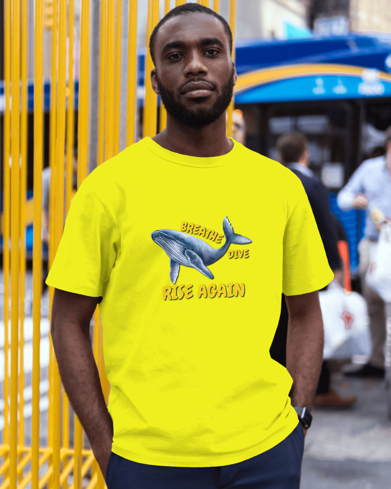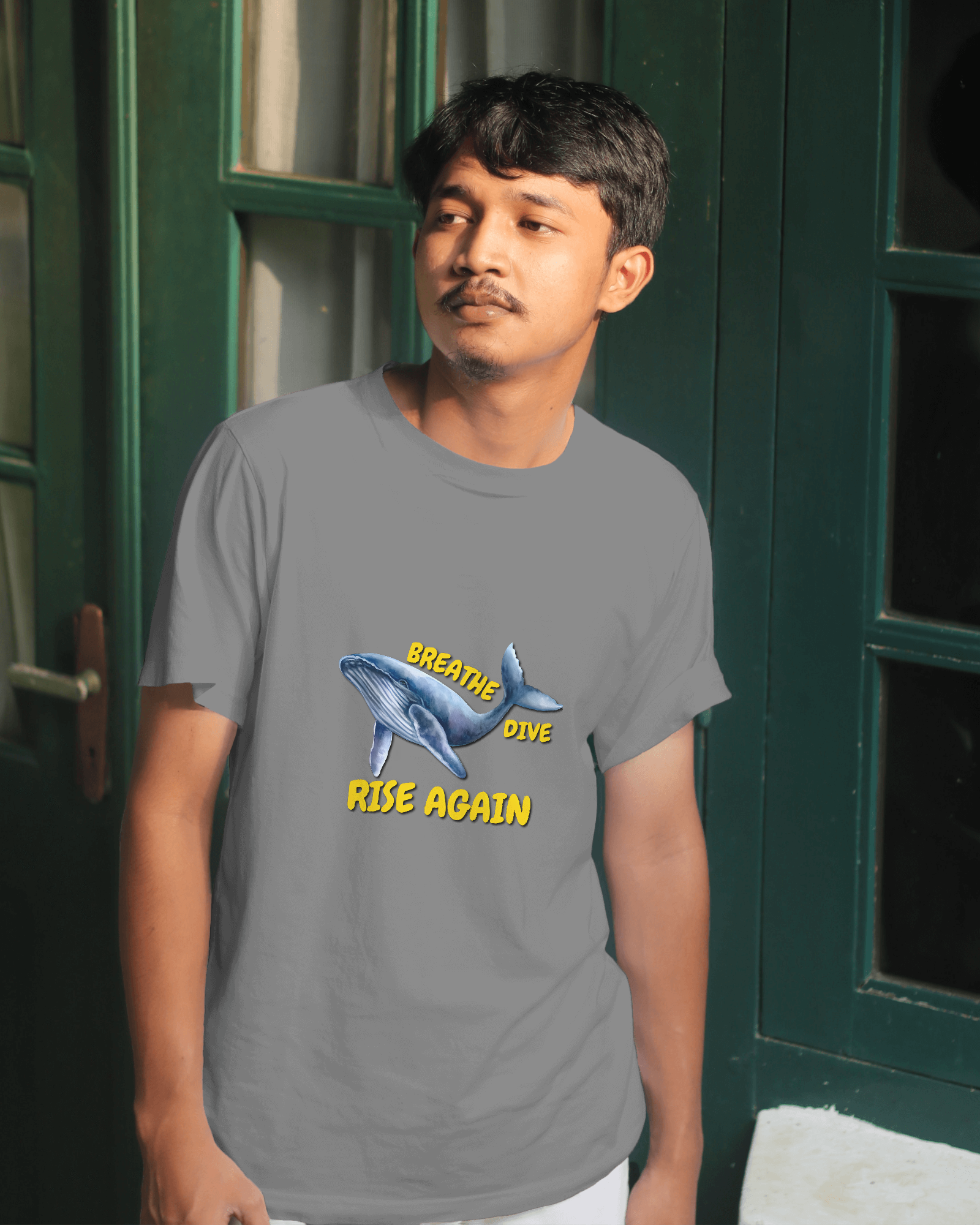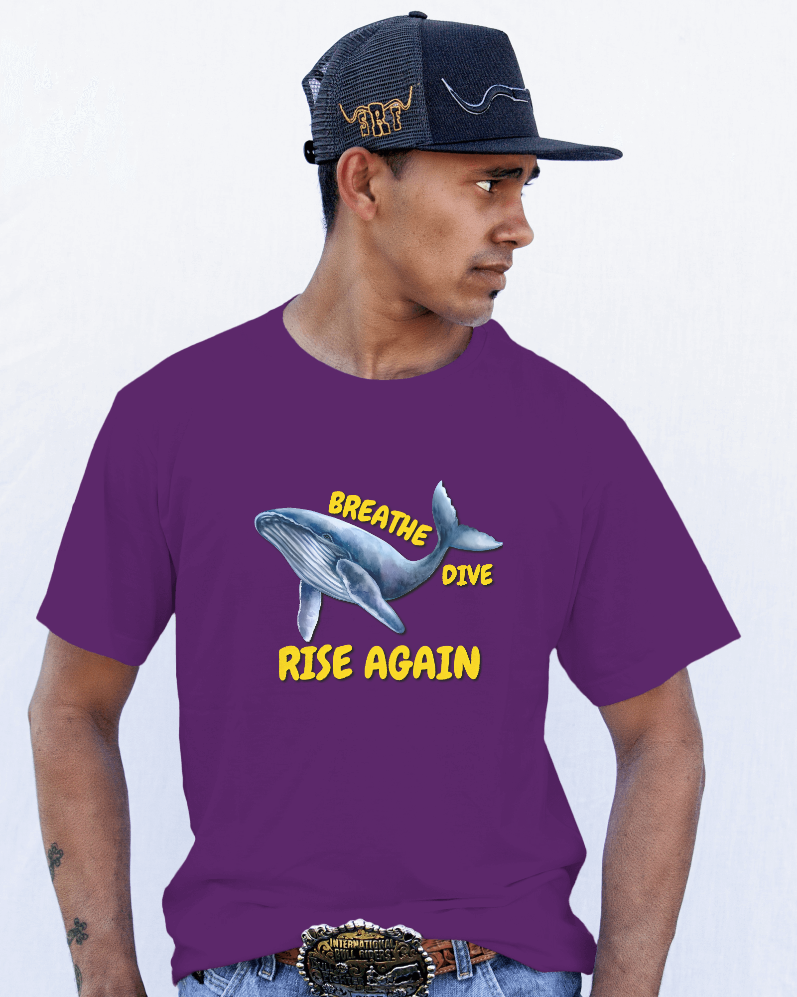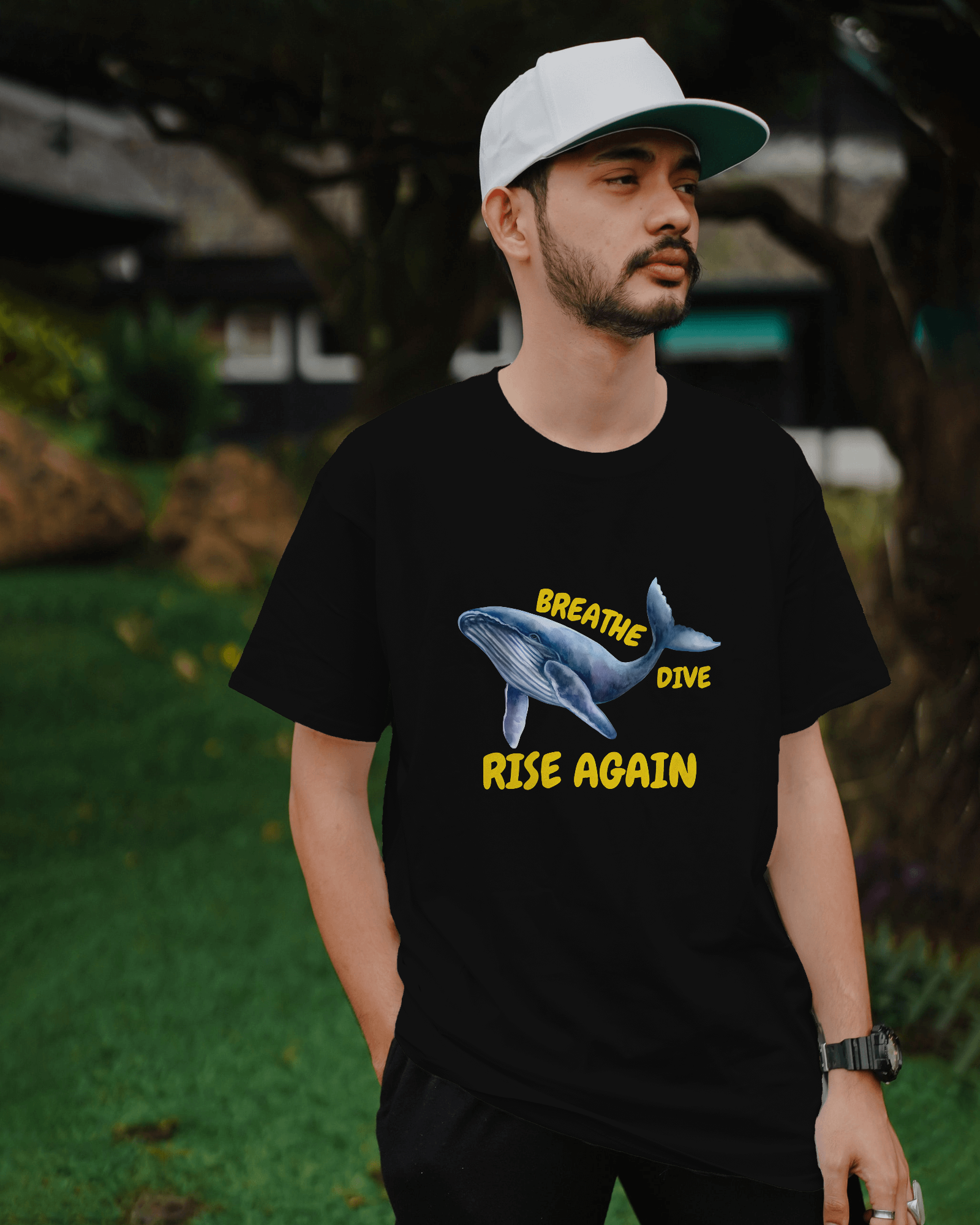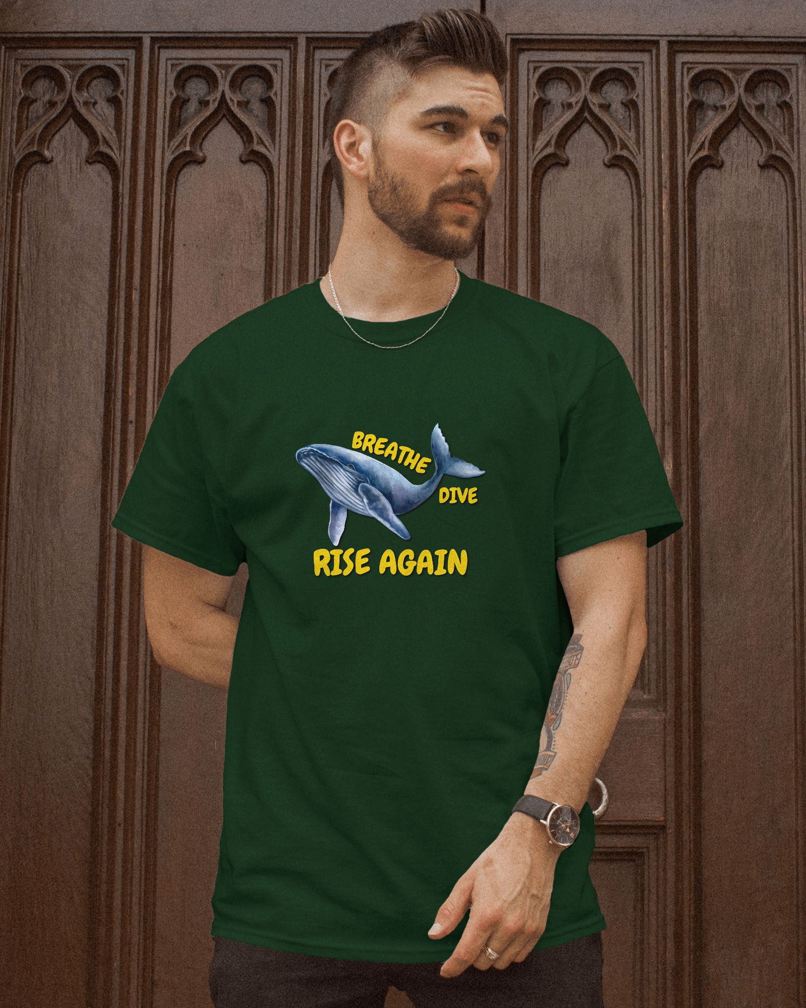 ✅ Inspirational Whale Design – A majestic blue whale alongside the powerful message: BREATHE • DIVE • RISE AGAIN 🐋💙