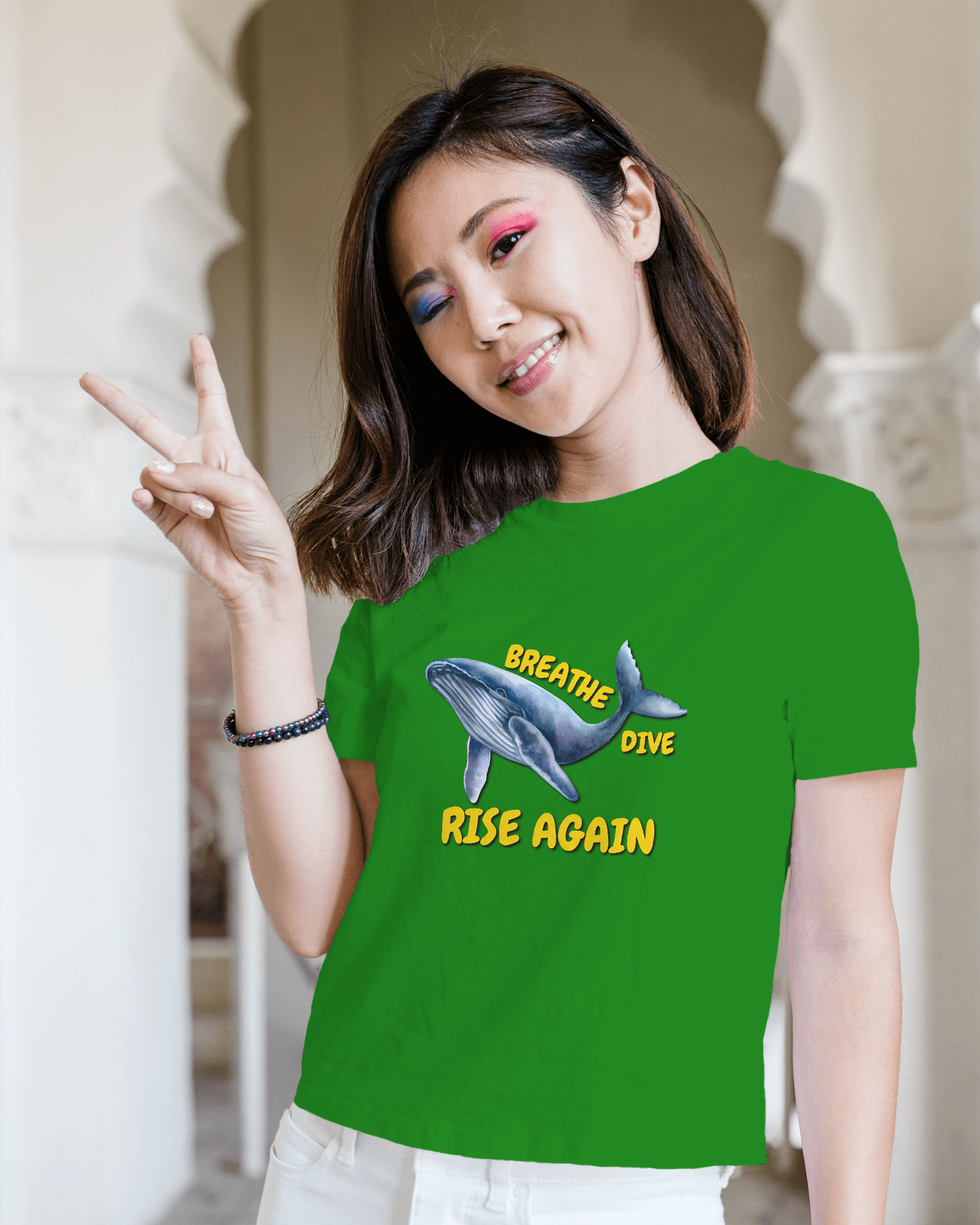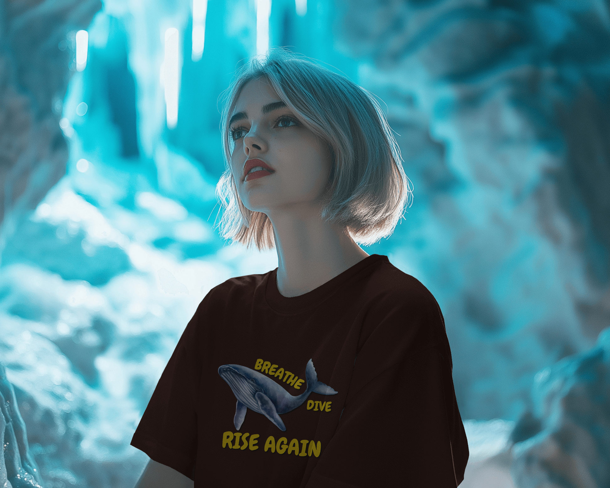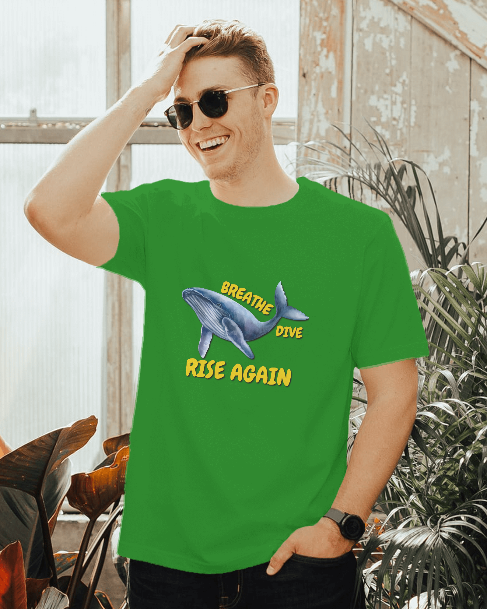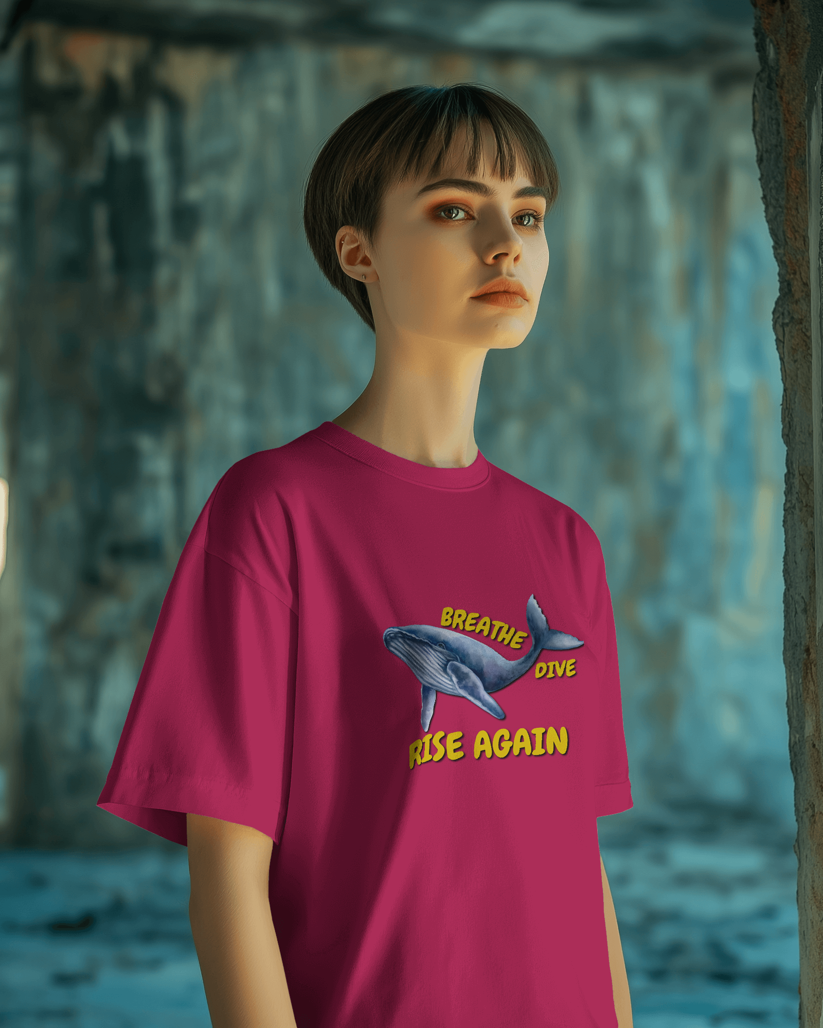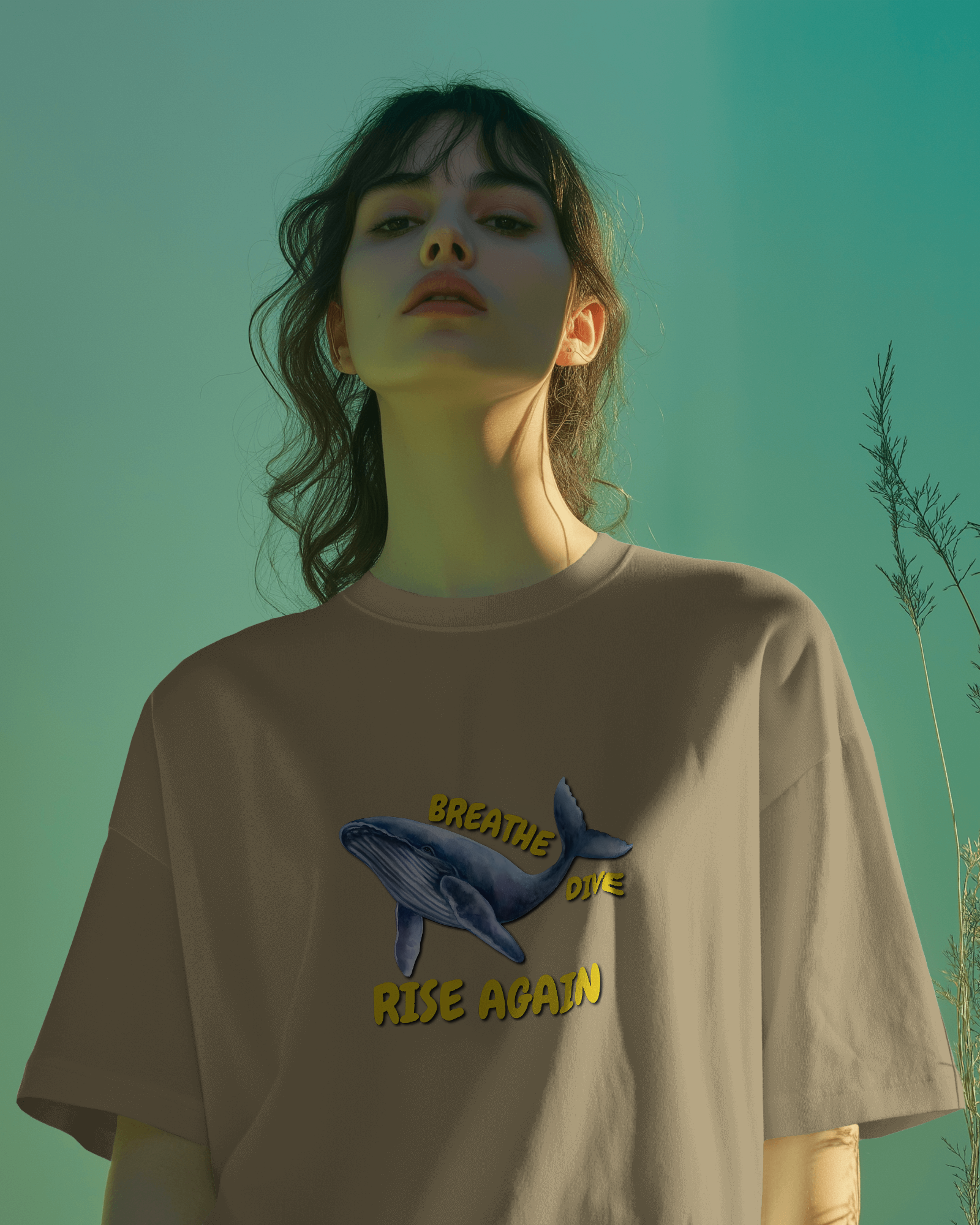 ✅ Inspirational Whale Design – A majestic blue whale alongside the powerful message: BREATHE • DIVE • RISE AGAIN 🐋💙