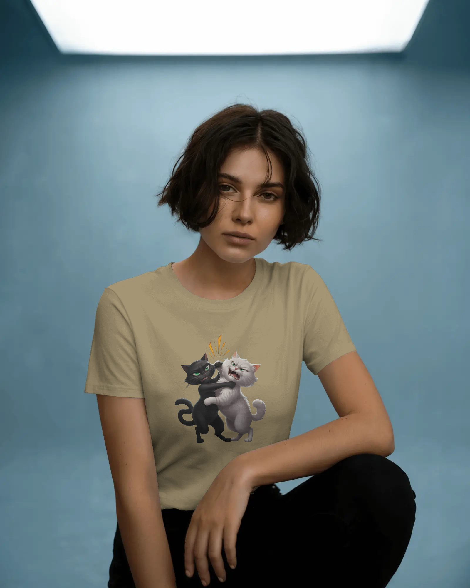 Earth & Thread | Hugging Cats 100% Cotton Regular Fit T-Shirt - Premium 180 GSM Adorable Pet Graphic