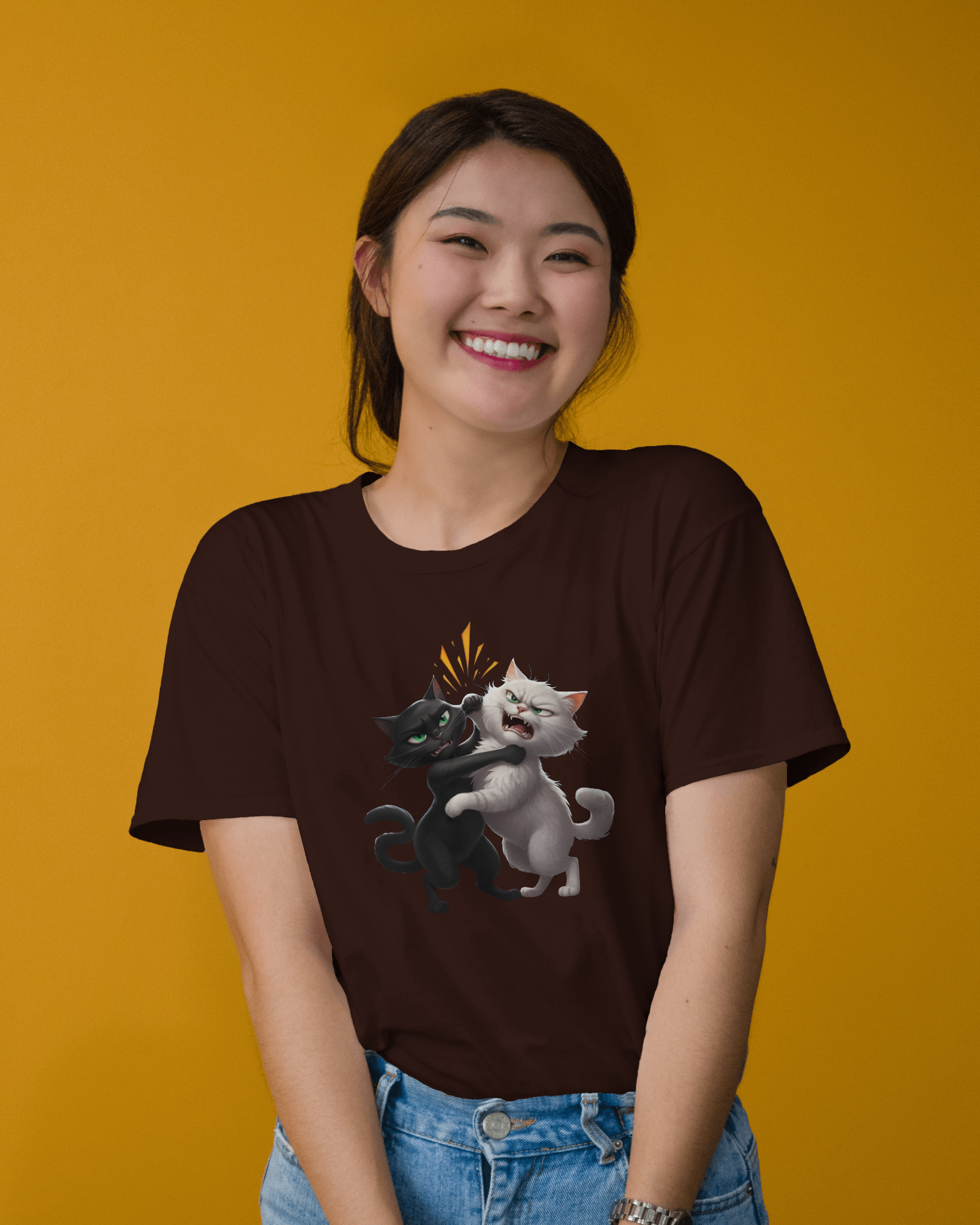 Experience the luxurious embrace of 100% Pure Cotton, expertly spun to a perfect 180 GSM for optimal comfort and lasting quality. This fabric is supremely soft, highly breathable, and ensures a comfortable, classic drape that makes it your go-to for daily wear. It's the ideal blend of natural comfort and premium everyday style, perfect for expressing your love for felines.