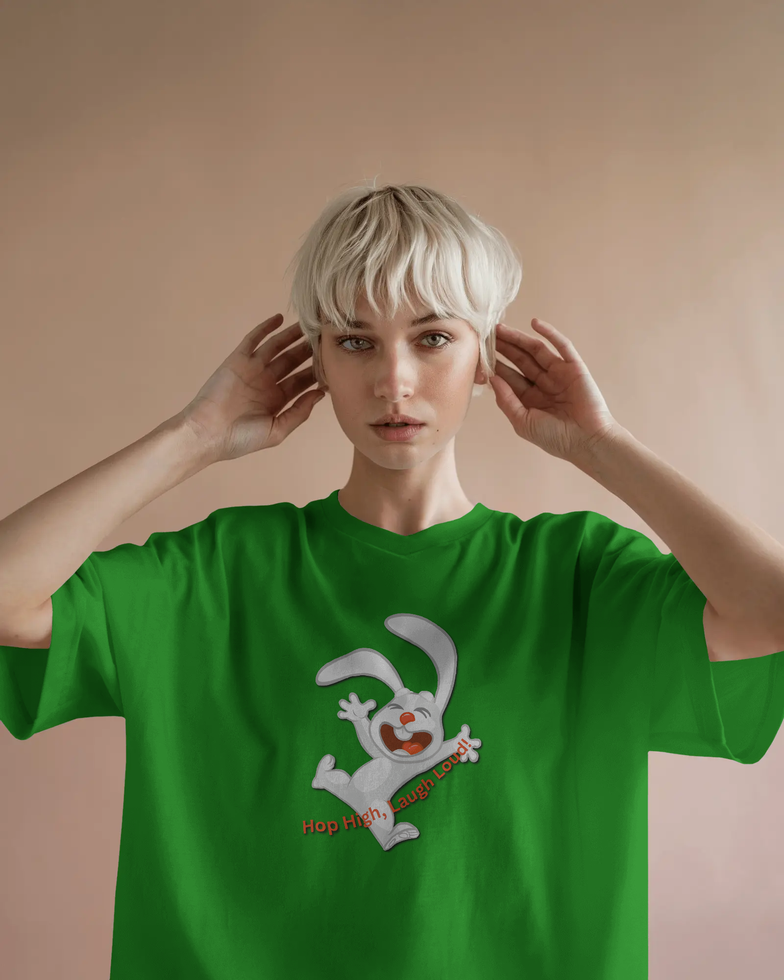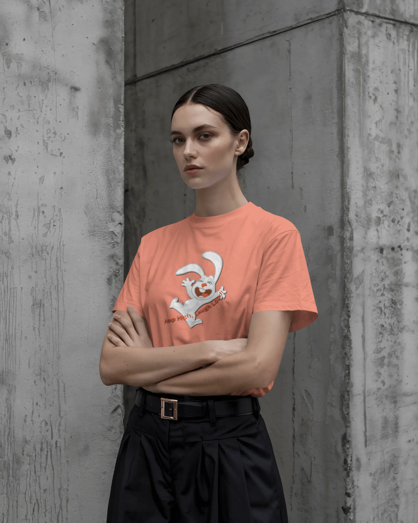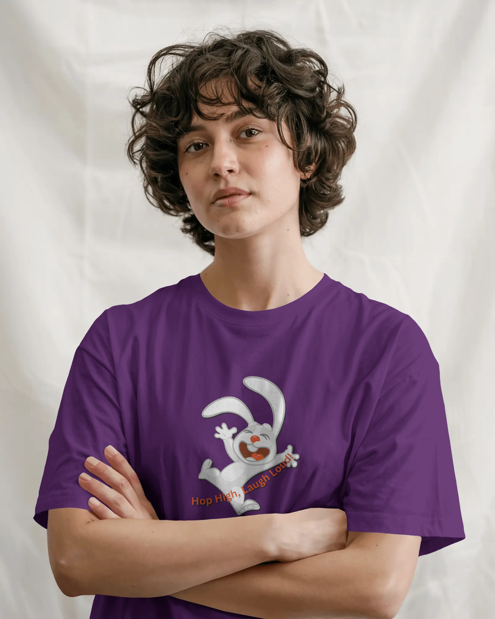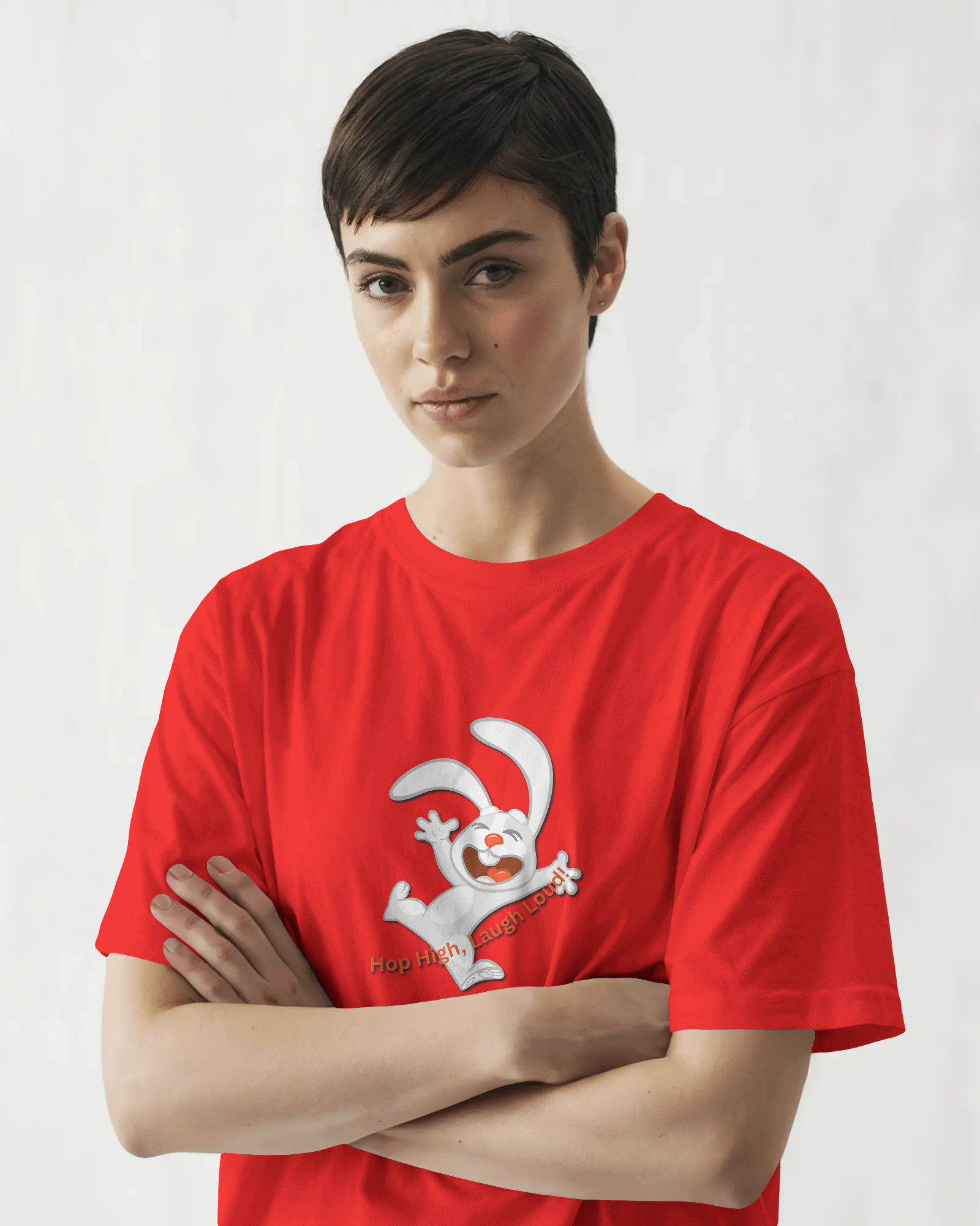 - Energetic 'Hop High!' Rabbit Graphic: A unique and cheerful design that brings a burst of positivity and fun to your outfit.