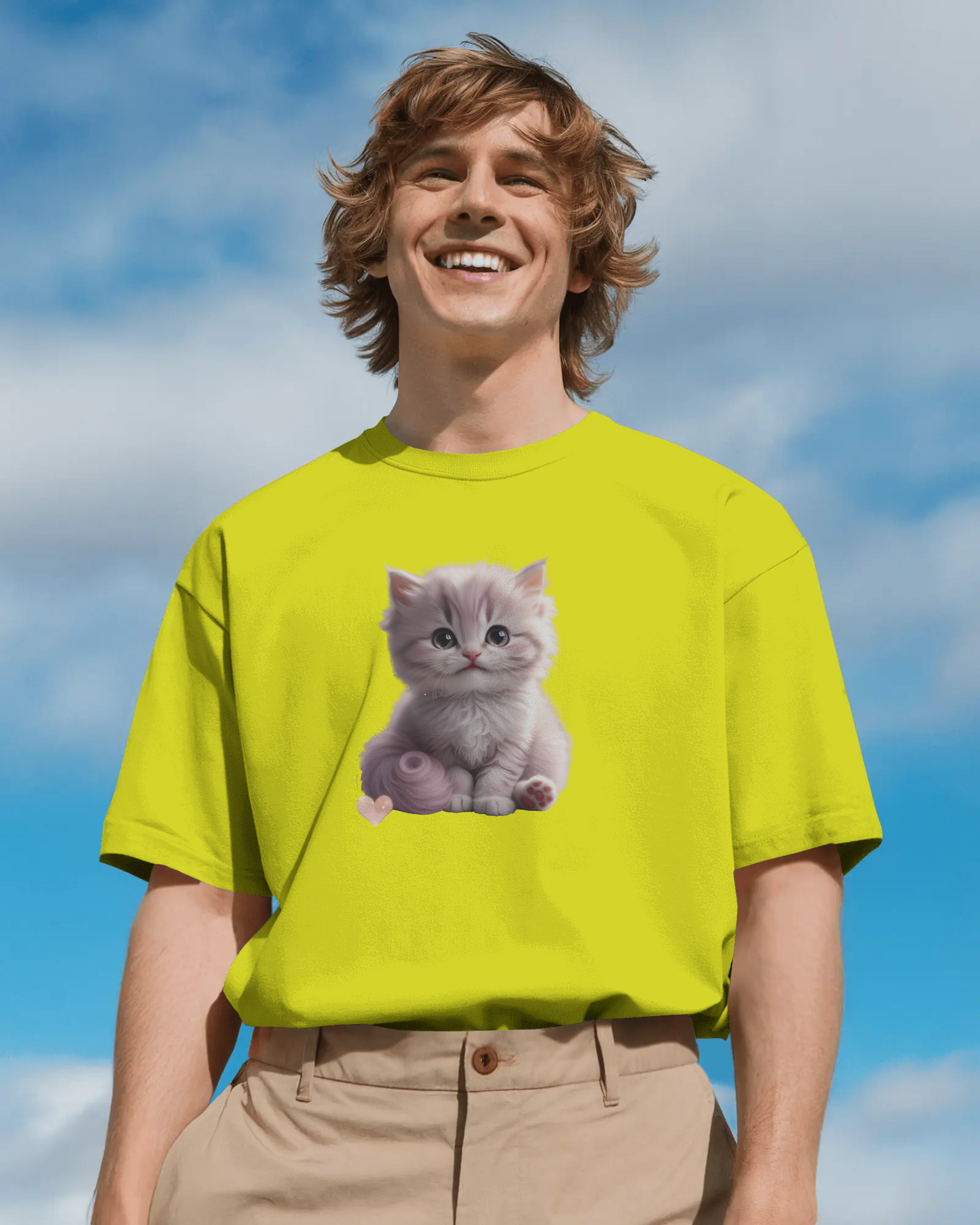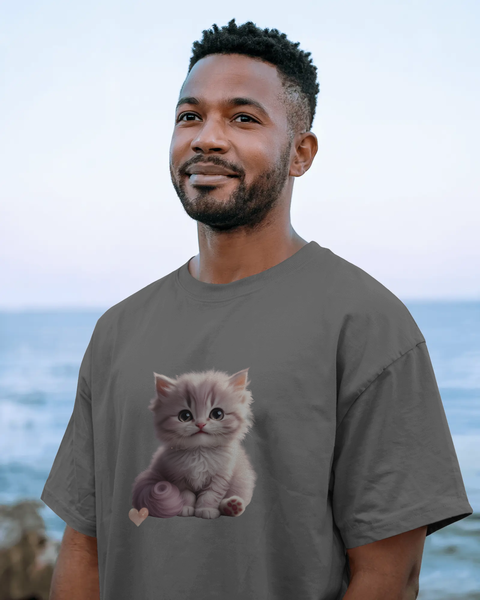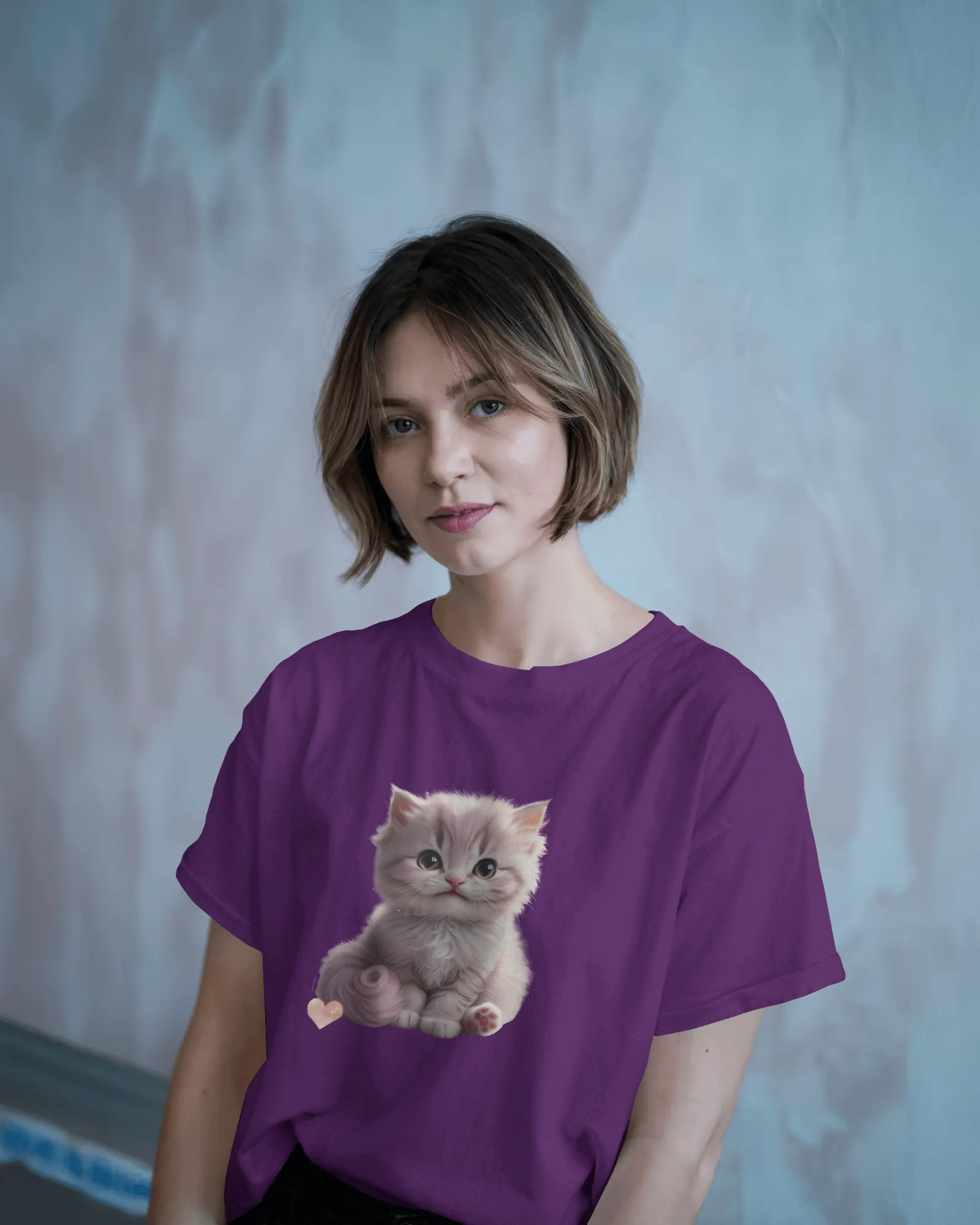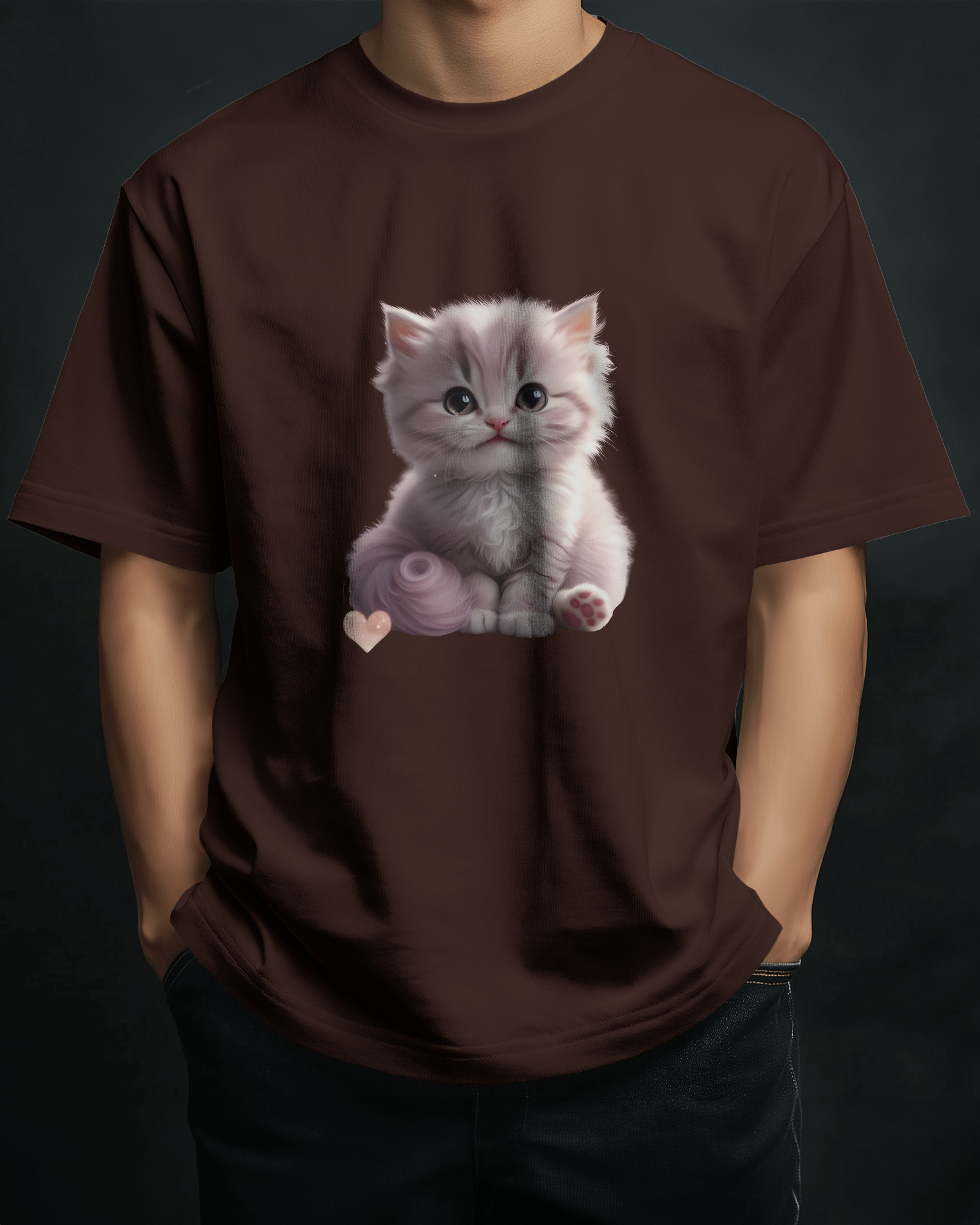 The captivating 'Cute Kitten' graphic, prominently featured on the chest, showcases an irresistibly fluffy, wide-eyed kitten, complete with a tiny pink heart – an emblem of pure affection. This isn't just a design; it's a mood-lifter, a charming nod to the joy and warmth that pets bring into our lives. With its classic regular fit, this tee offers a timeless silhouette that perfectly highlights the endearing graphic.