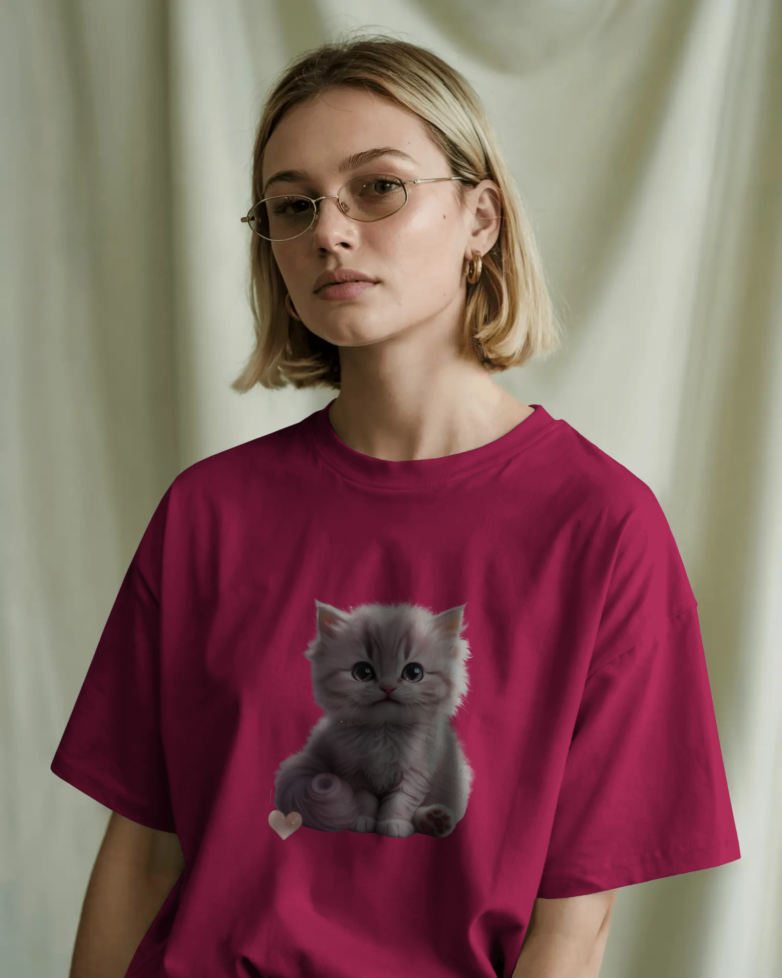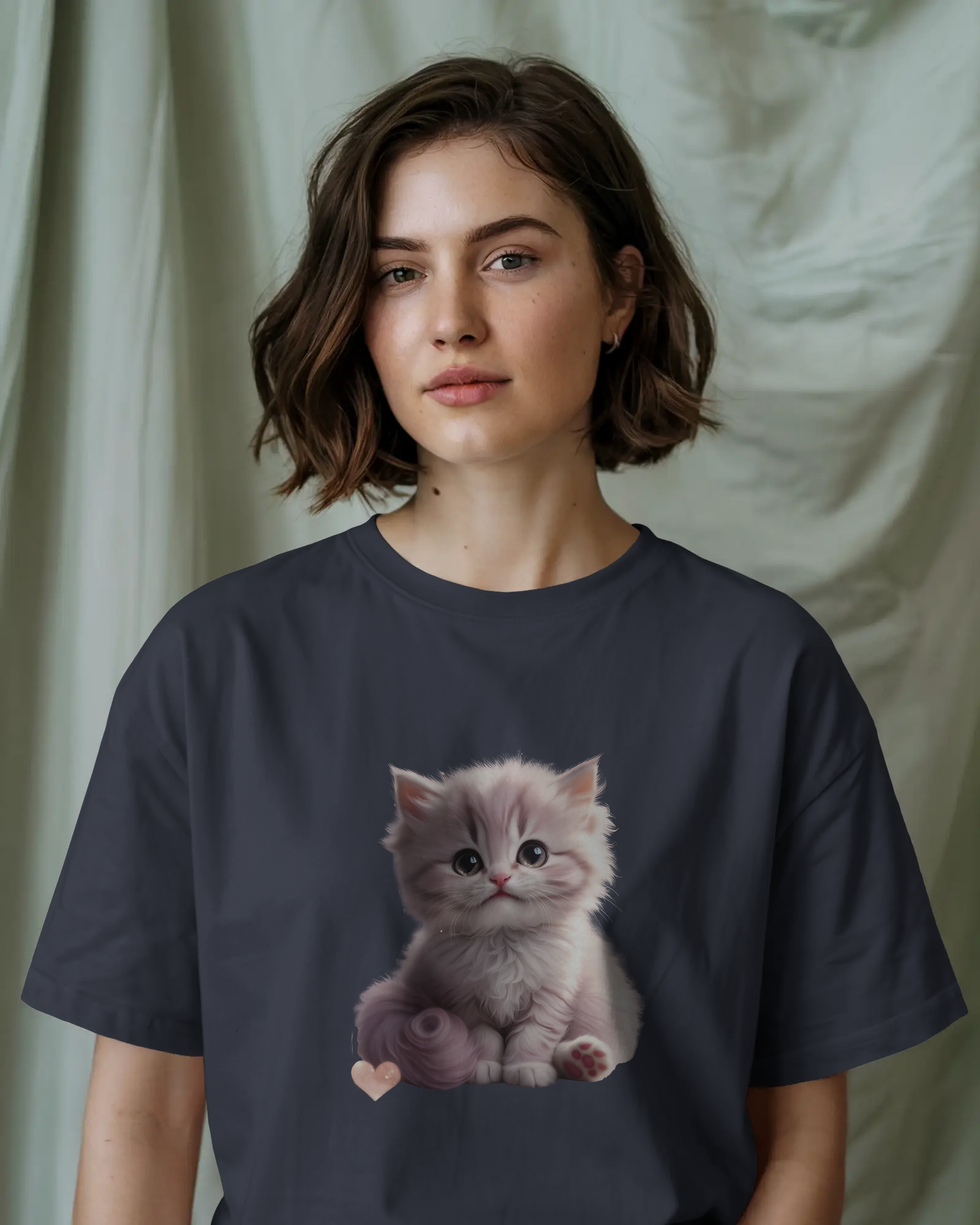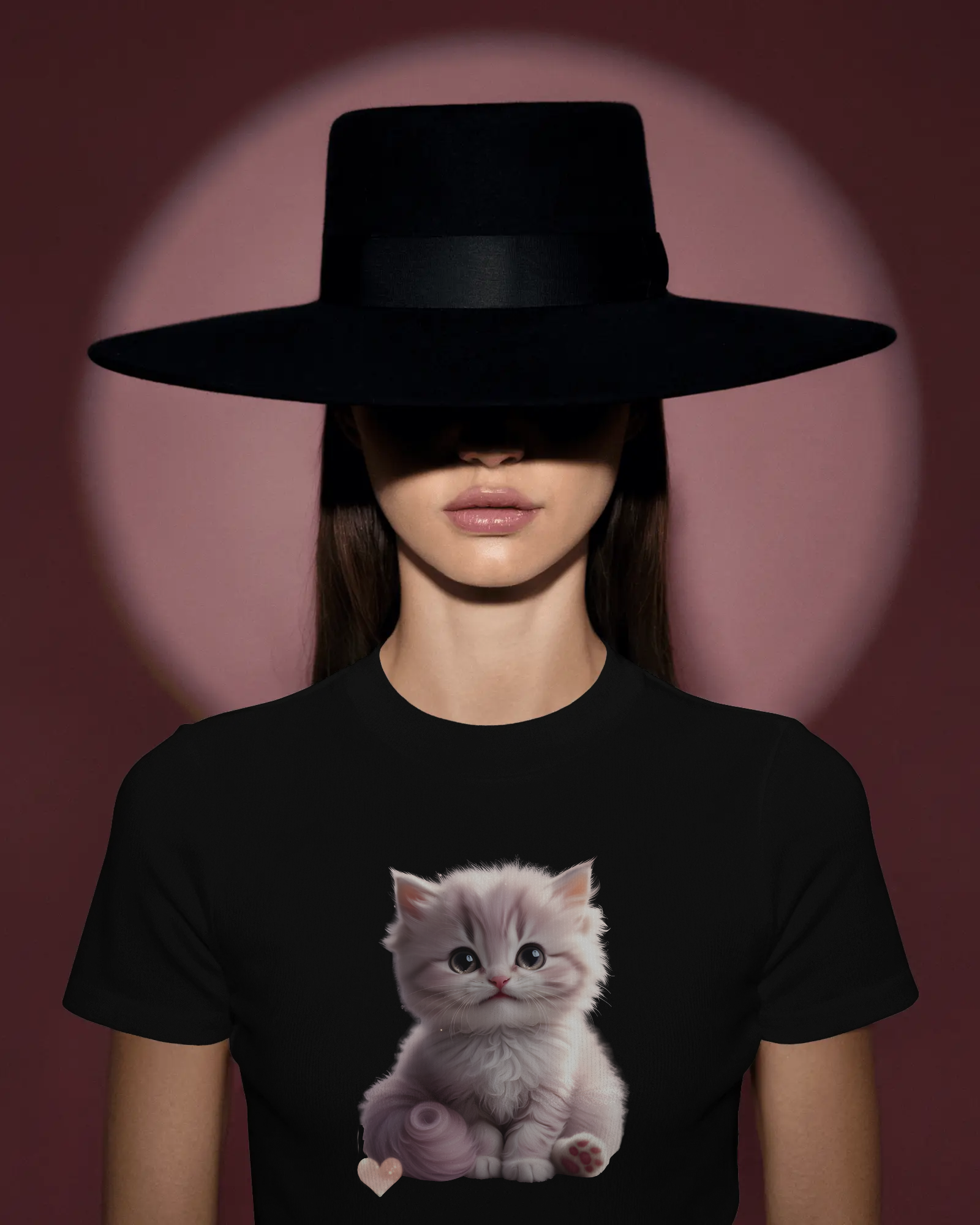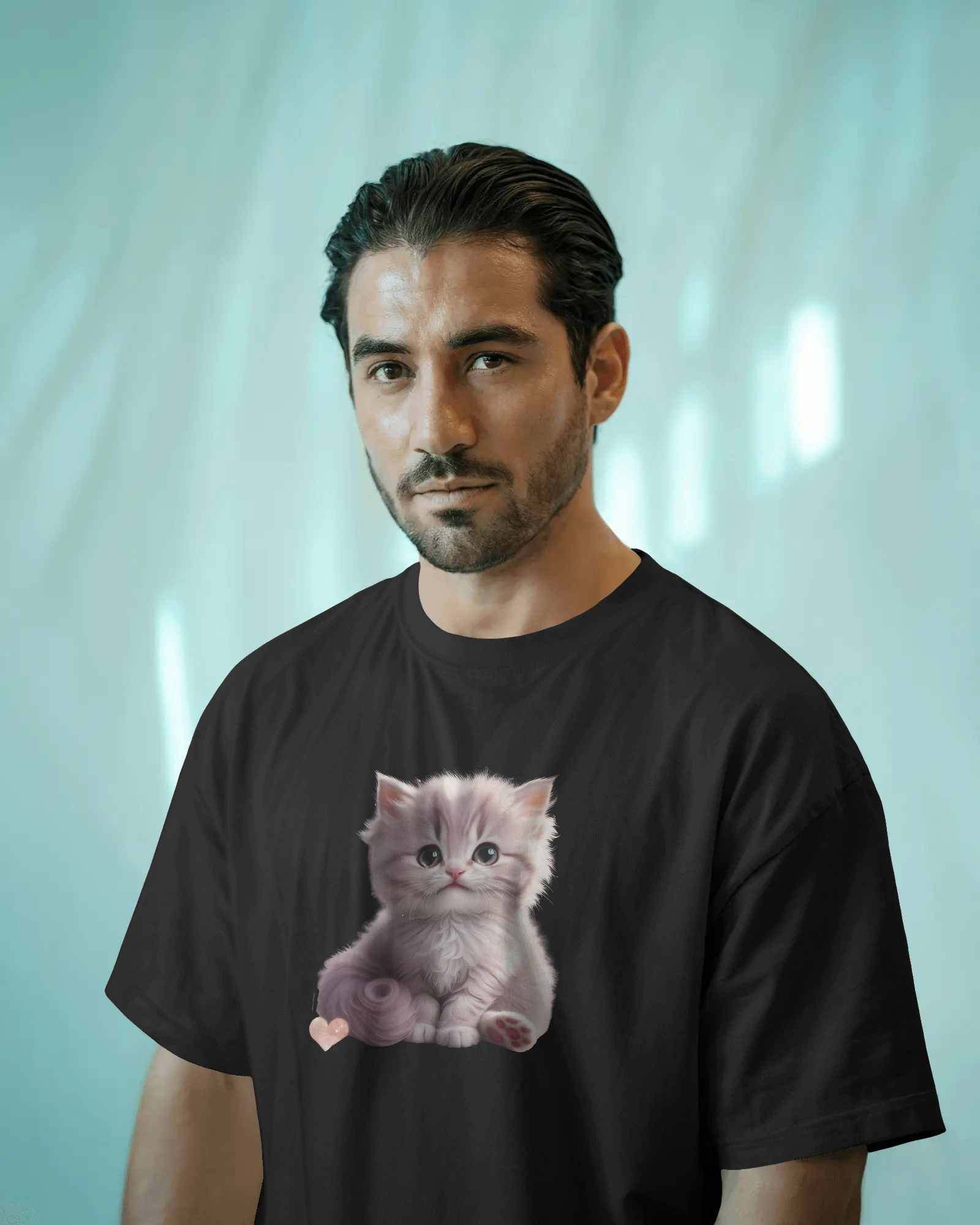 The captivating 'Cute Kitten' graphic, prominently featured on the chest, showcases an irresistibly fluffy, wide-eyed kitten, complete with a tiny pink heart – an emblem of pure affection. This isn't just a design; it's a mood-lifter, a charming nod to the joy and warmth that pets bring into our lives. With its classic regular fit, this tee offers a timeless silhouette that perfectly highlights the endearing graphic.