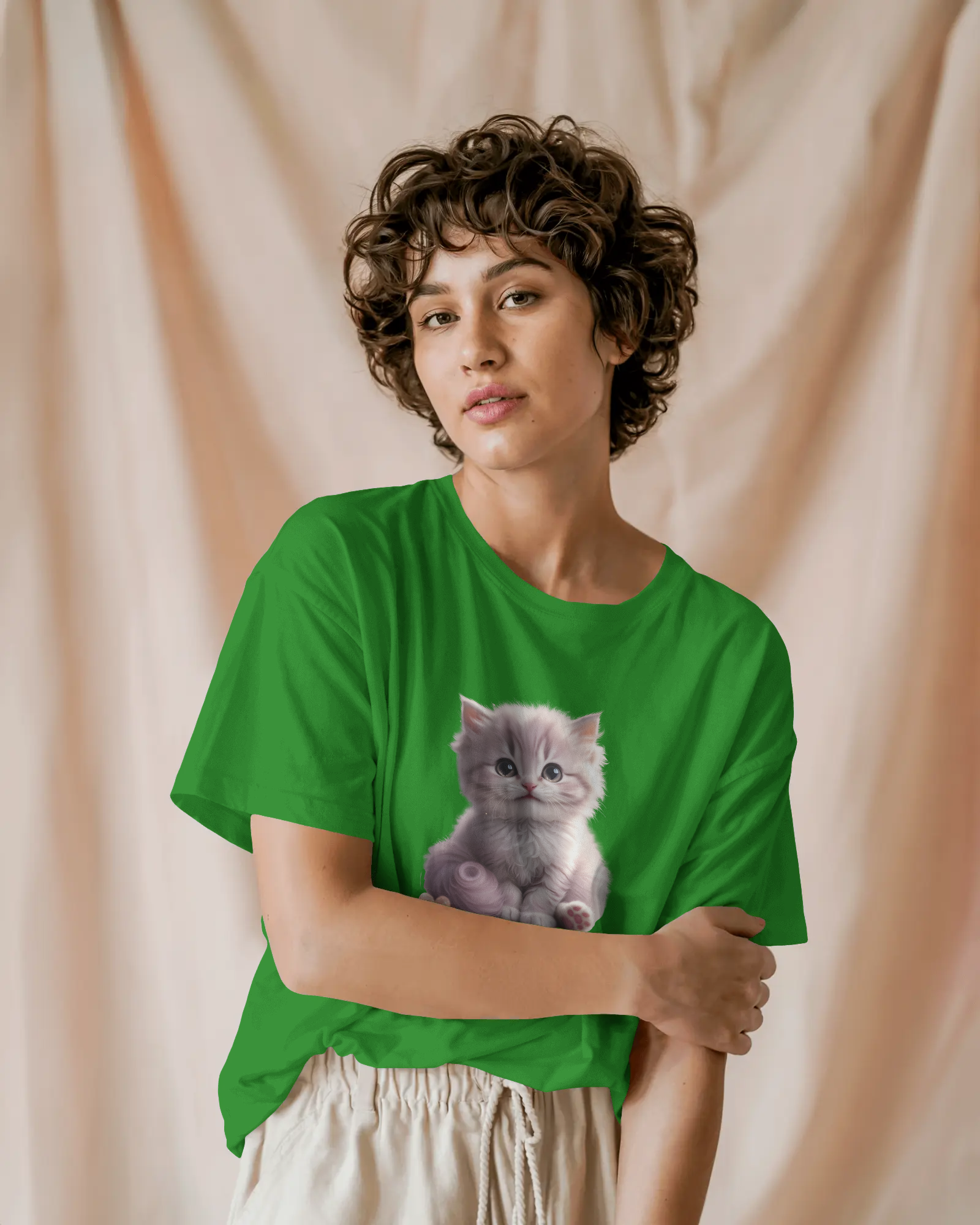 Earth & Thread | Cute Kitten 100% Cotton Regular Fit T-Shirt - Premium 180 GSM Adorable Pet Graphic
