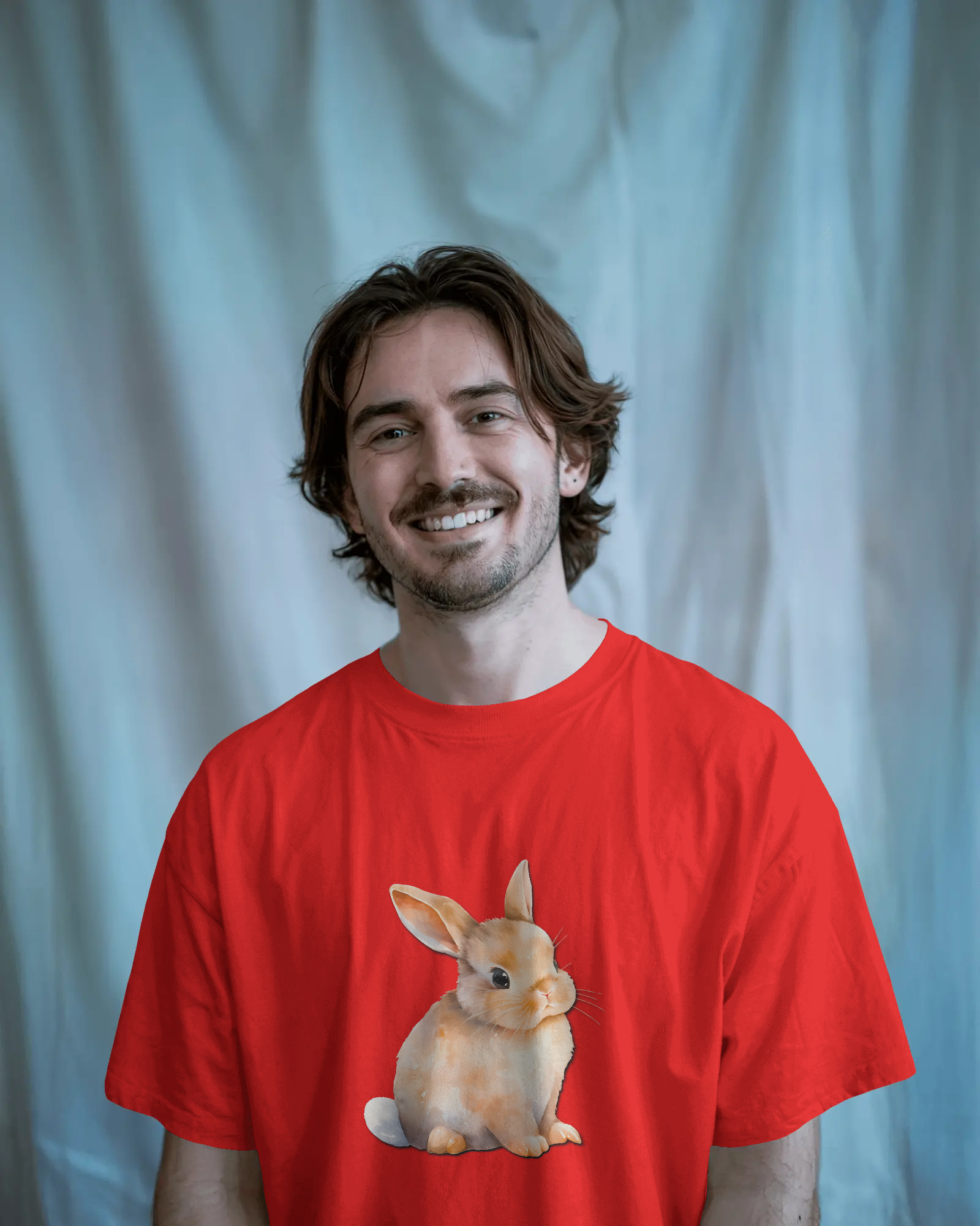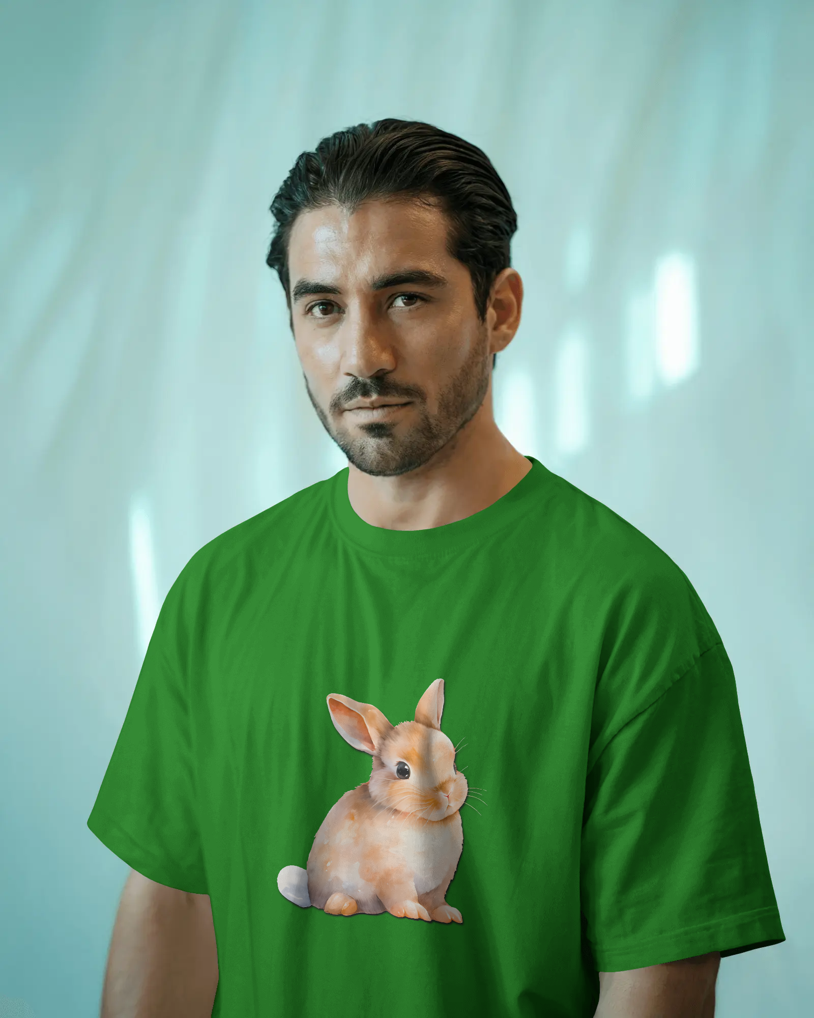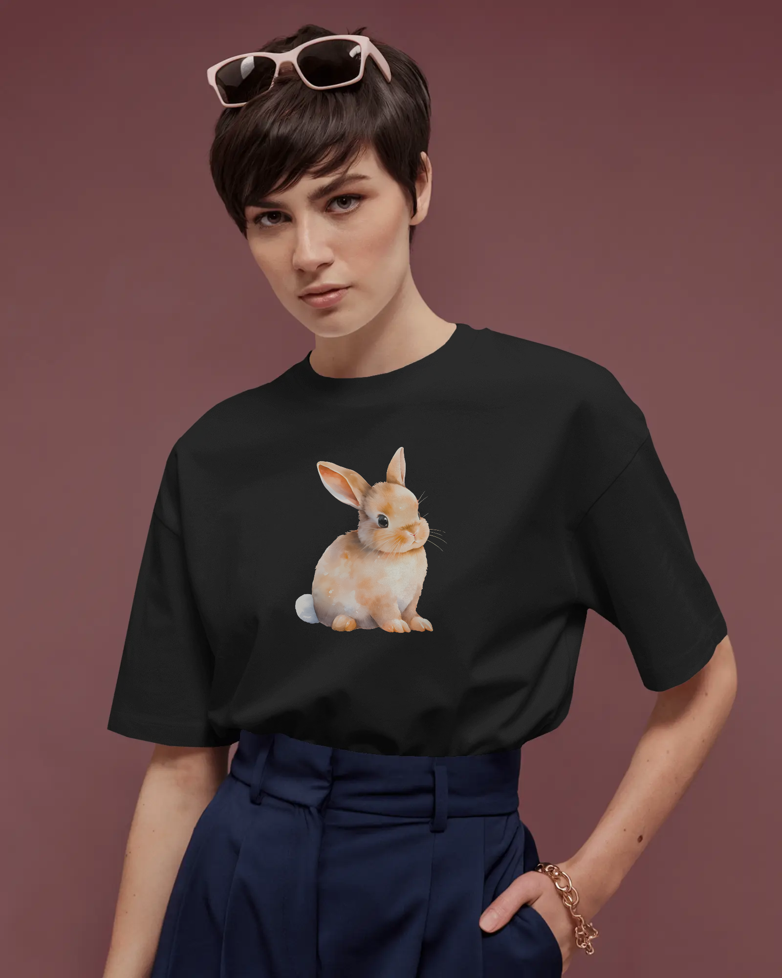 - Keywords: Cute bunny t-shirt, adorable rabbit tee, animal graphic, 100% cotton, regular fit t-shirt, premium 180 GSM, soft cotton, comfortable tee, men's casual, women's casual.