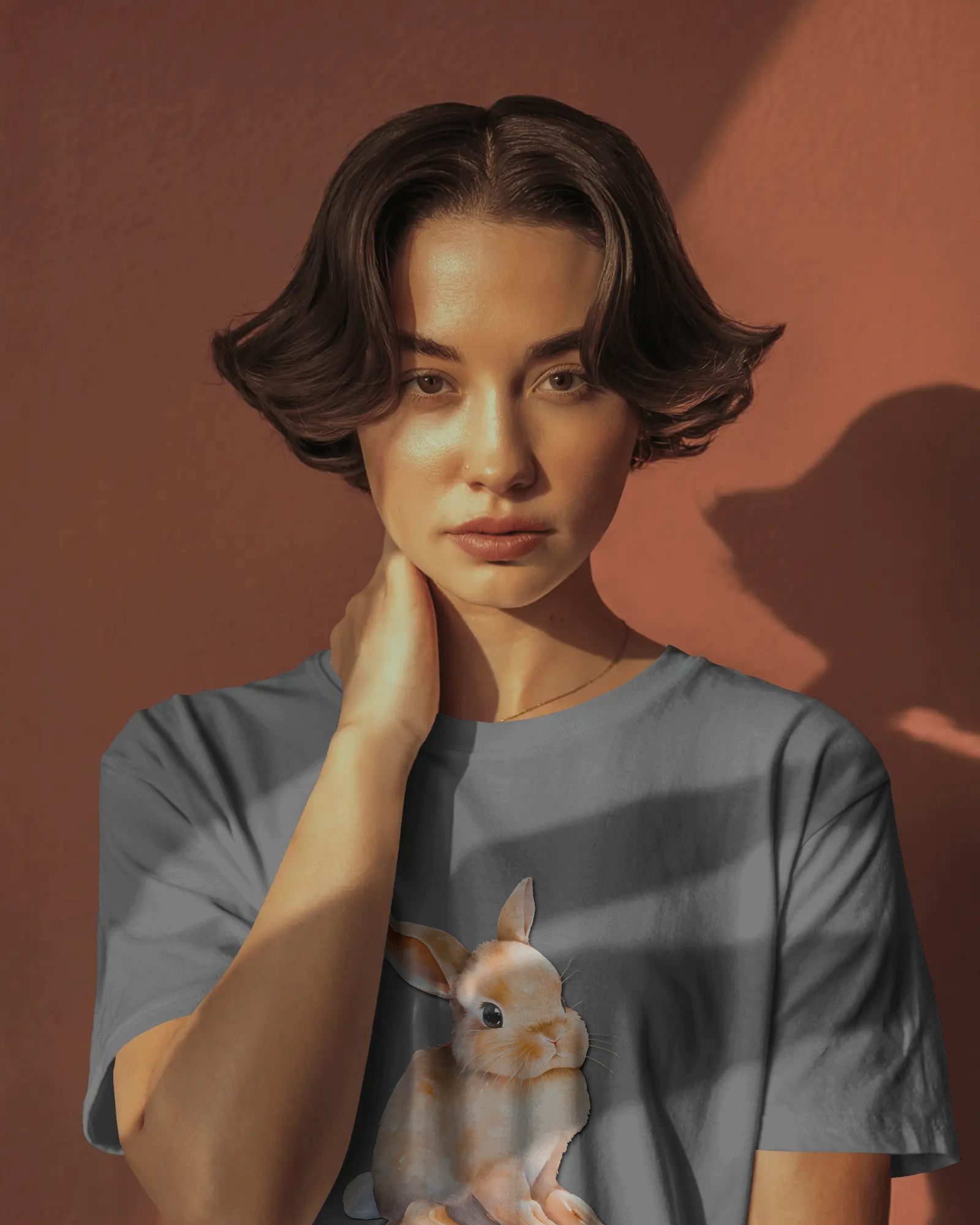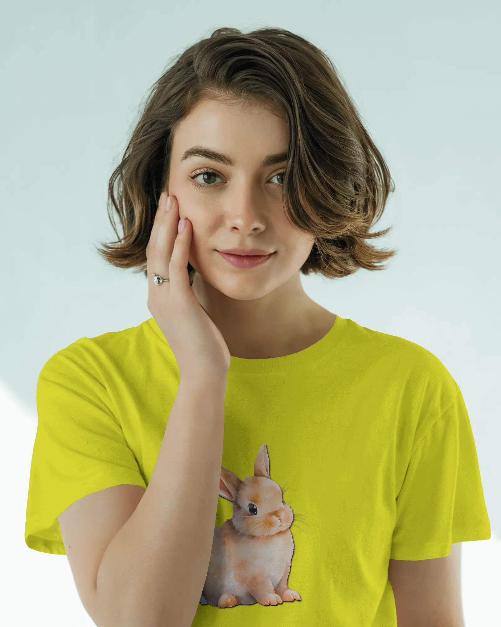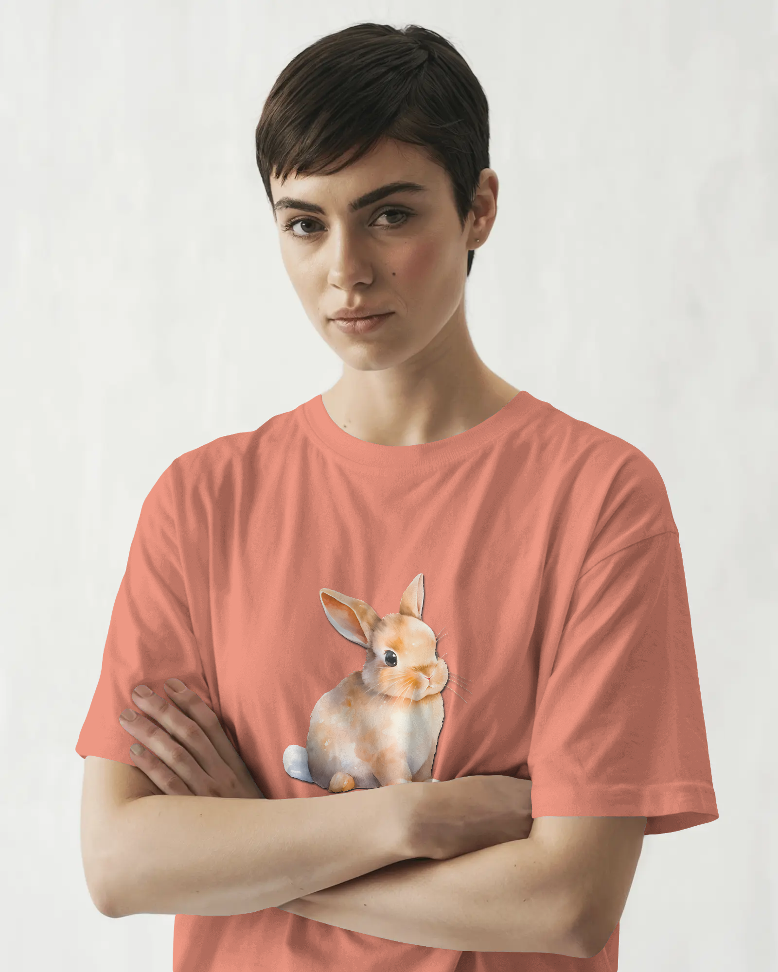 - Keywords: Cute bunny t-shirt, adorable rabbit tee, animal graphic, 100% cotton, regular fit t-shirt, premium 180 GSM, soft cotton, comfortable tee, men's casual, women's casual.