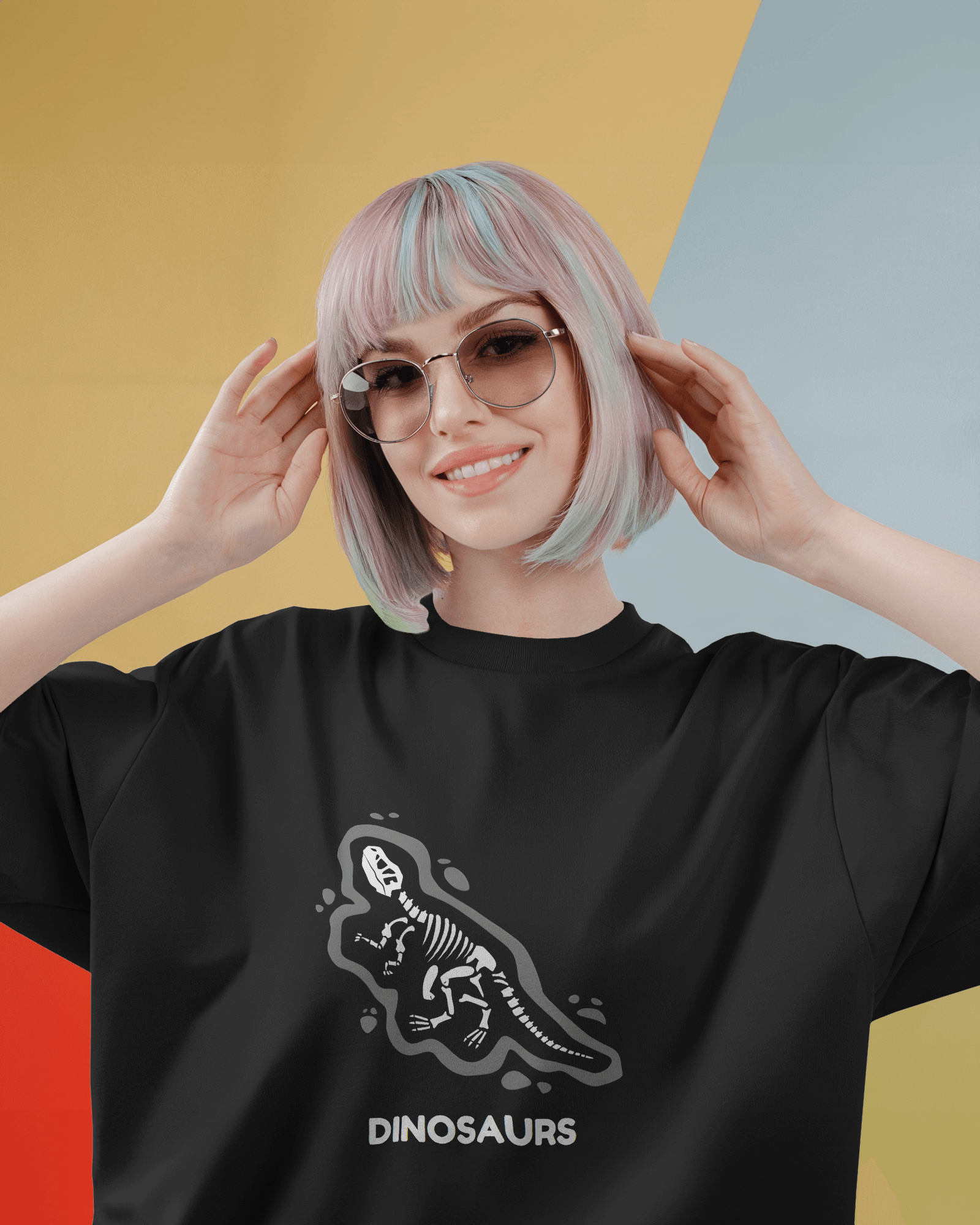 Oversized Fit & Ultra-Premium French Terry Cotton – Crafted for a relaxed, flowy oversized feel, offering buttery soft and breathable fabric! ☁️ ✅ Epic Dinosaur Skeleton Graphic – Featuring a white outline of a dinosaur skeleton, with the word “DINOSAURS” written in bold capital letters below—perfect for fossil lovers! 🦴✨ ✅ Luxury Fabric & Superior QualitySmoother, softer, and more premium than standard tees for an unbeatable feel! 💎 ✅ Effortless Statement Style – Perfect for paleontology fans, casual wear, layering, or embracing a retro Jurassic vibe! 😍 ✅ Wear It or Regret It! – This softest, boldest oversized French terry tee is designed for dinosaur enthusiasts—grab yours now! 🛍️