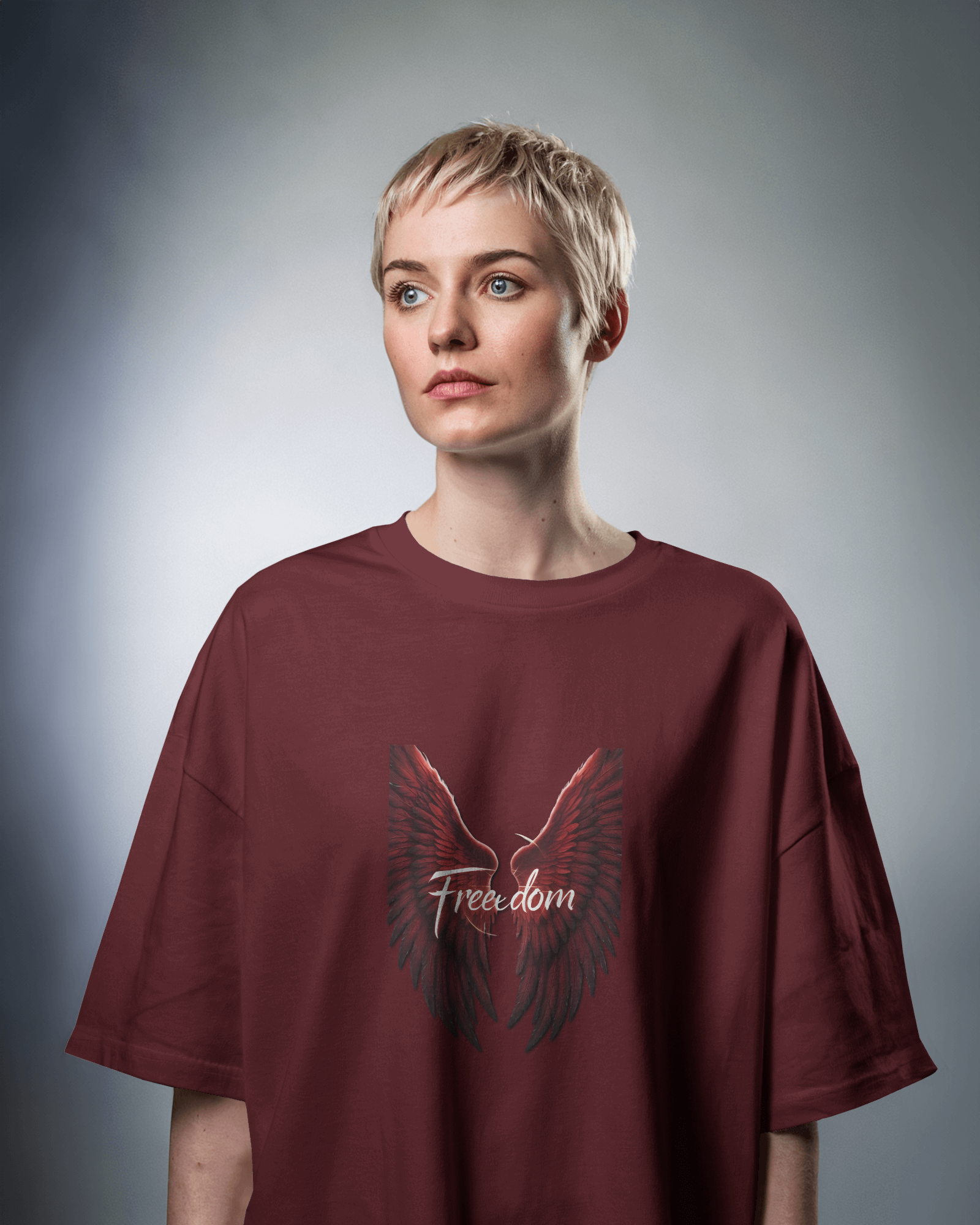 Oversized Fit & Ultra-Premium French Terry Cotton – Crafted for a relaxed, flowy oversized feel, offering buttery soft and breathable fabric! ☁️ ✅ Striking Winged Freedom Design – Featuring detailed red wings with elegant "Freedom" cursive text across the center, symbolizing strength and liberation! ✨🕊️ ✅ Luxury Fabric & Superior QualitySmoother, softer, and more premium than standard tees for an unbeatable feel! 💎 ✅ Effortless Statement Style – Perfect for casual wear, layering, or embracing your fearless, independent spirit! 😍 ✅ Wear It or Regret It! – This softest, most inspiring oversized French terry tee is designed for visionaries—grab yours now! 🛍️