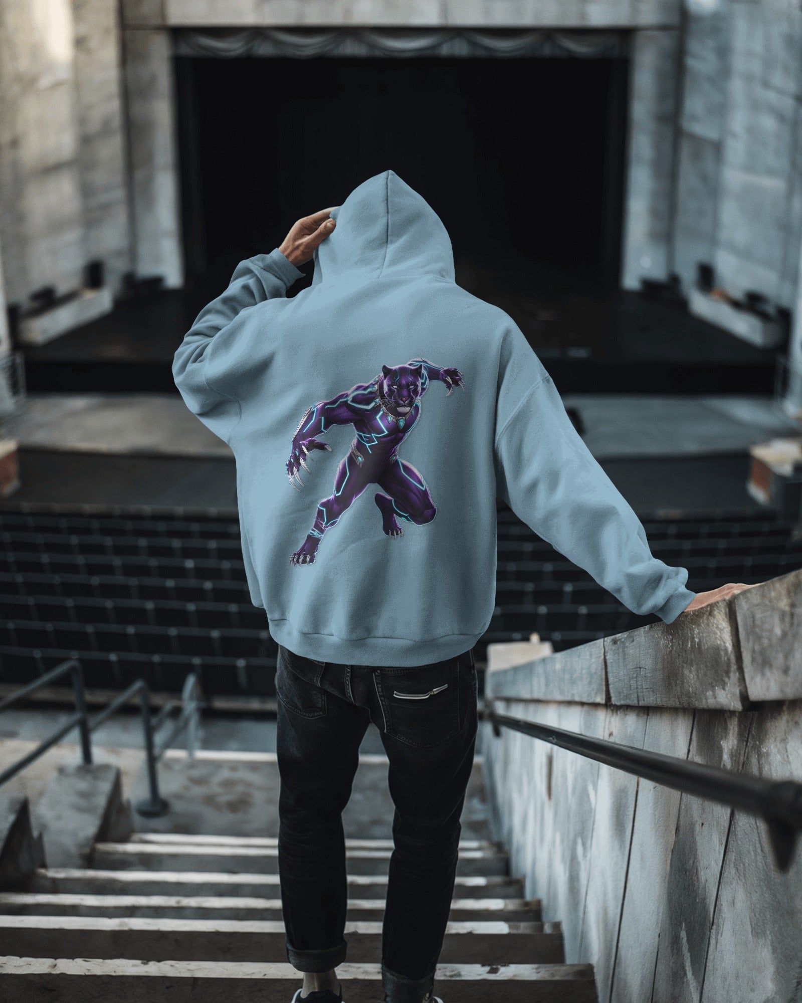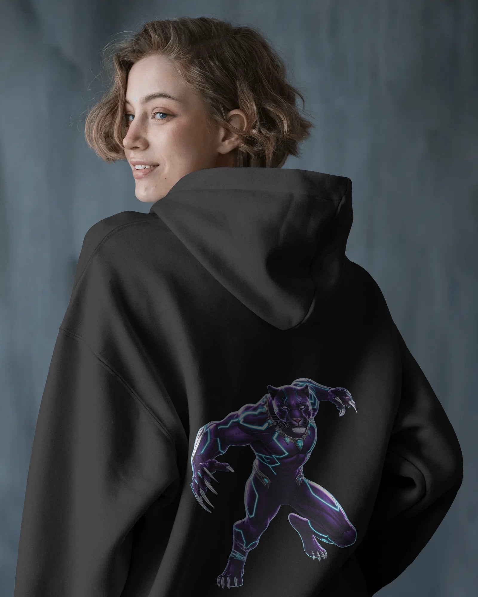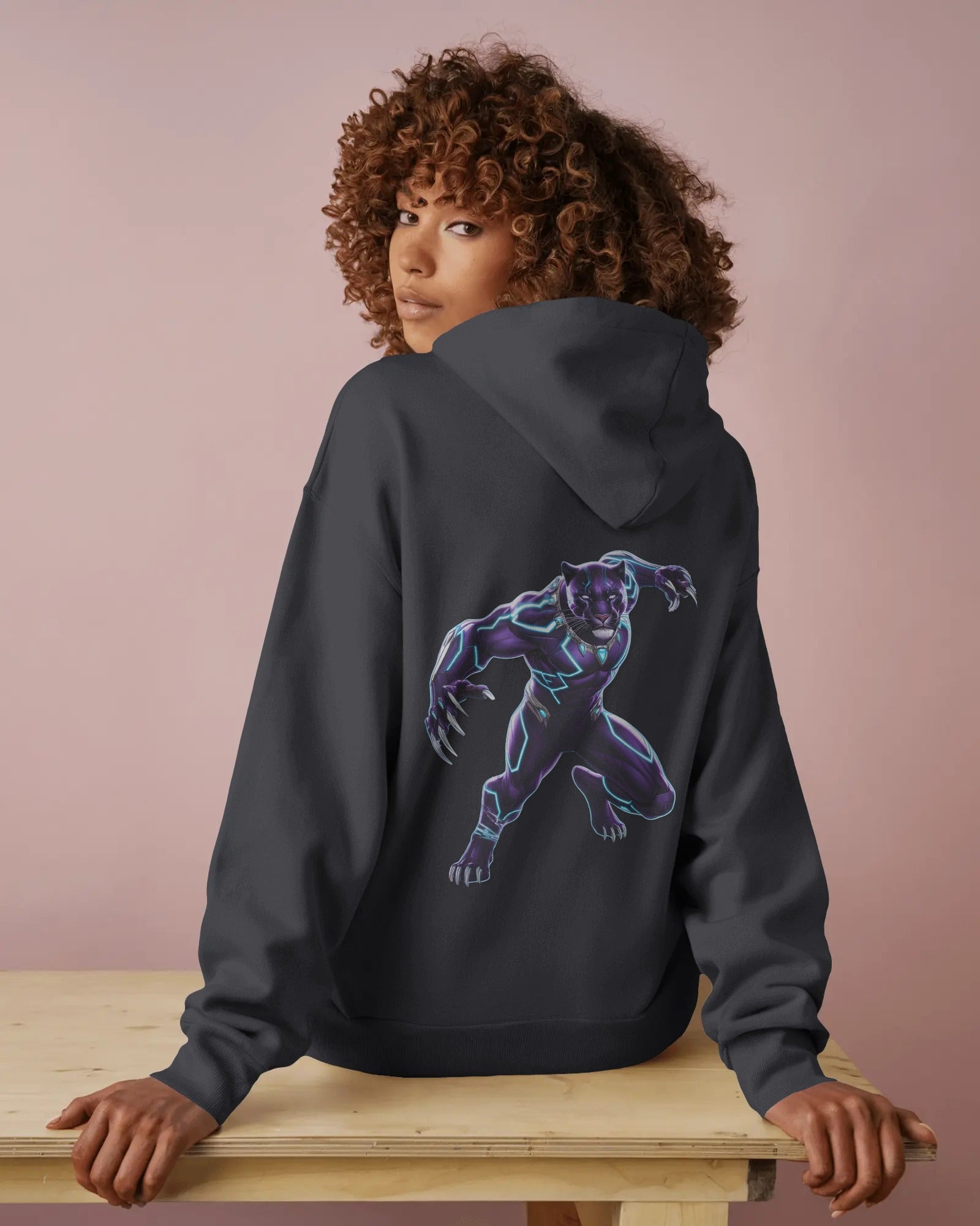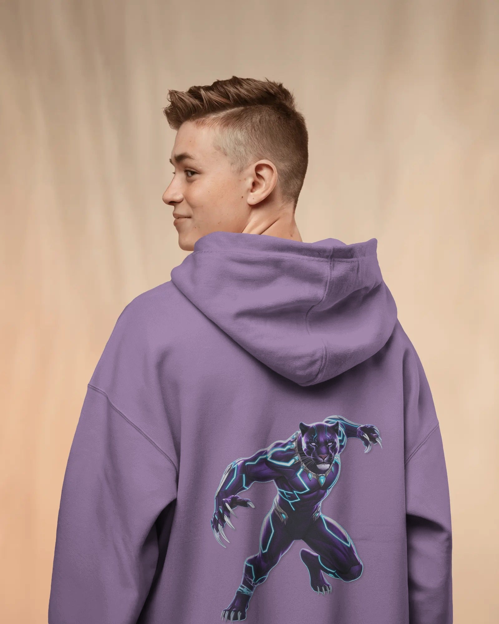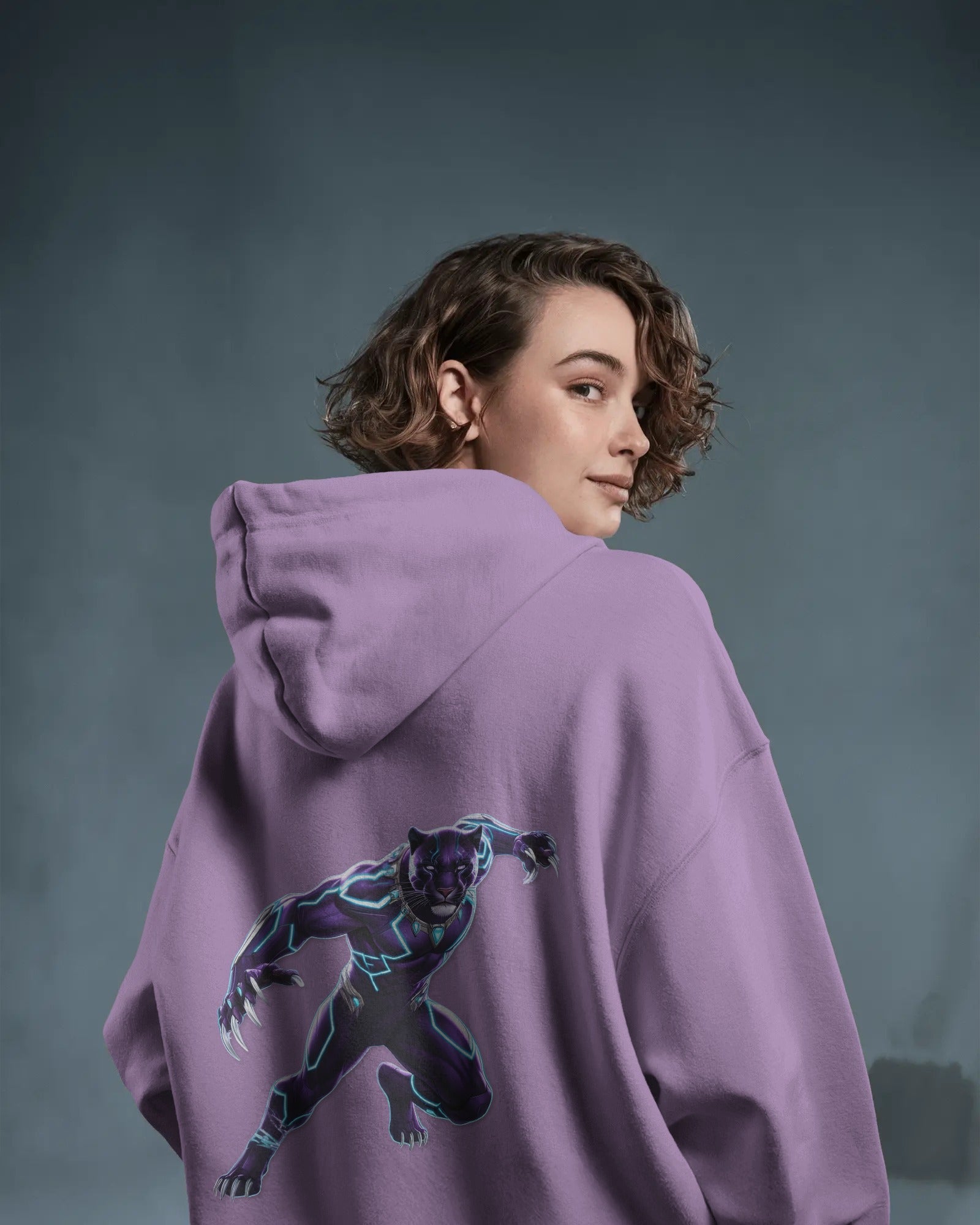 ✅ Dynamic Black Panther Graphic – Featuring a bold, action-packed pose of Marvel’s Black Panther, highlighted with neon blue and purple glow accents for a fierce look! 🦍💜