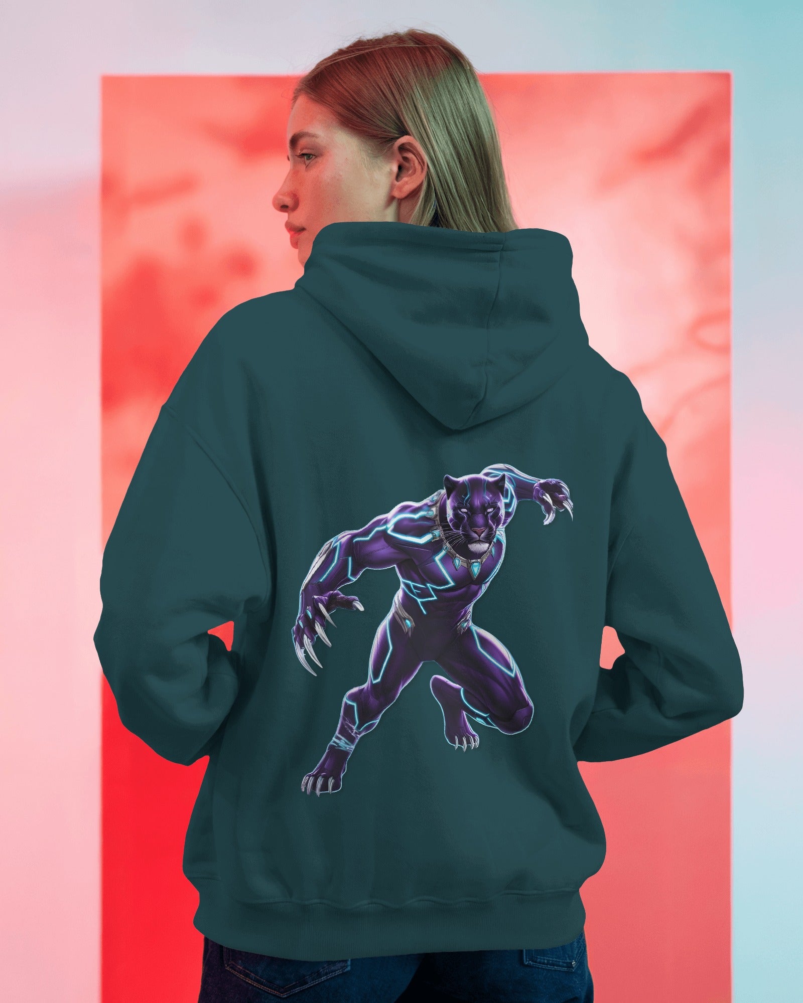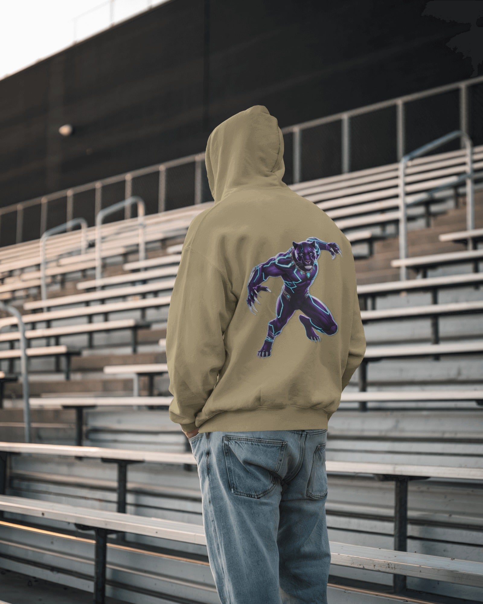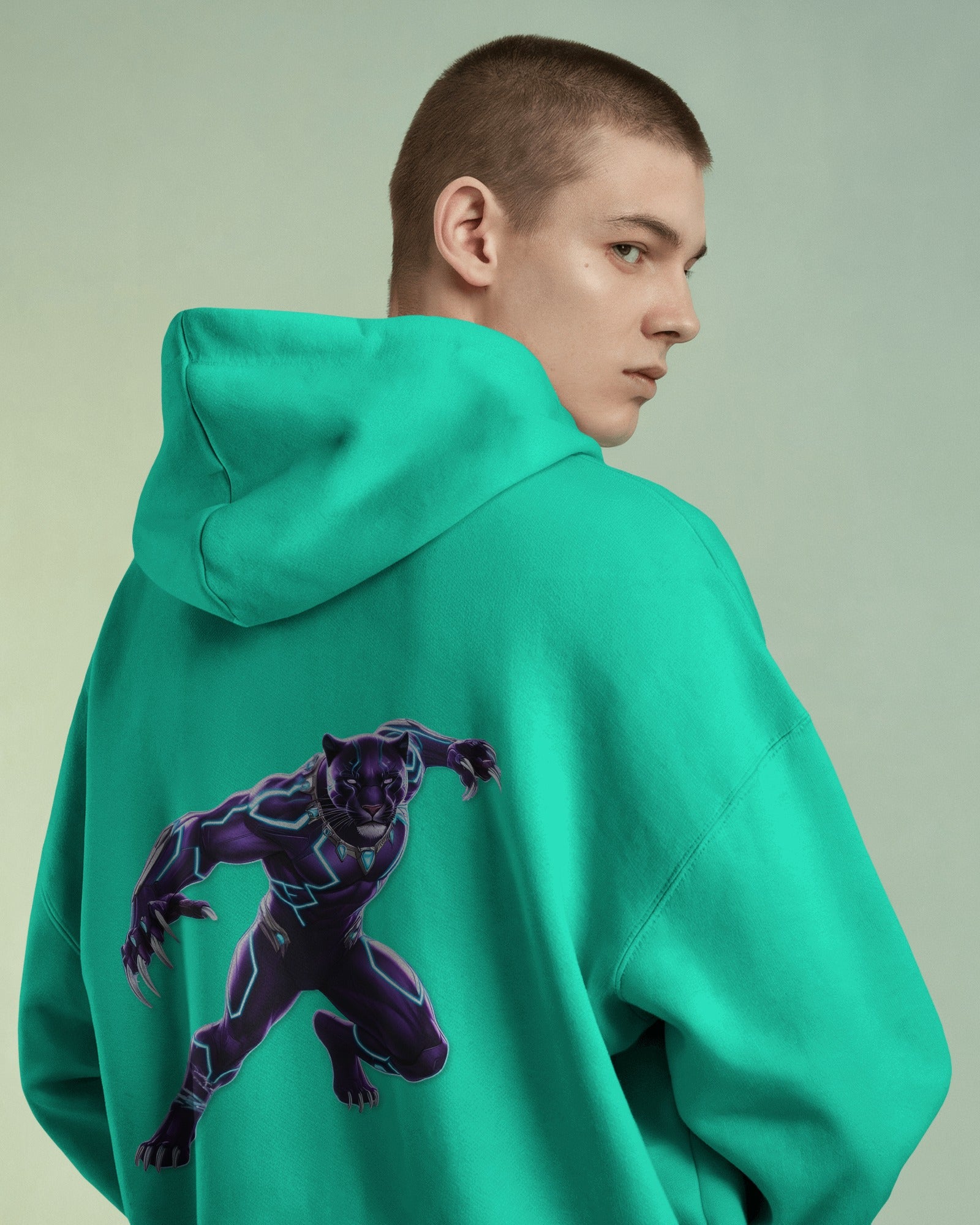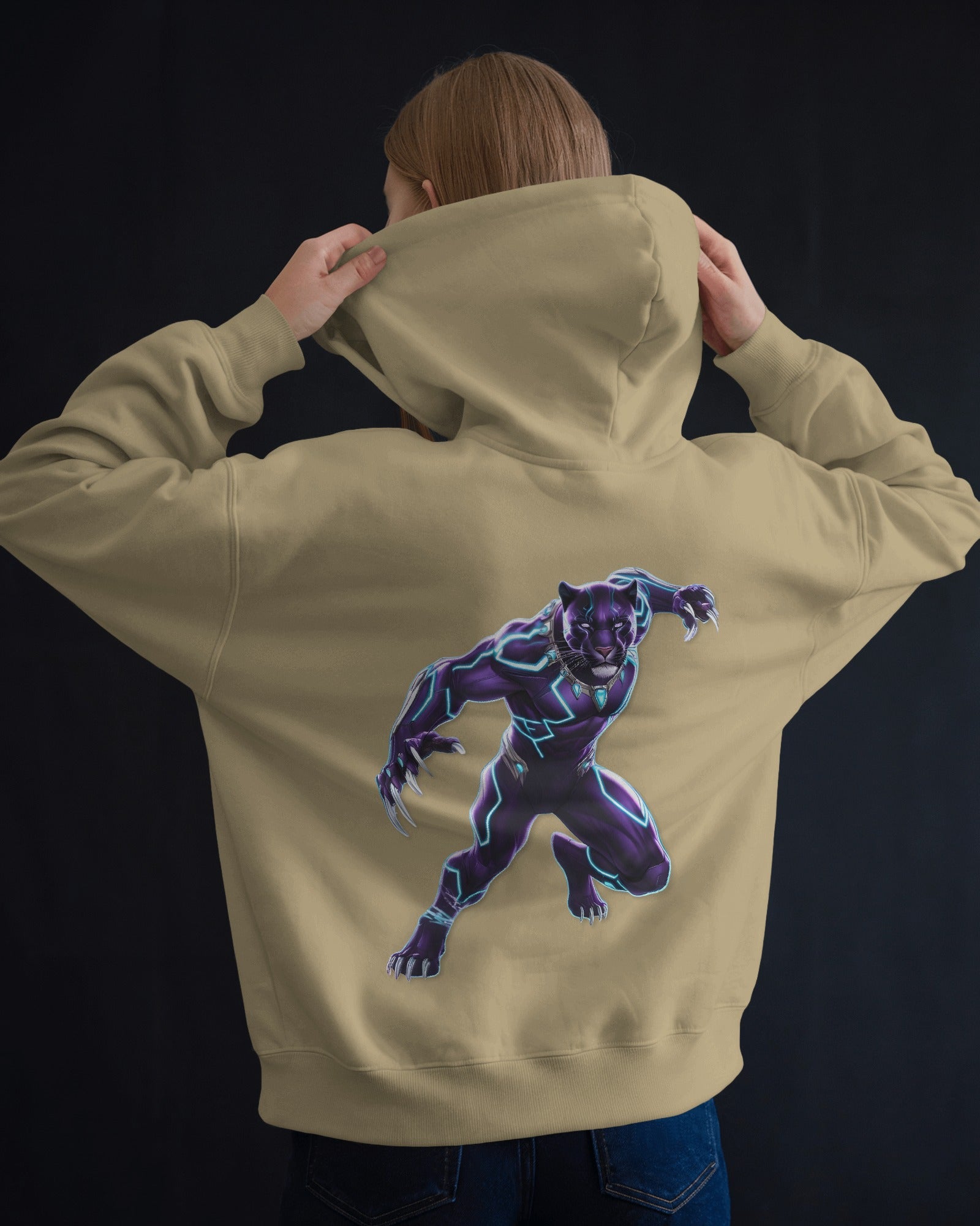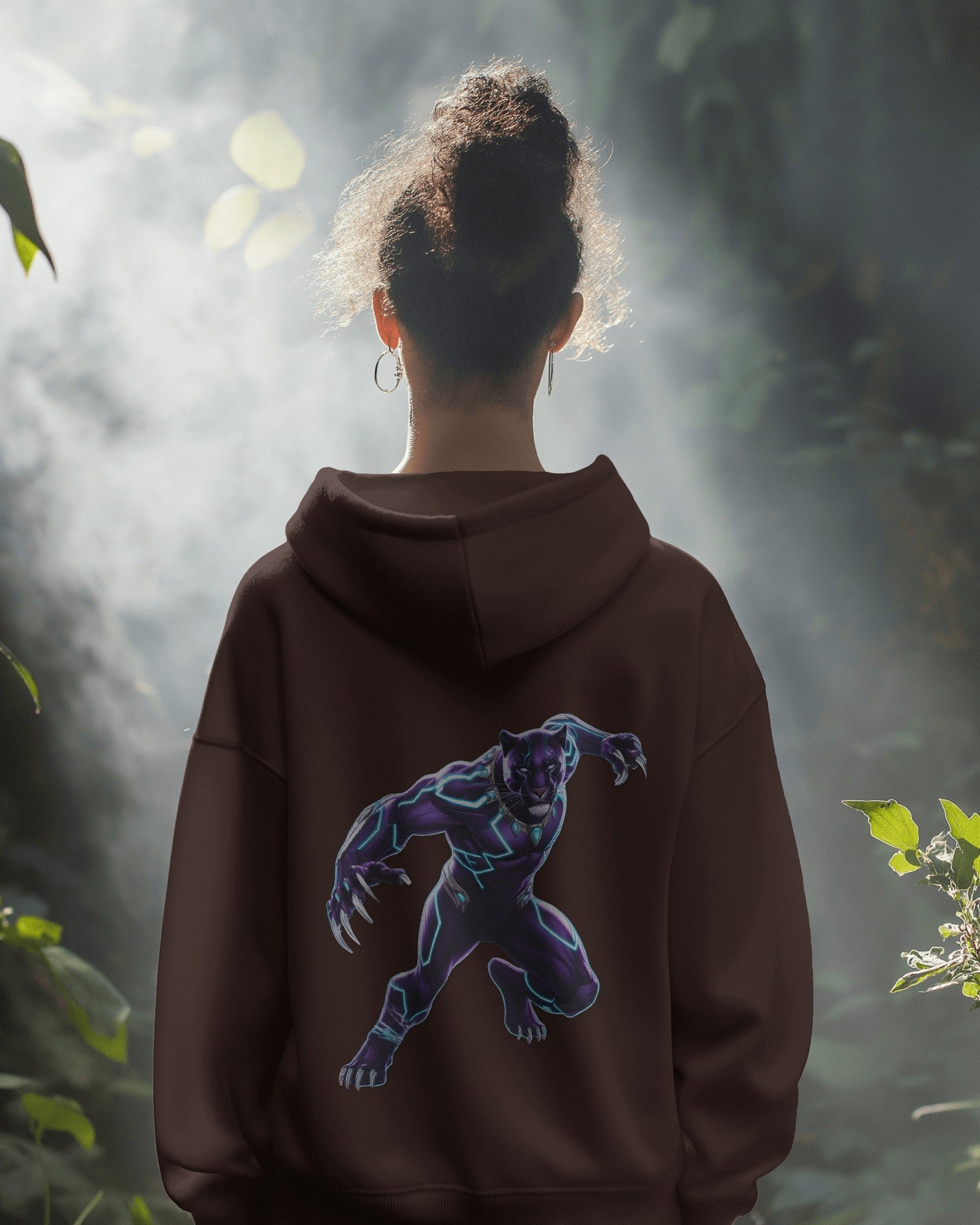 ✅ Dynamic Black Panther Graphic – Featuring a bold, action-packed pose of Marvel’s Black Panther, highlighted with neon blue and purple glow accents for a fierce look! 🦍💜