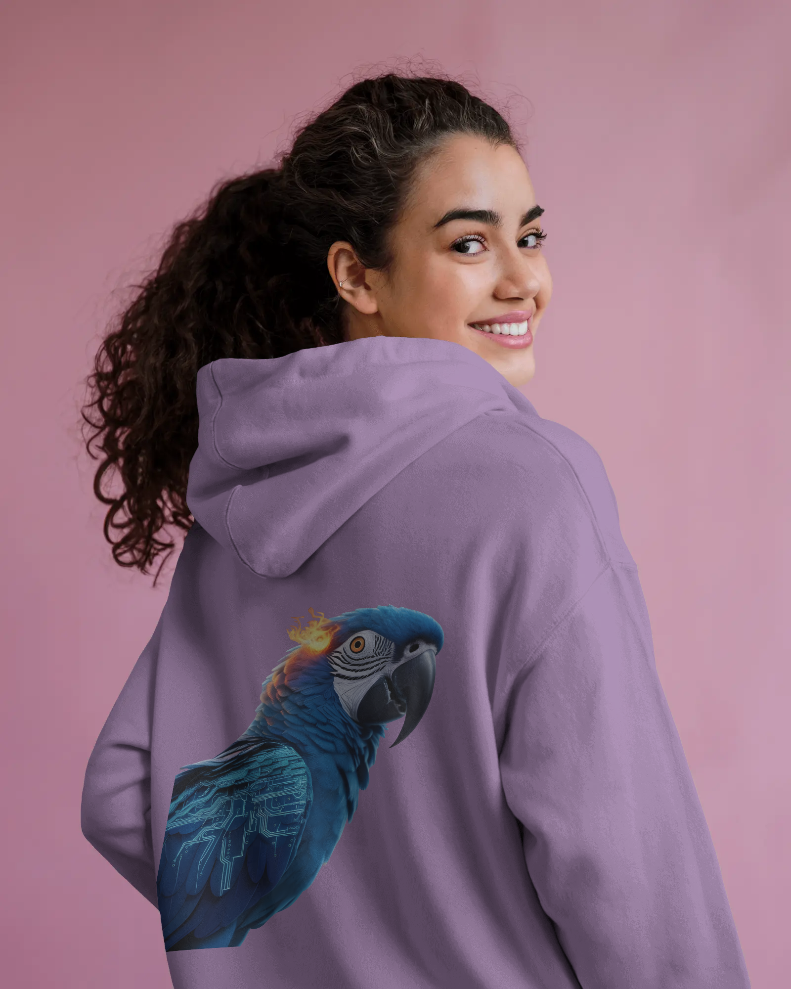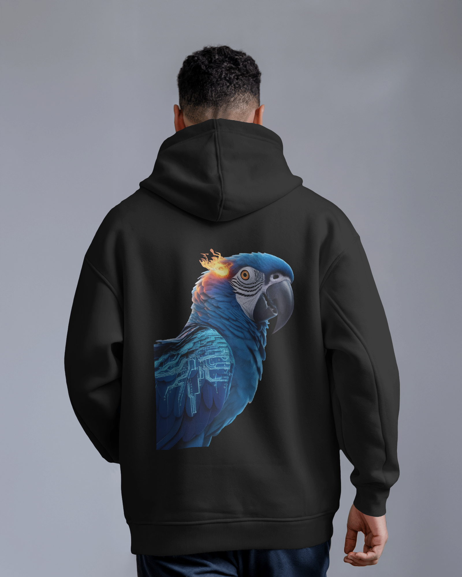 This description highlights oversized fleece fabric, premium softness, and the artistic blue parrot theme of your hoodie! Let me know if you’d like any refinements. 🌟