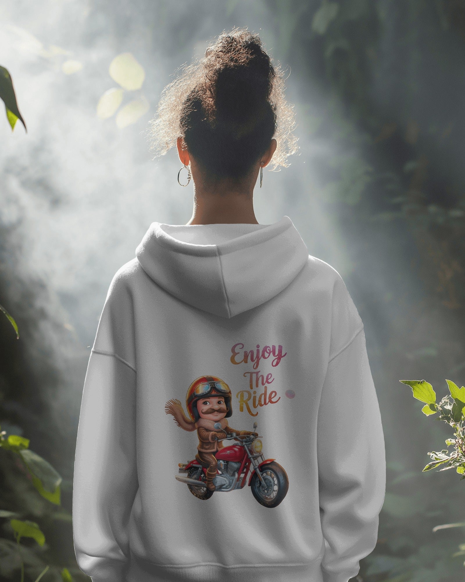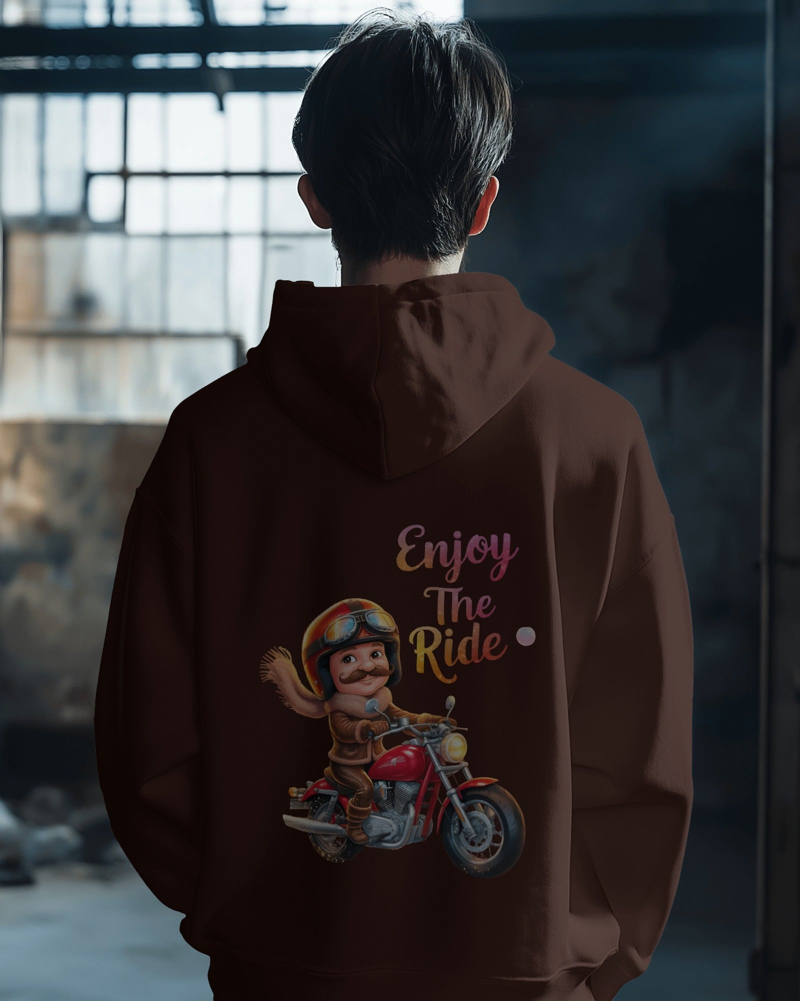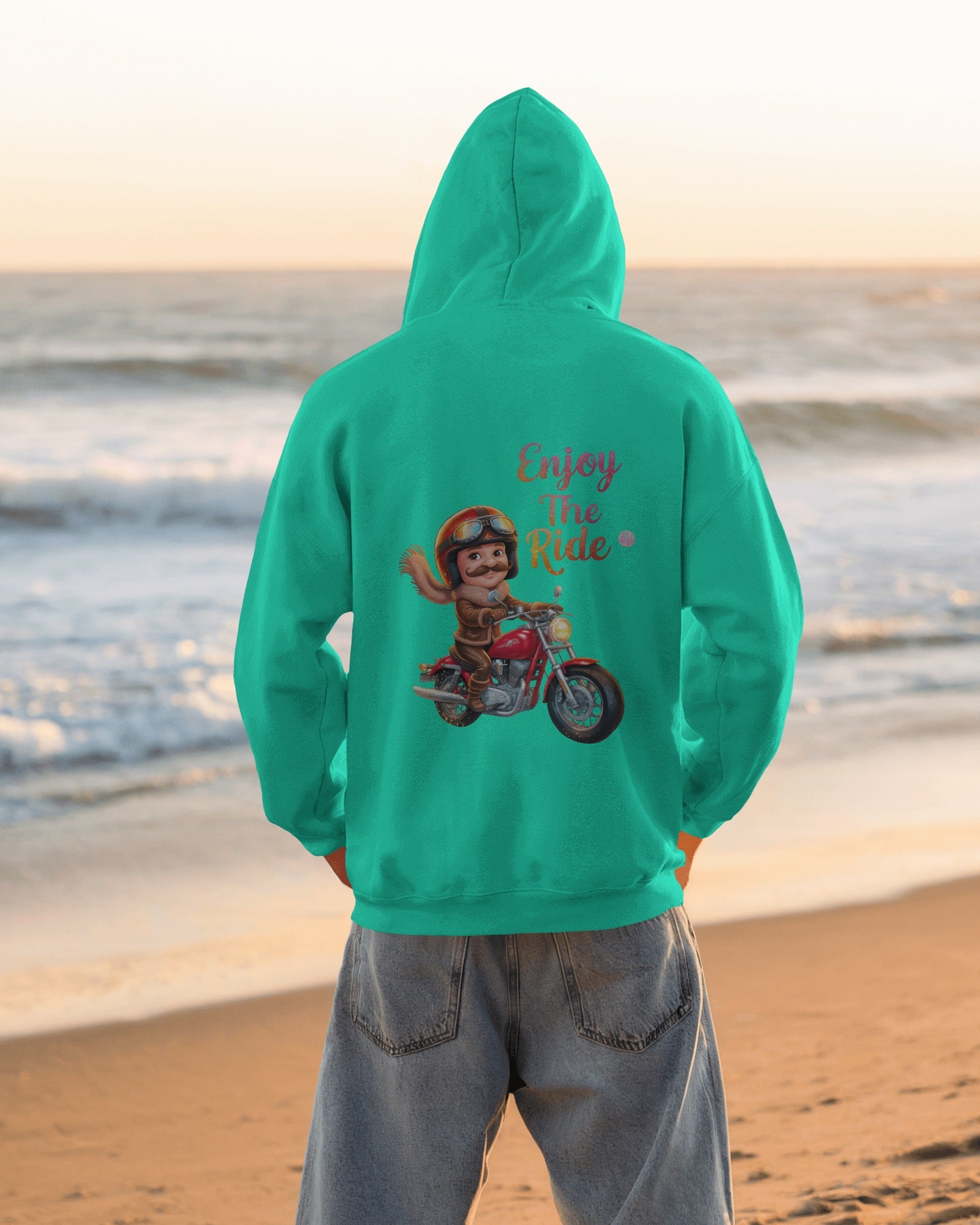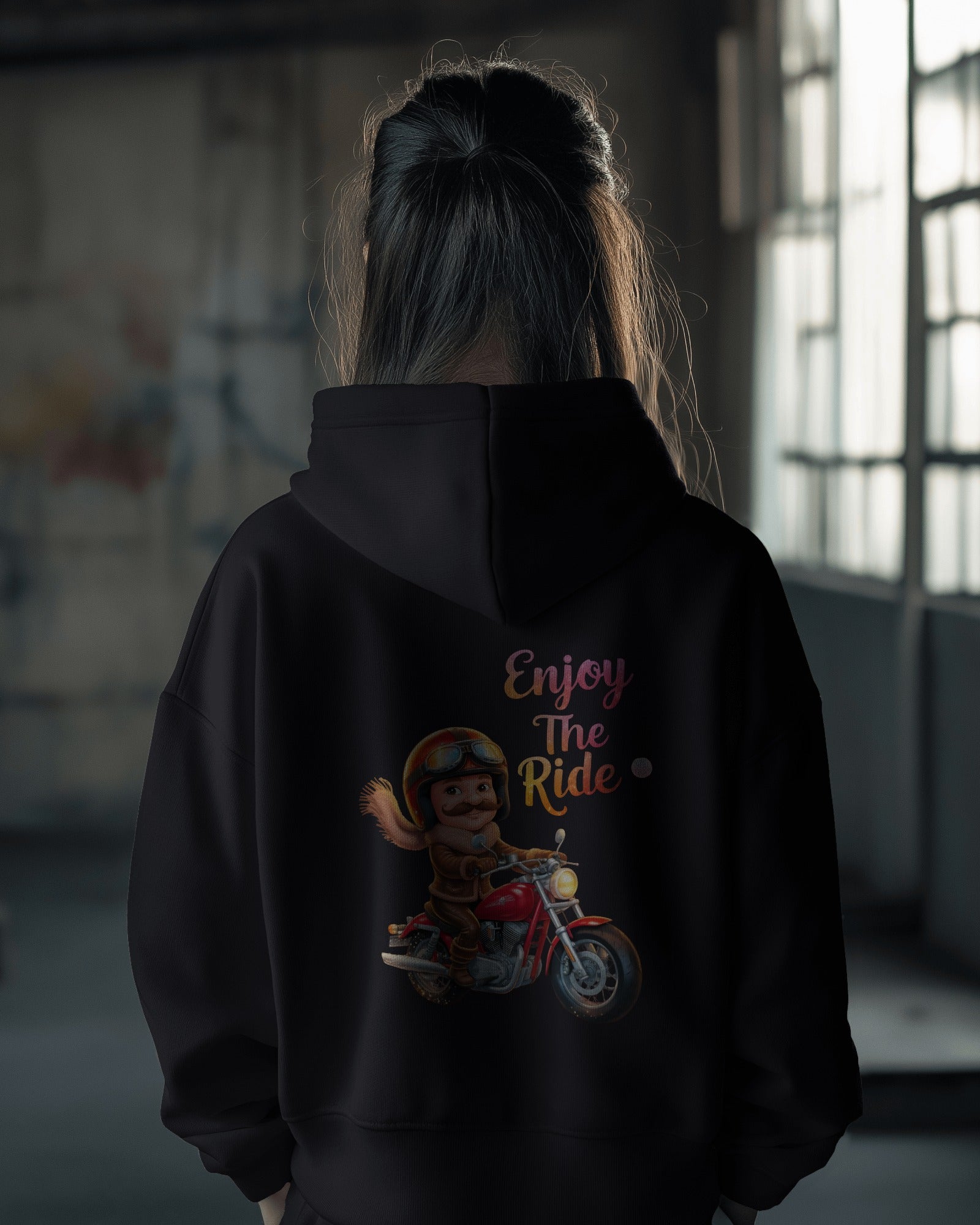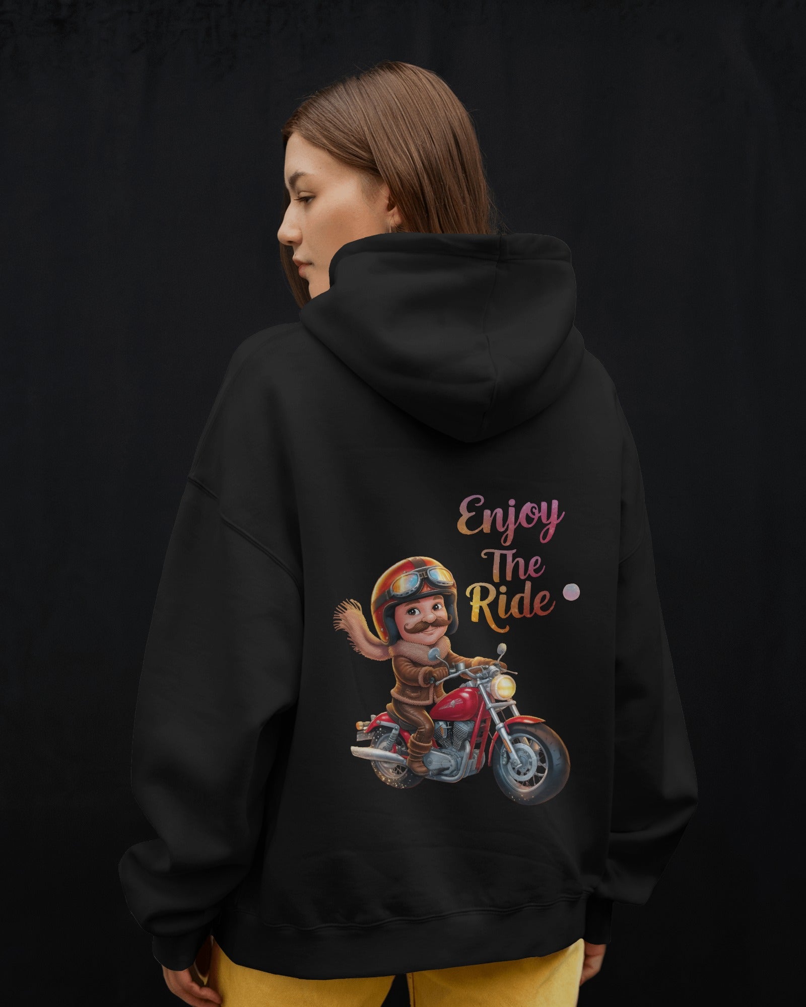 ✅ Ride & Adventure Graphic – Featuring a cartoon-style character riding a red motorcycle, with “Enjoy The Ride” displayed above in a bold, playful font—perfect for free spirits and thrill seekers! 🌟🏍️