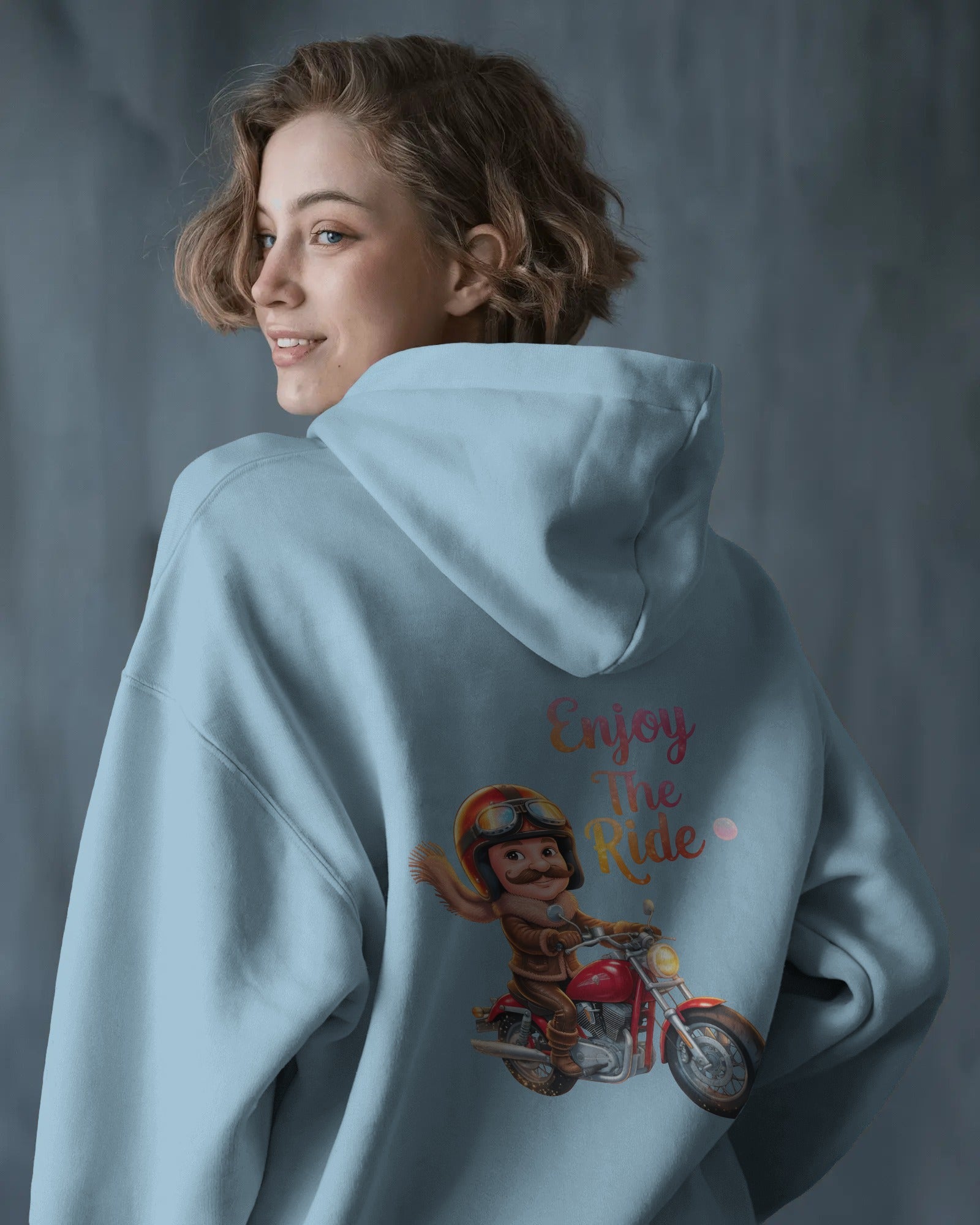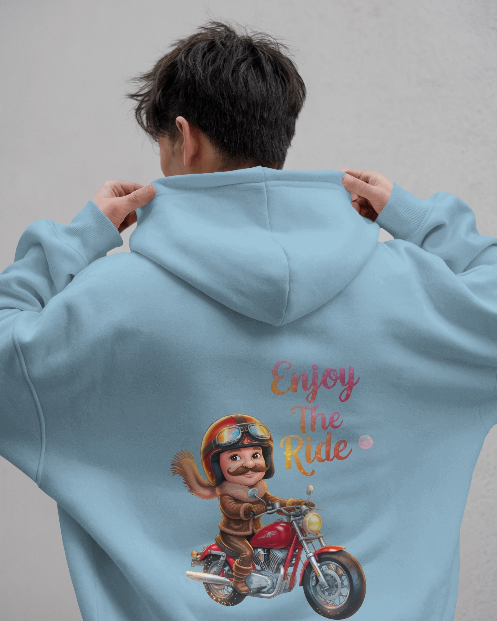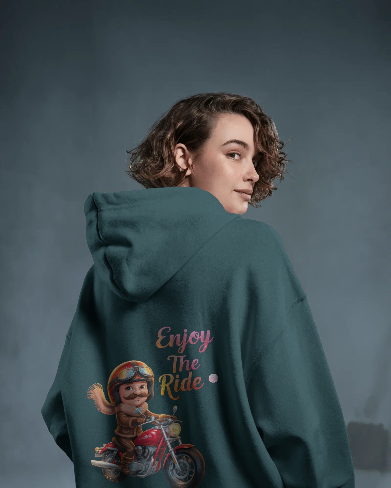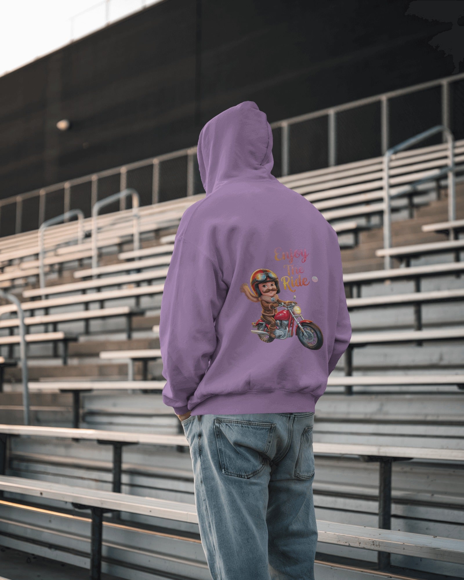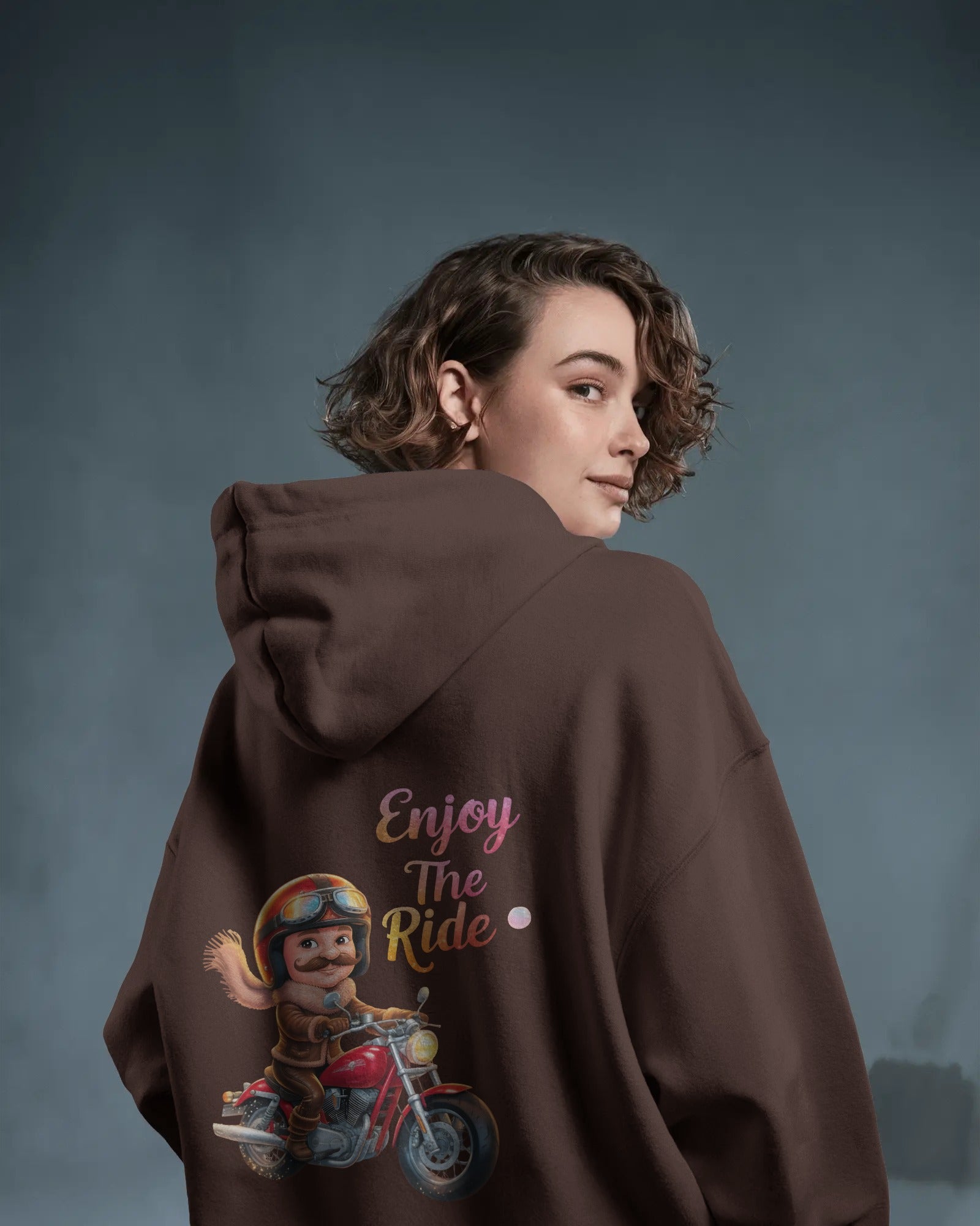 ✅ Ride & Adventure Graphic – Featuring a cartoon-style character riding a red motorcycle, with “Enjoy The Ride” displayed above in a bold, playful font—perfect for free spirits and thrill seekers! 🌟🏍️