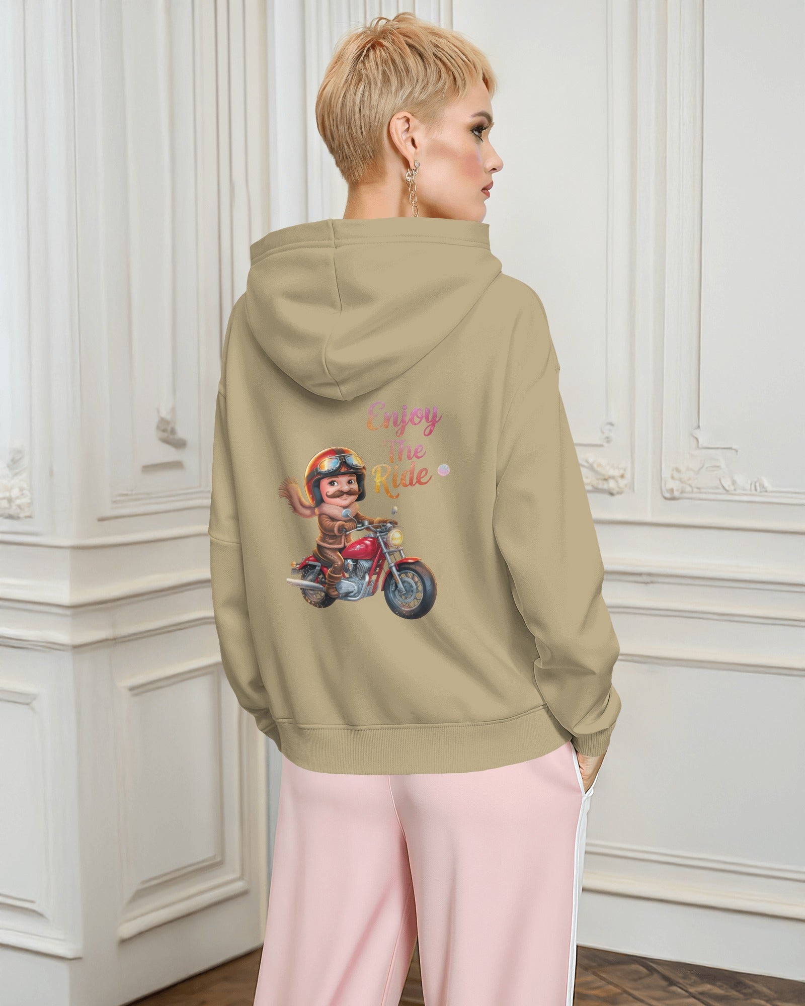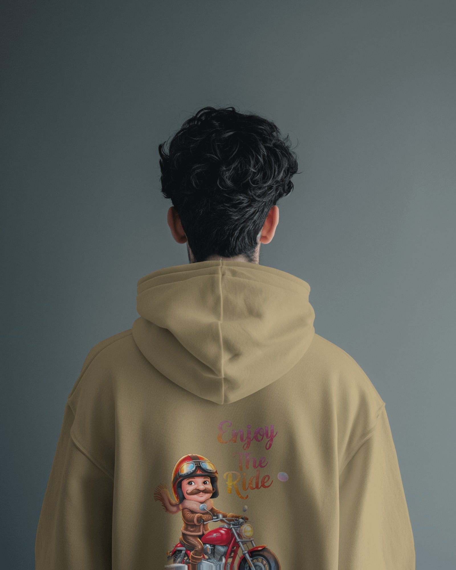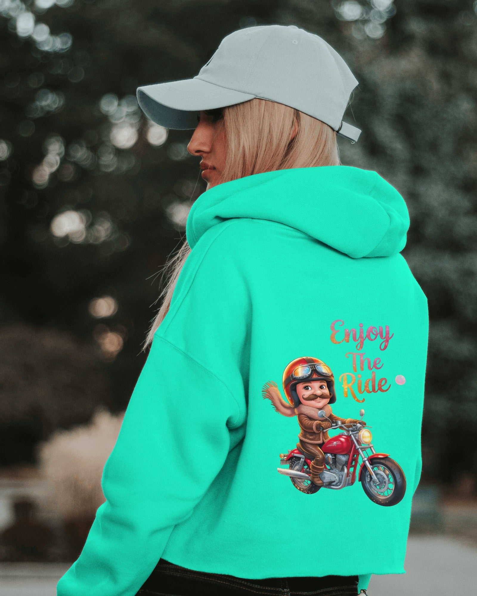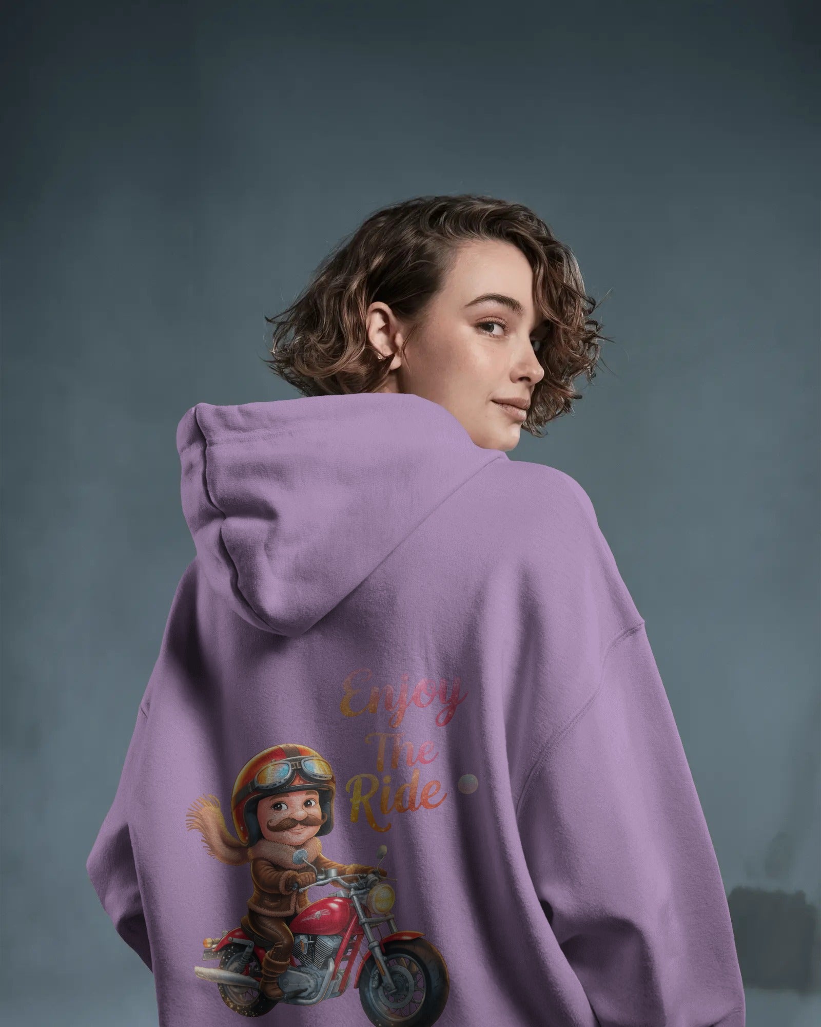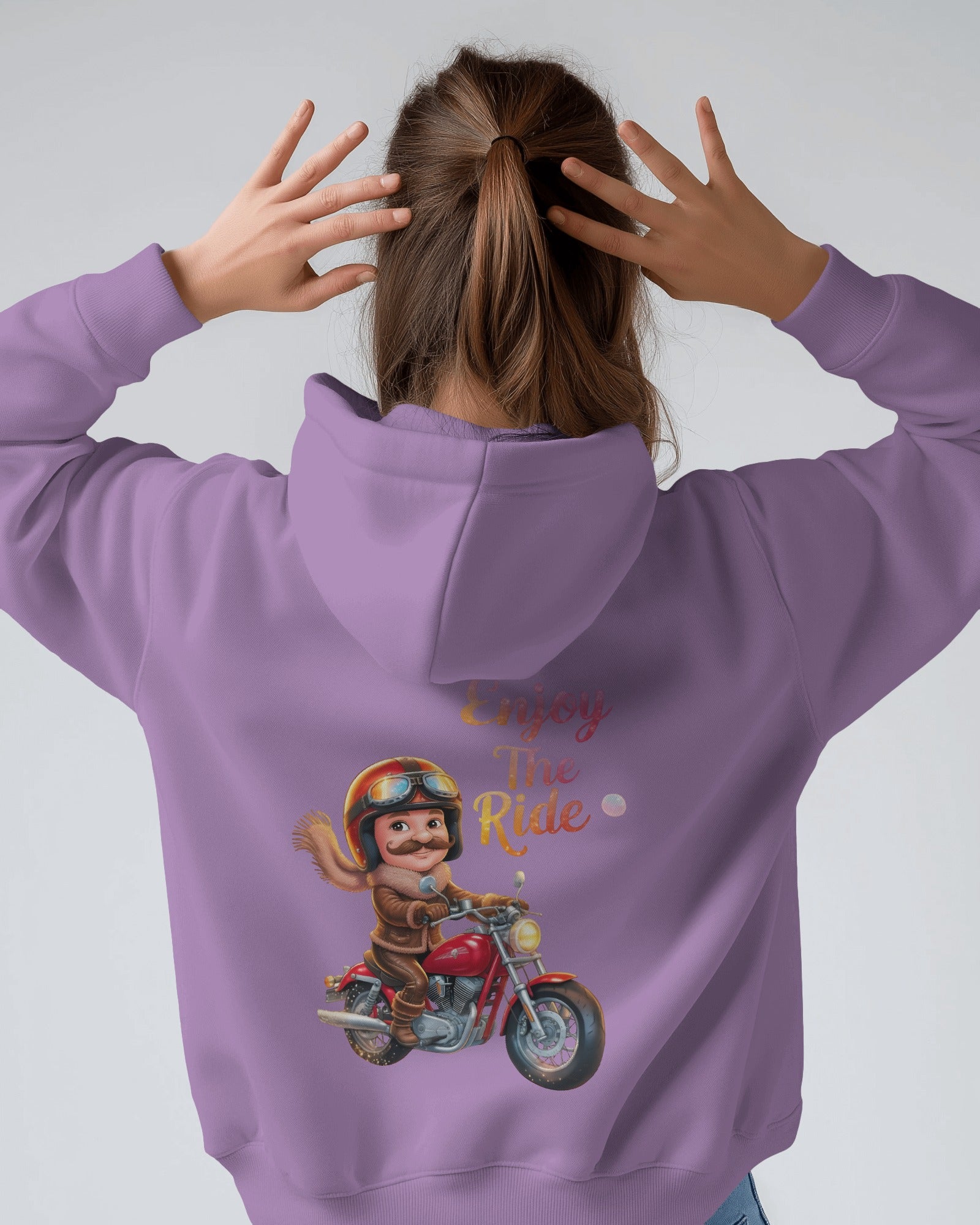 ✅ Ride & Adventure Graphic – Featuring a cartoon-style character riding a red motorcycle, with “Enjoy The Ride” displayed above in a bold, playful font—perfect for free spirits and thrill seekers! 🌟🏍️