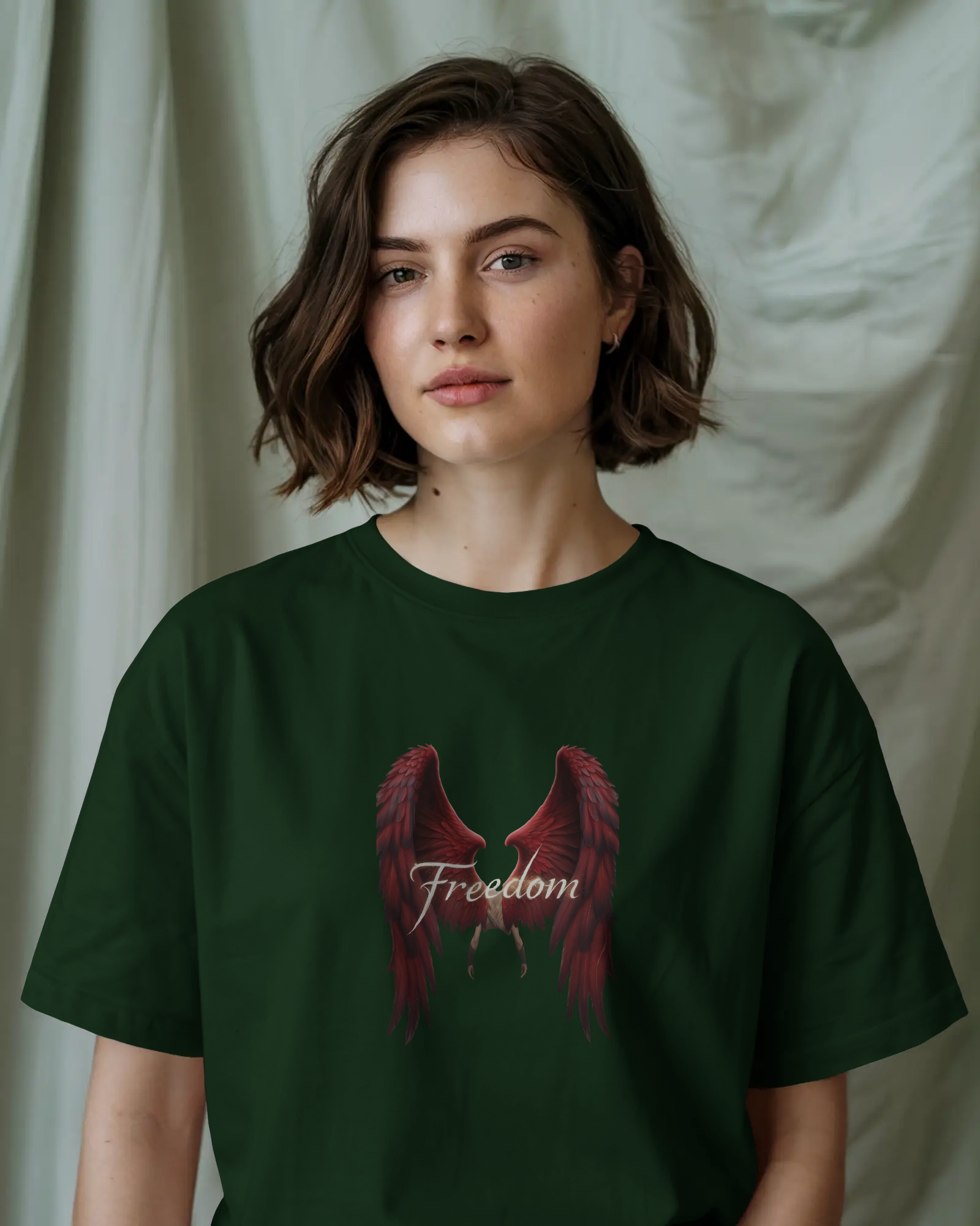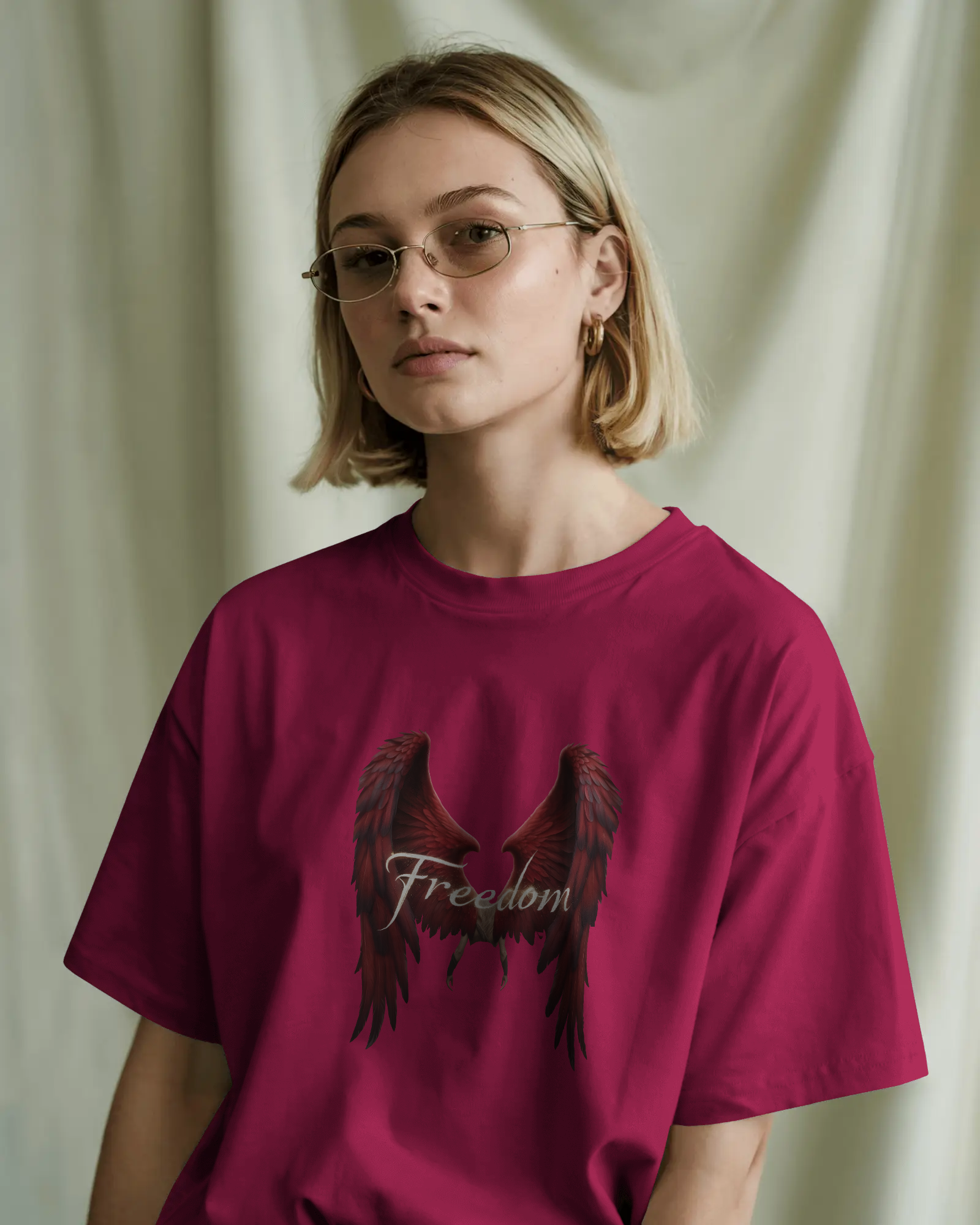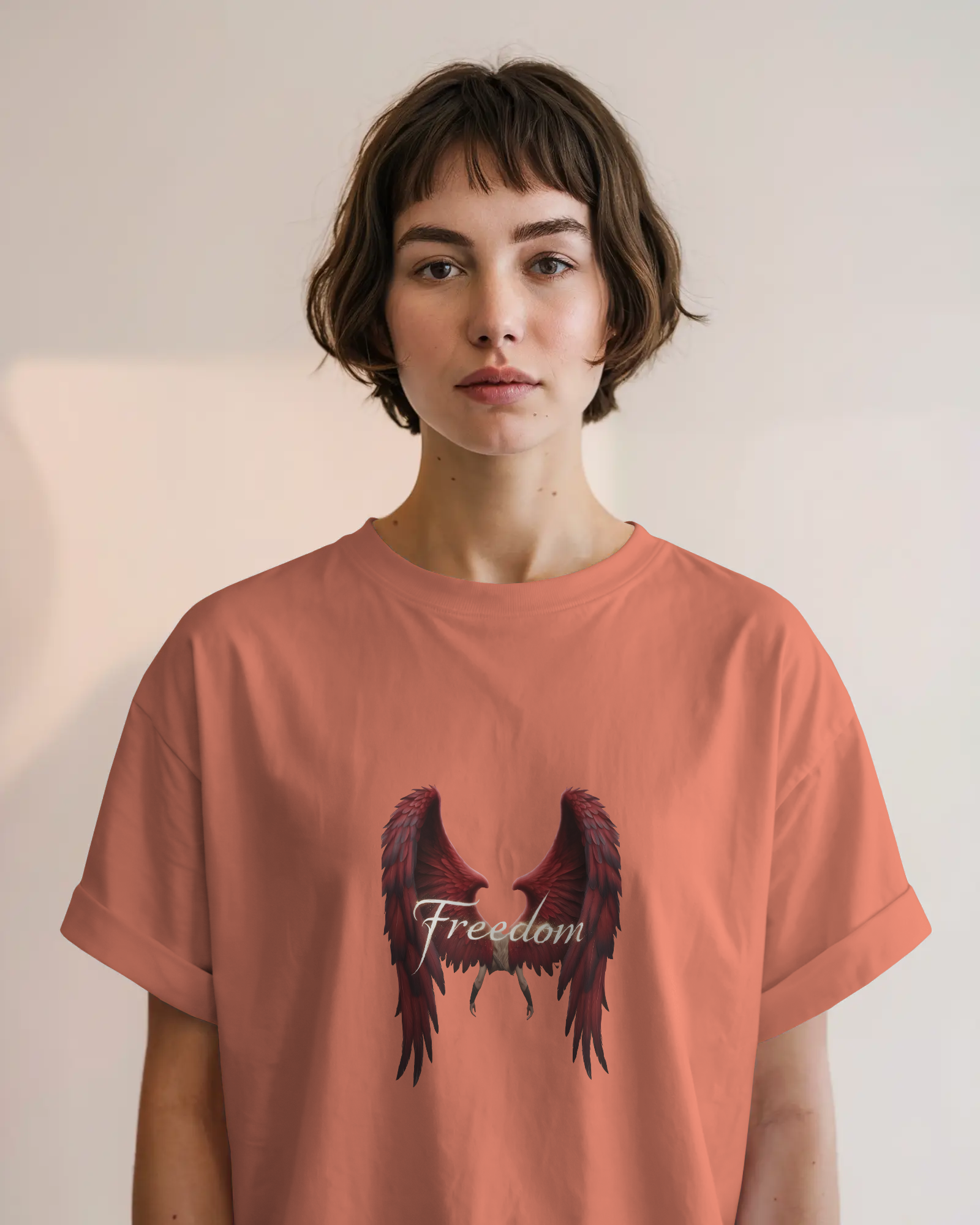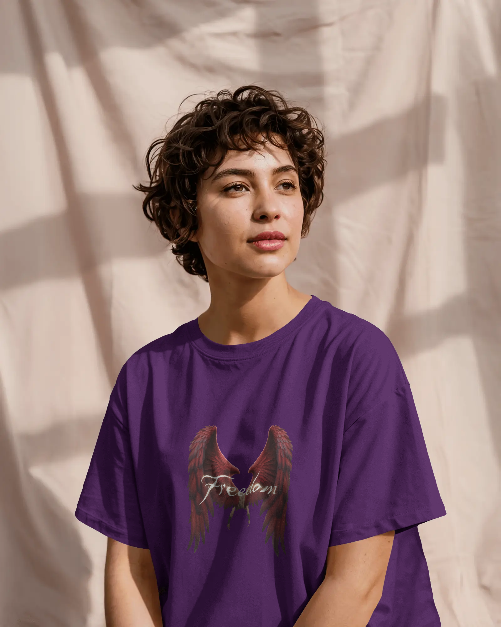 This description highlights lightweight cotton fabric, casual fit, and the empowering winged freedom theme of your T-shirt! Let me know if you’d like any refinements. 🌟