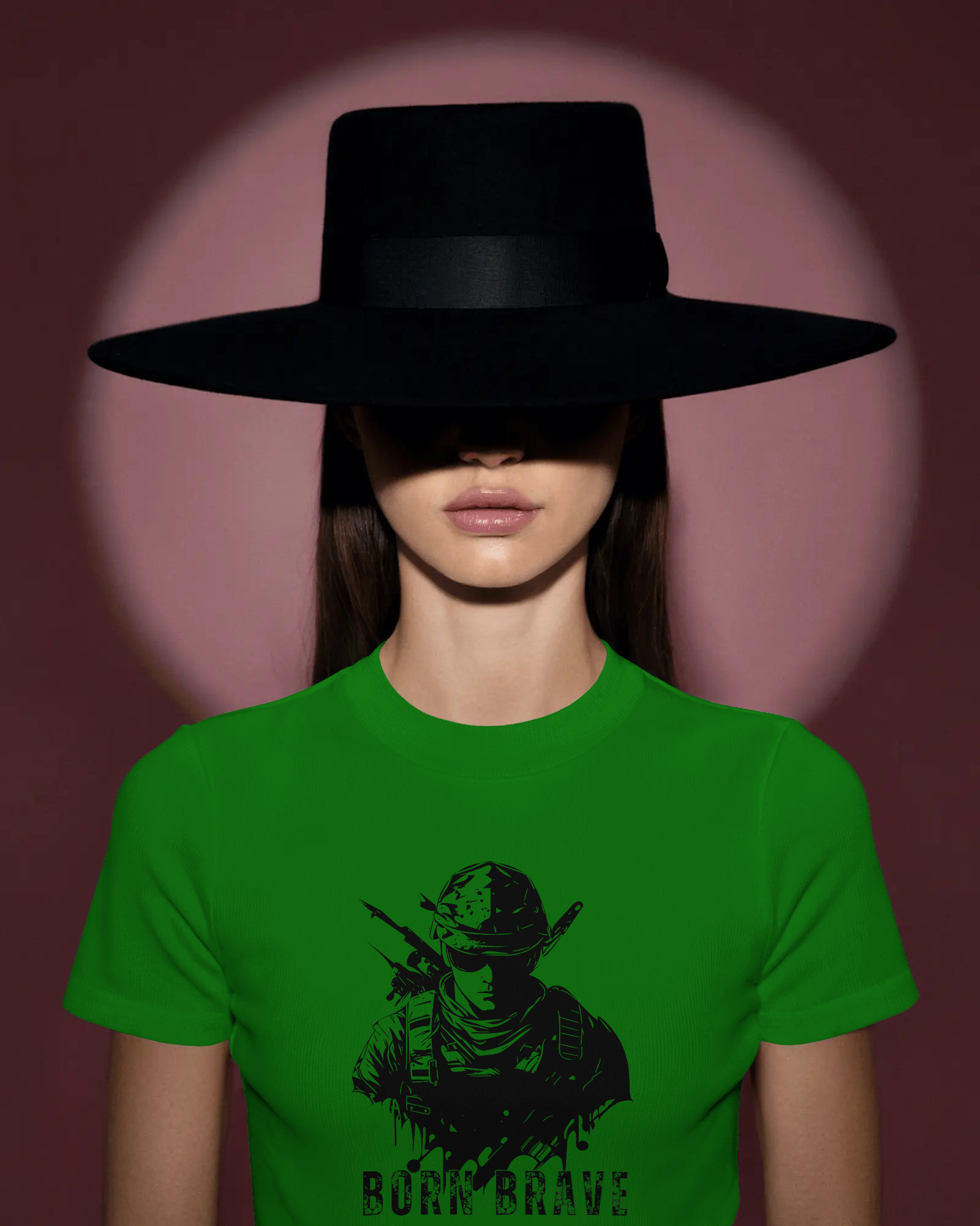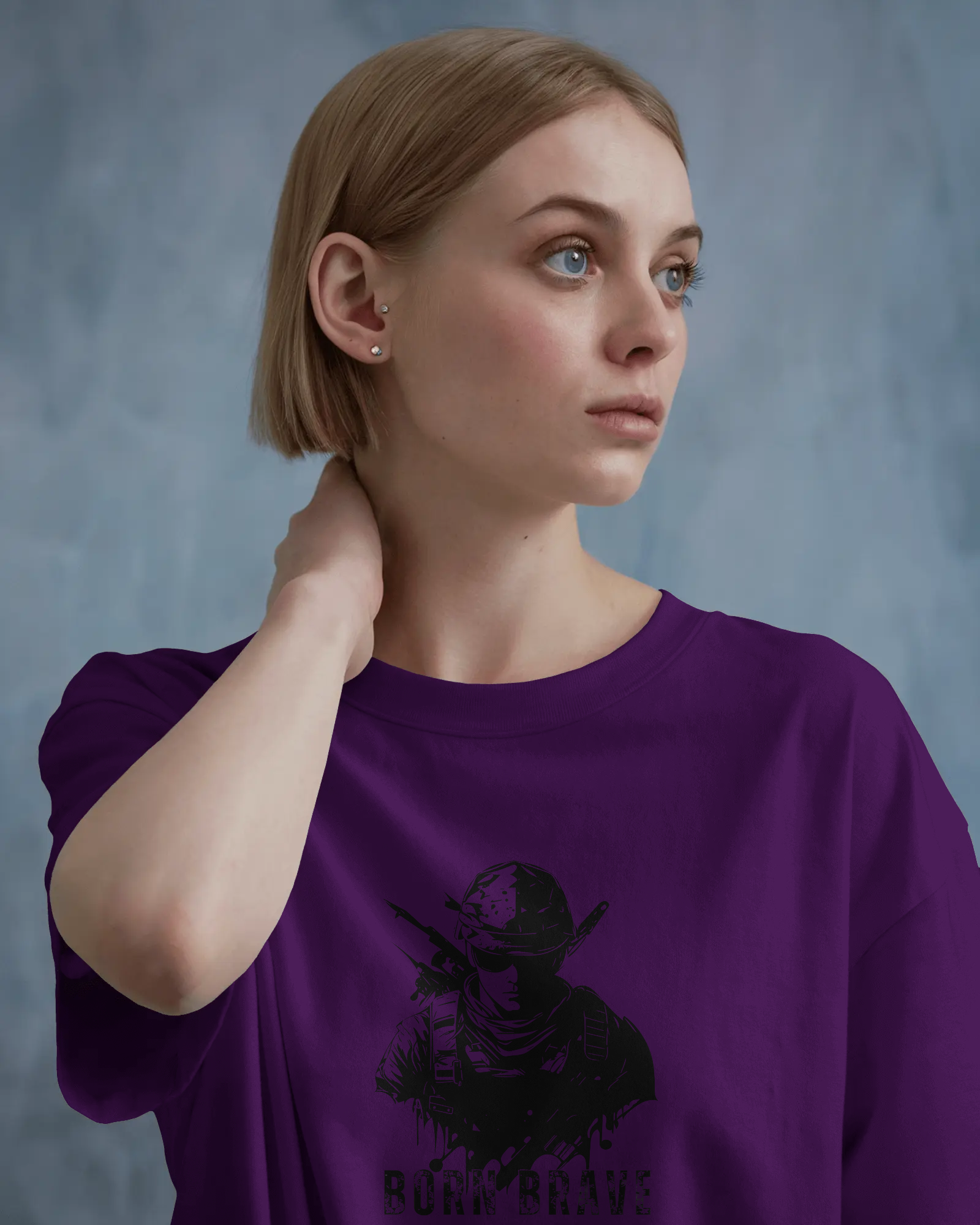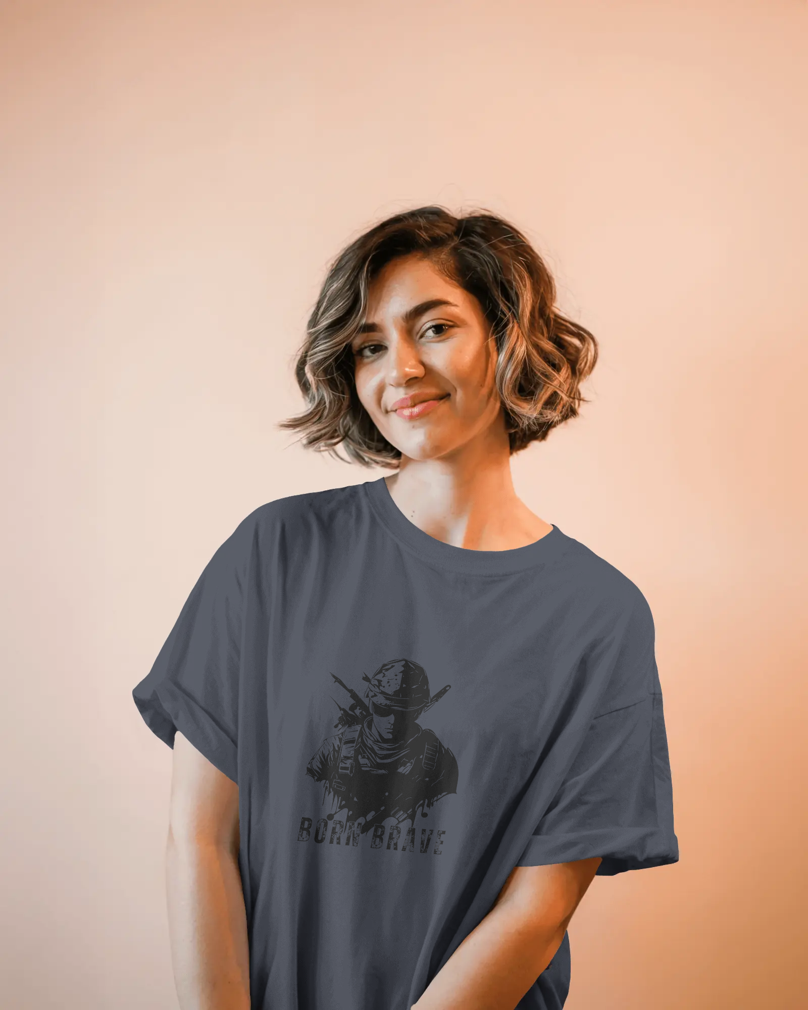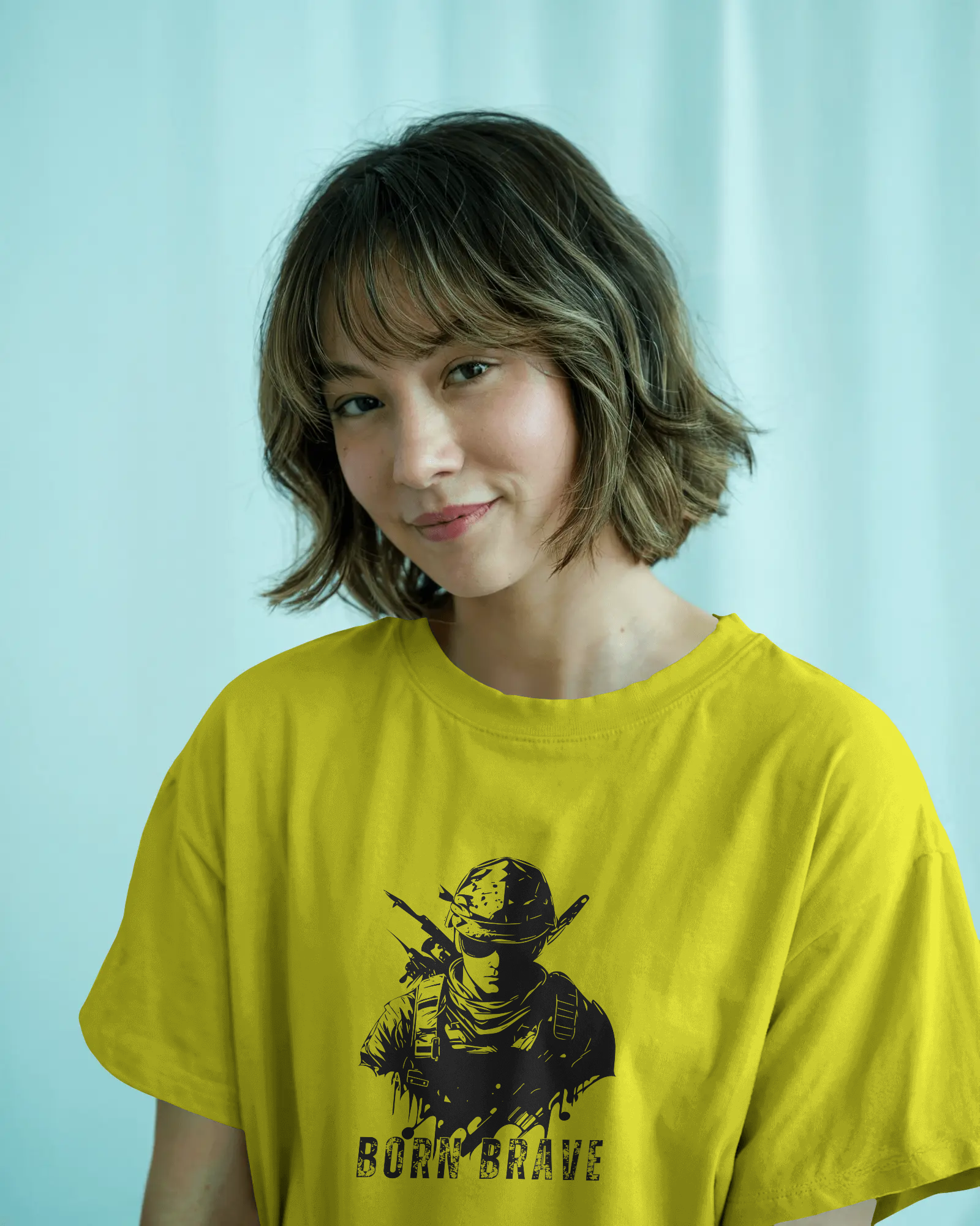 The compelling 'Born Brave' graphic, prominently featured on the chest, showcases a determined, soldier-like figure, embodying readiness and resilience, underscored by the powerful 'BORN BRAVE' text. This unique design blends a tactical aesthetic with an inspiring message, making it a strong visual declaration of your inner fortitude and fearless attitude. With its classic regular fit, this tee offers a timeless silhouette that perfectly highlights the commanding graphic.