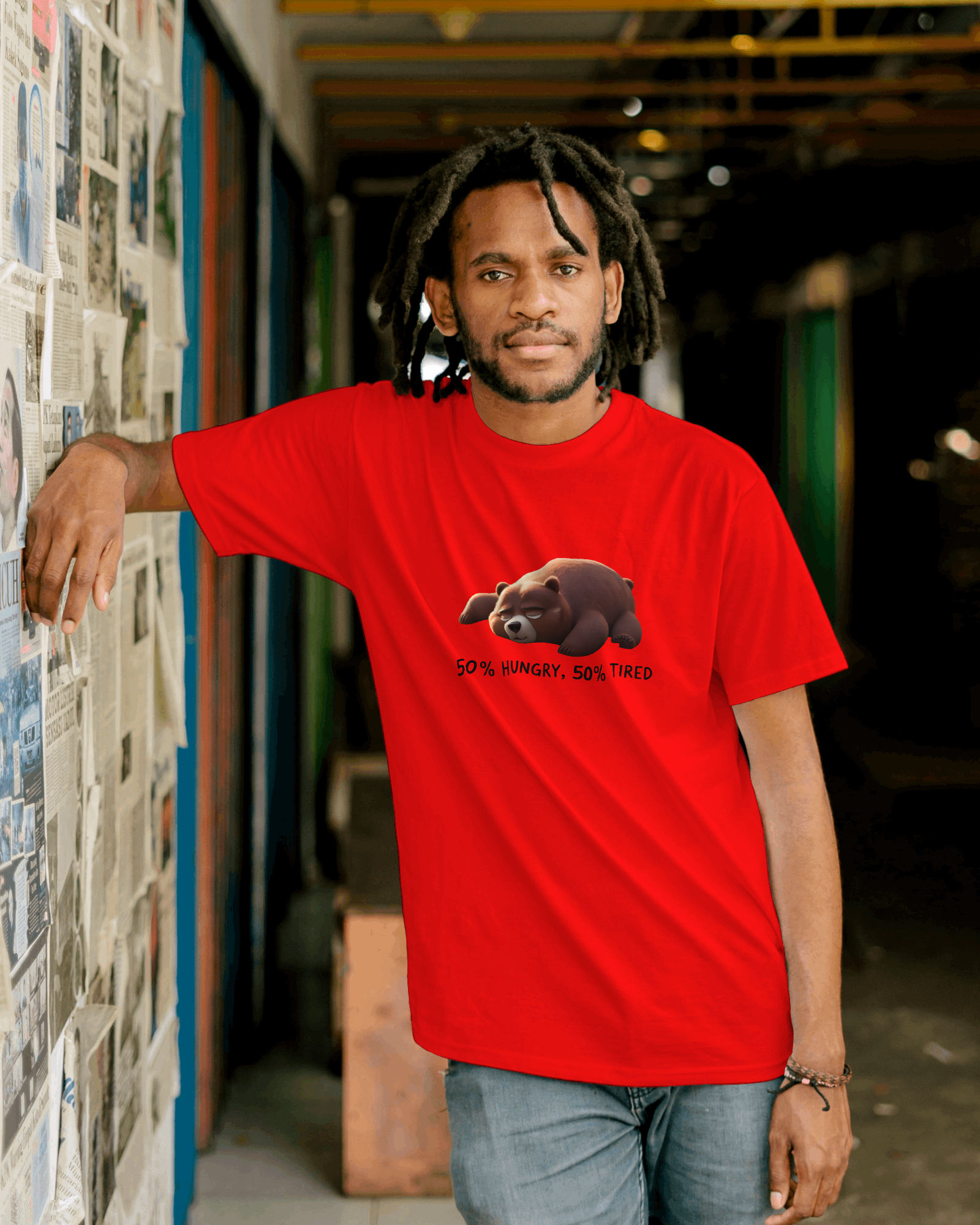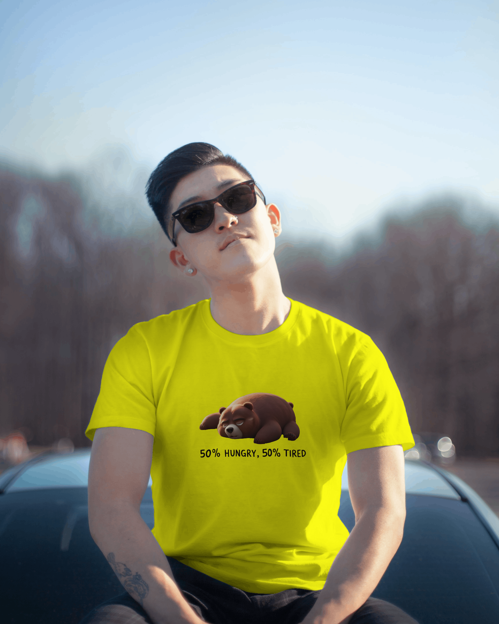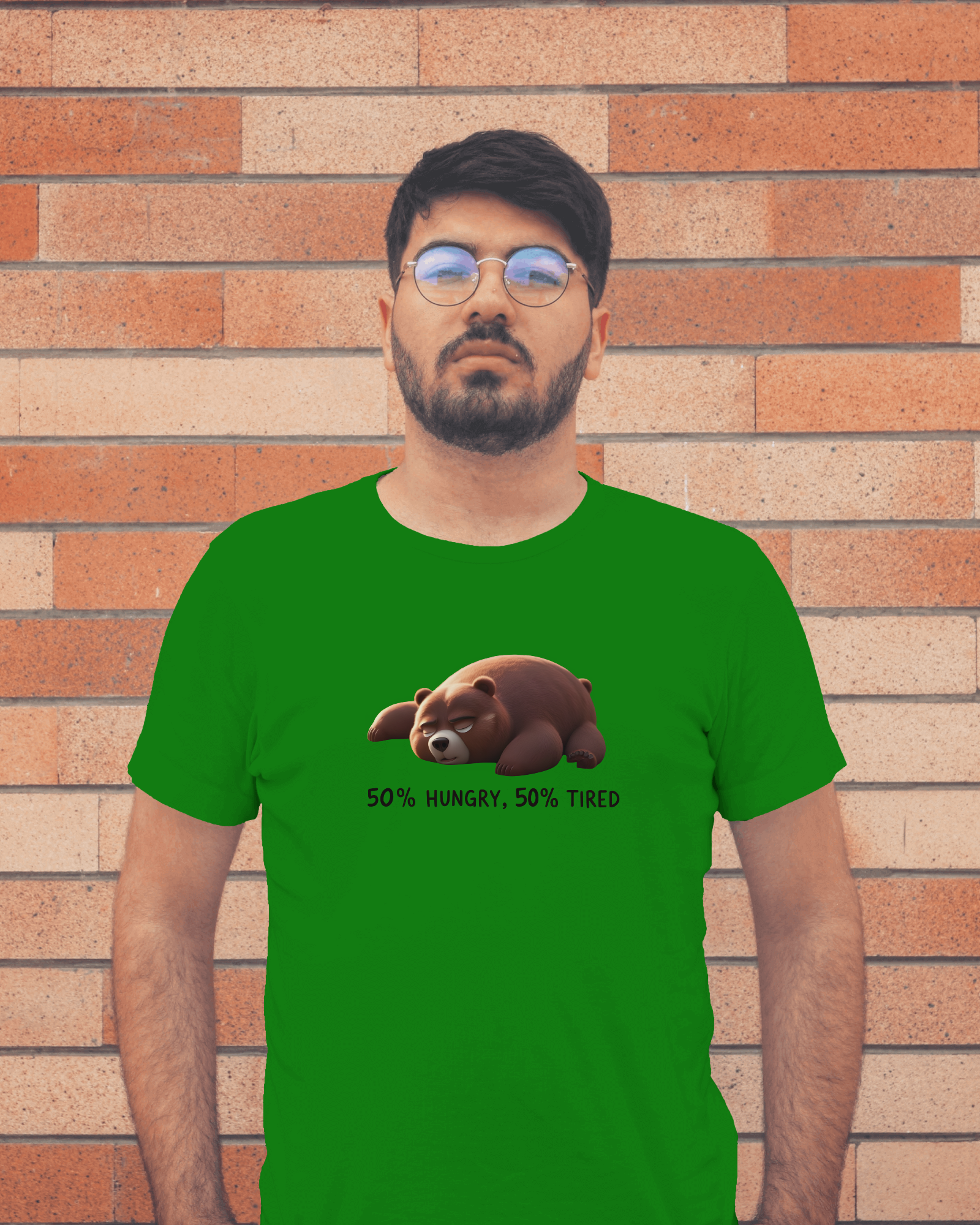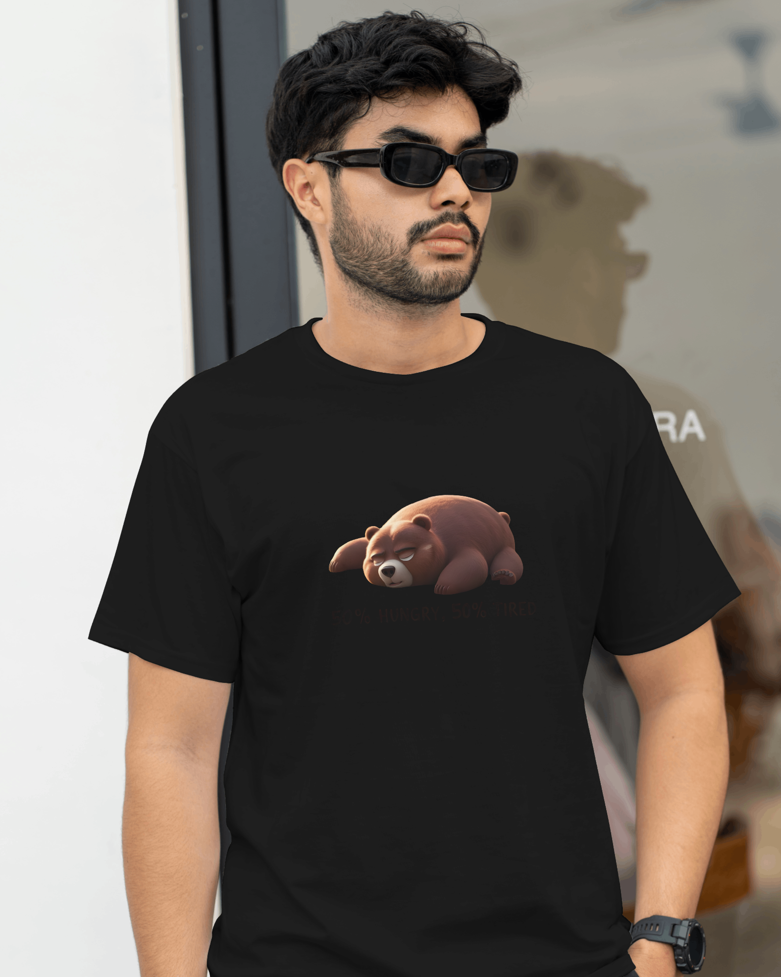 Earth & Thread | 50% Hungry 50% Tired Bear 100% Cotton Regular Fit T-Shirt - Premium 180 GSM Humorous Graphic