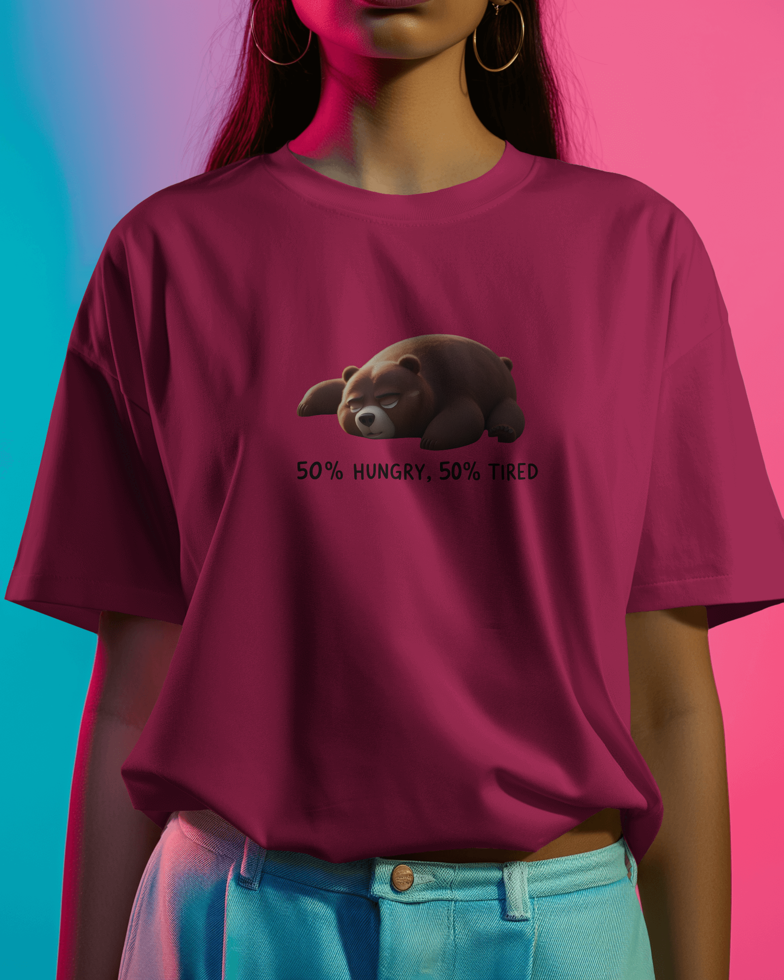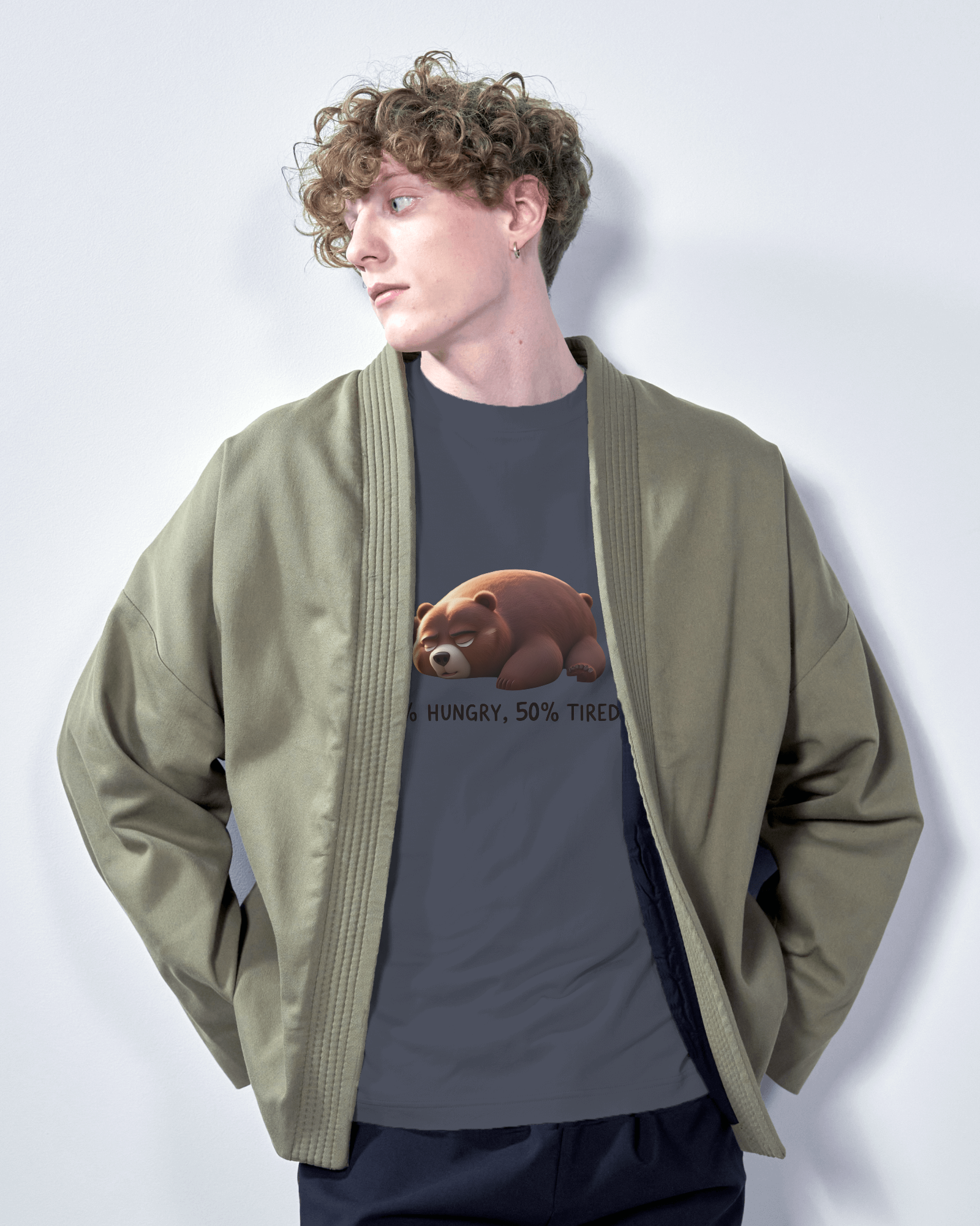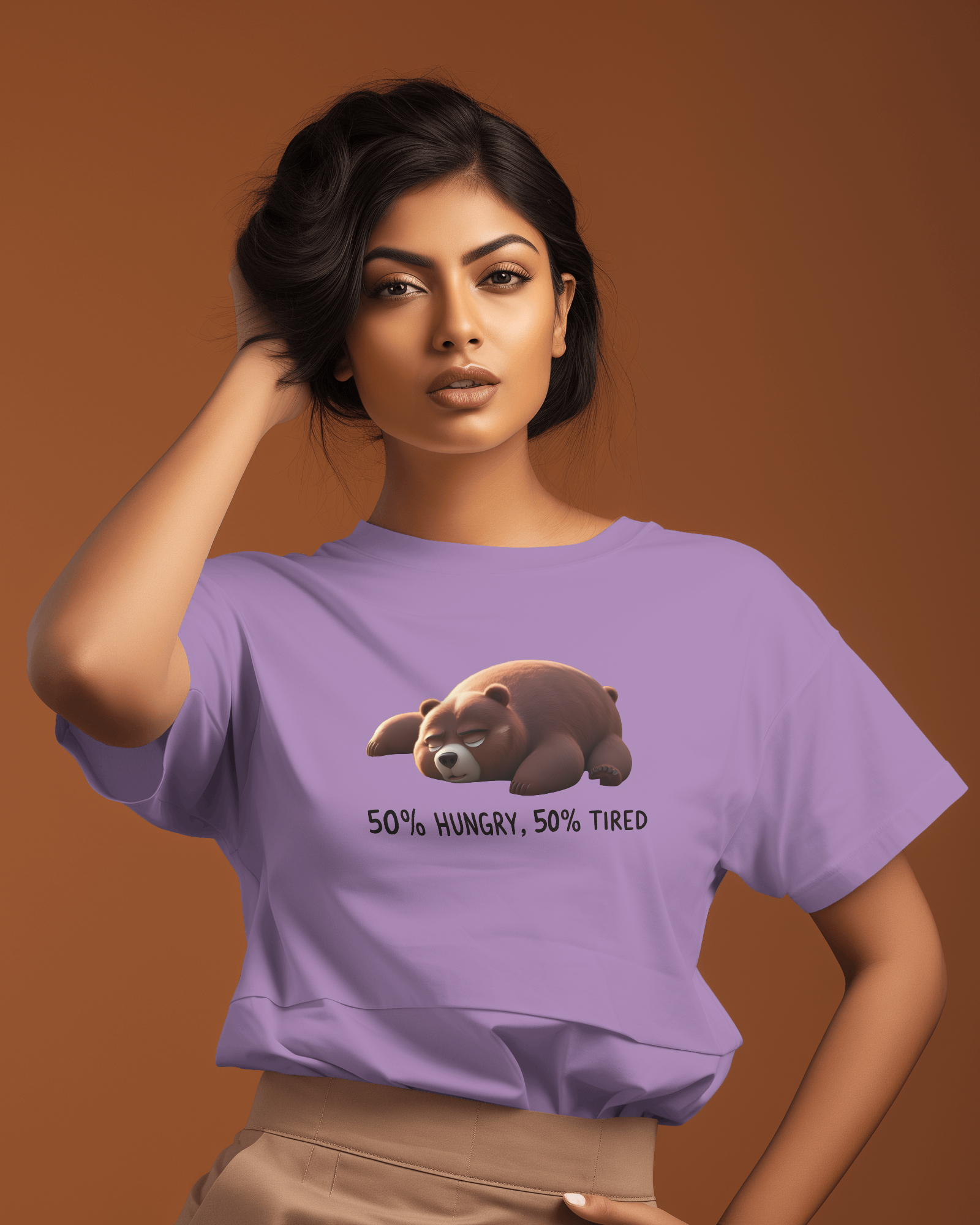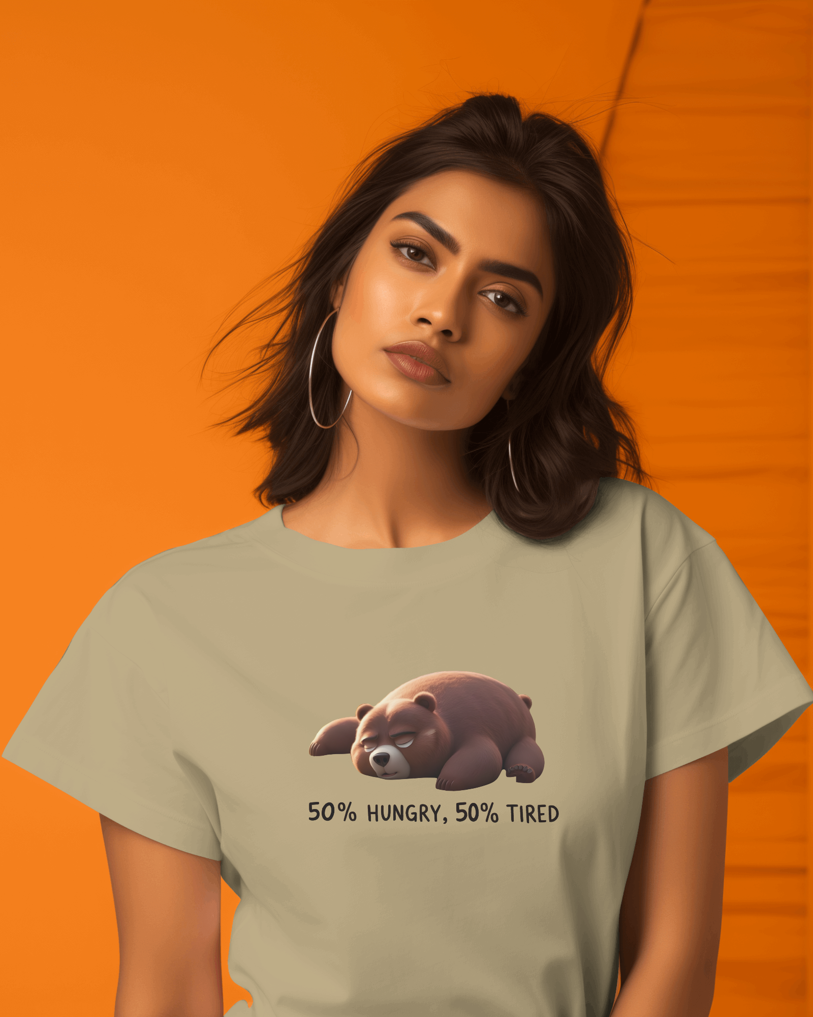 Embrace your mood with absolute comfort. The Earth & Thread '50% Hungry, 50% Tired Bear' 100% Cotton T-Shirt is for anyone who understands the daily grind – and isn't afraid to show it with a touch of charming humor. This isn't just a tee; it's a premium 180 GSM essential, designed for ultimate comfort while perfectly capturing a universal feeling.